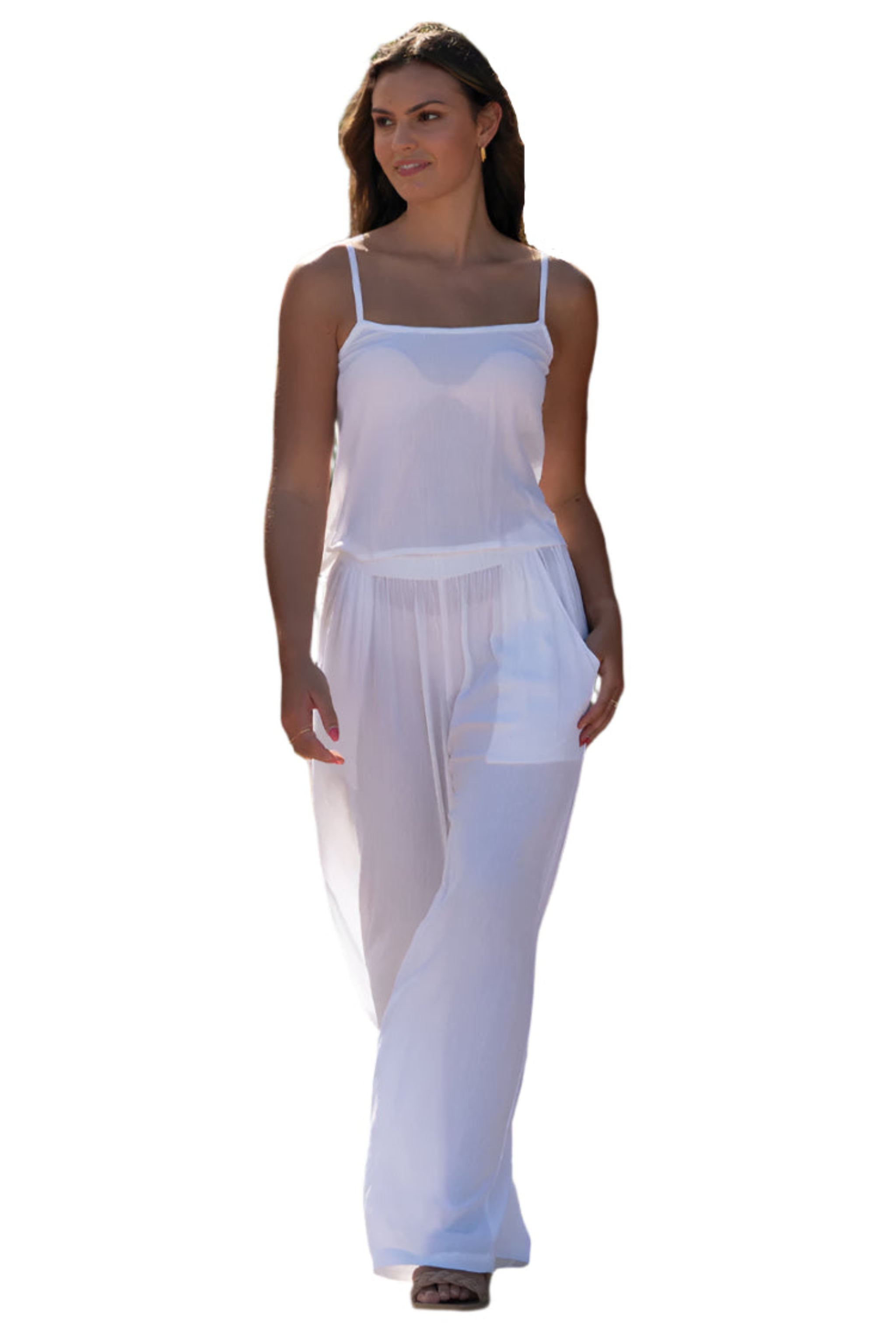 PS701 - Top corto sin mangas con cintura elástica y pantalones palazzo con bolsillos