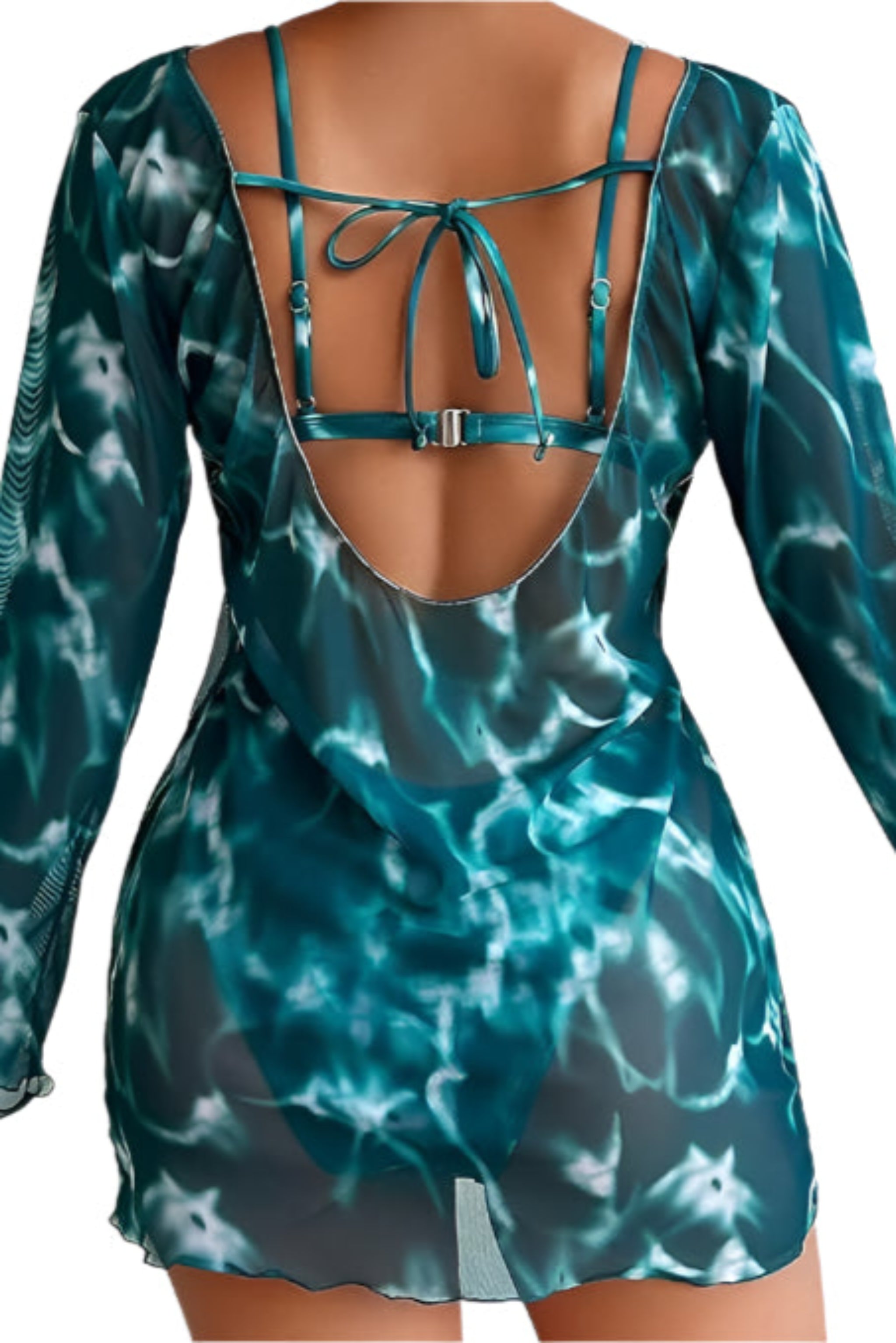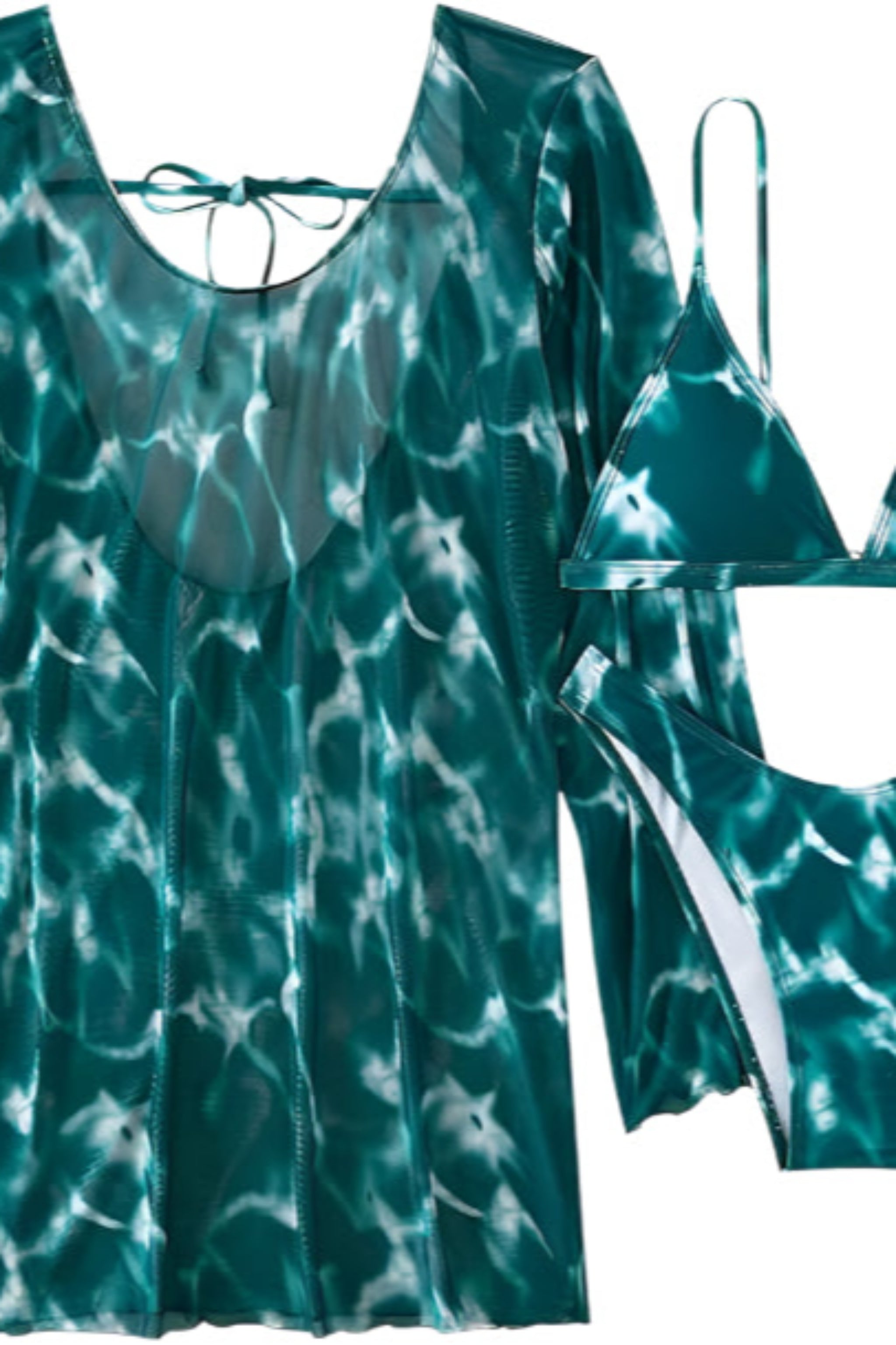 Traje de baño bikini de dos piezas con acuarela y cubierta