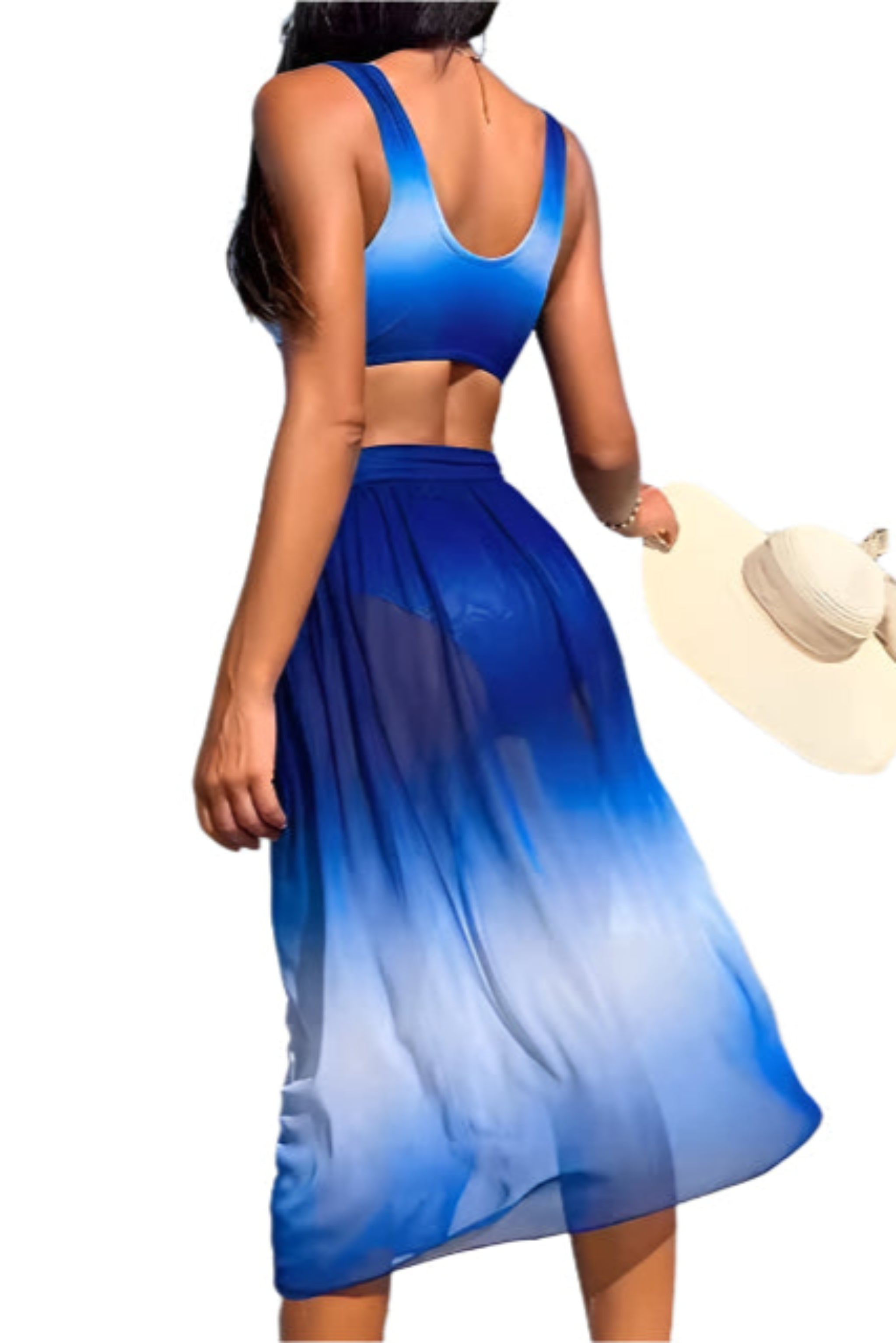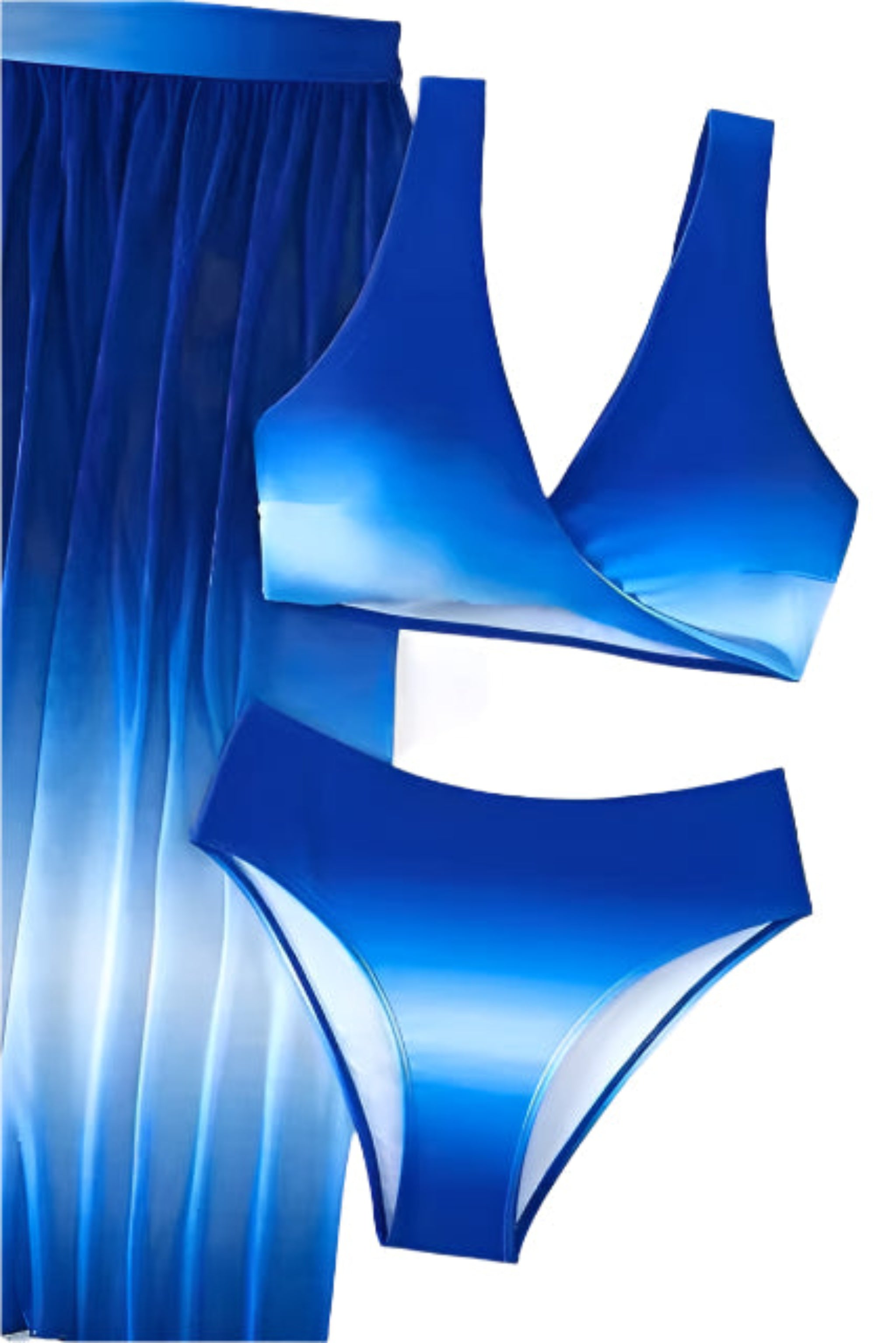 Traje de baño de dos piezas con parte superior retorcida ombré y pareo
