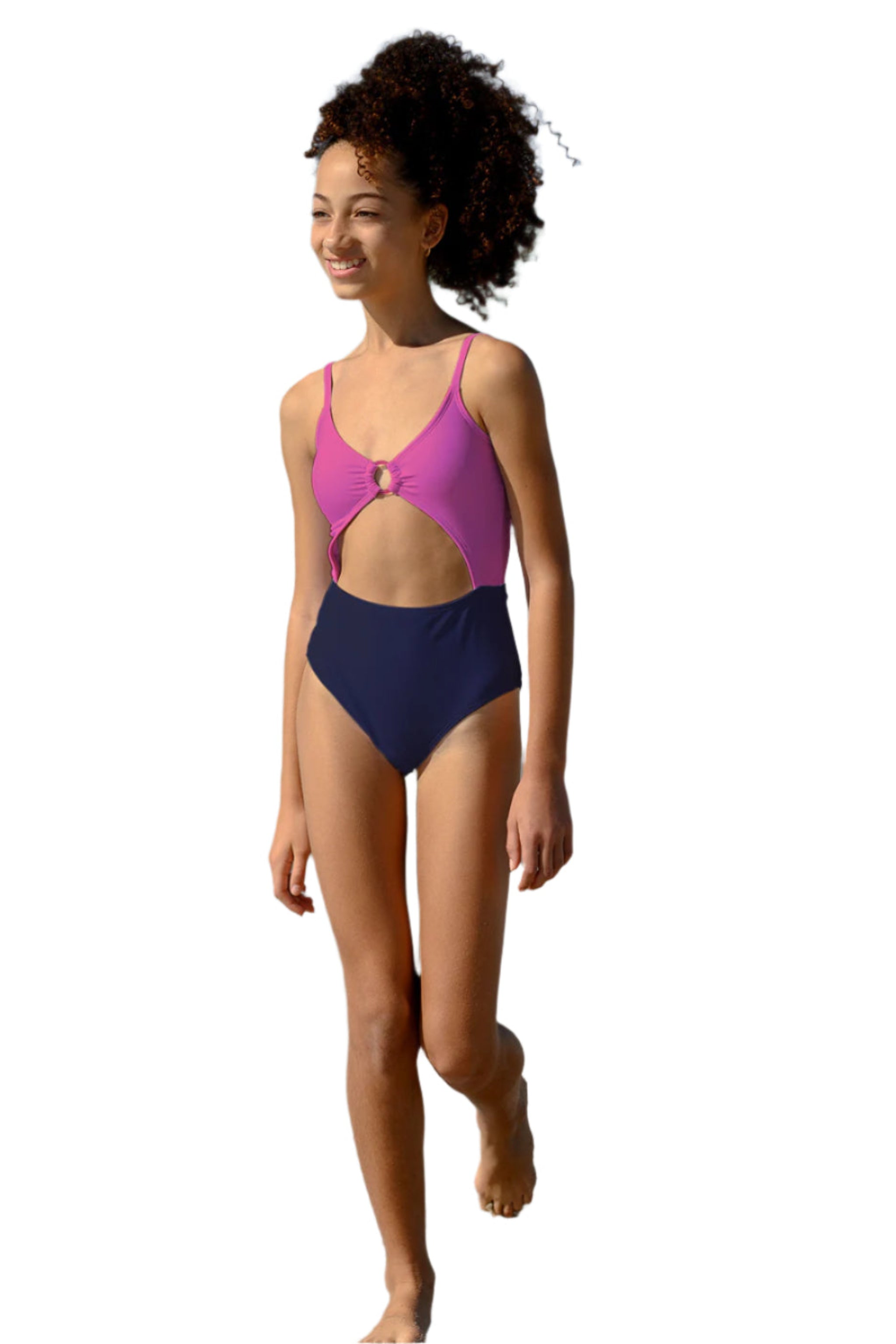 Traje de baño de una pieza con recortes para niñas jóvenes