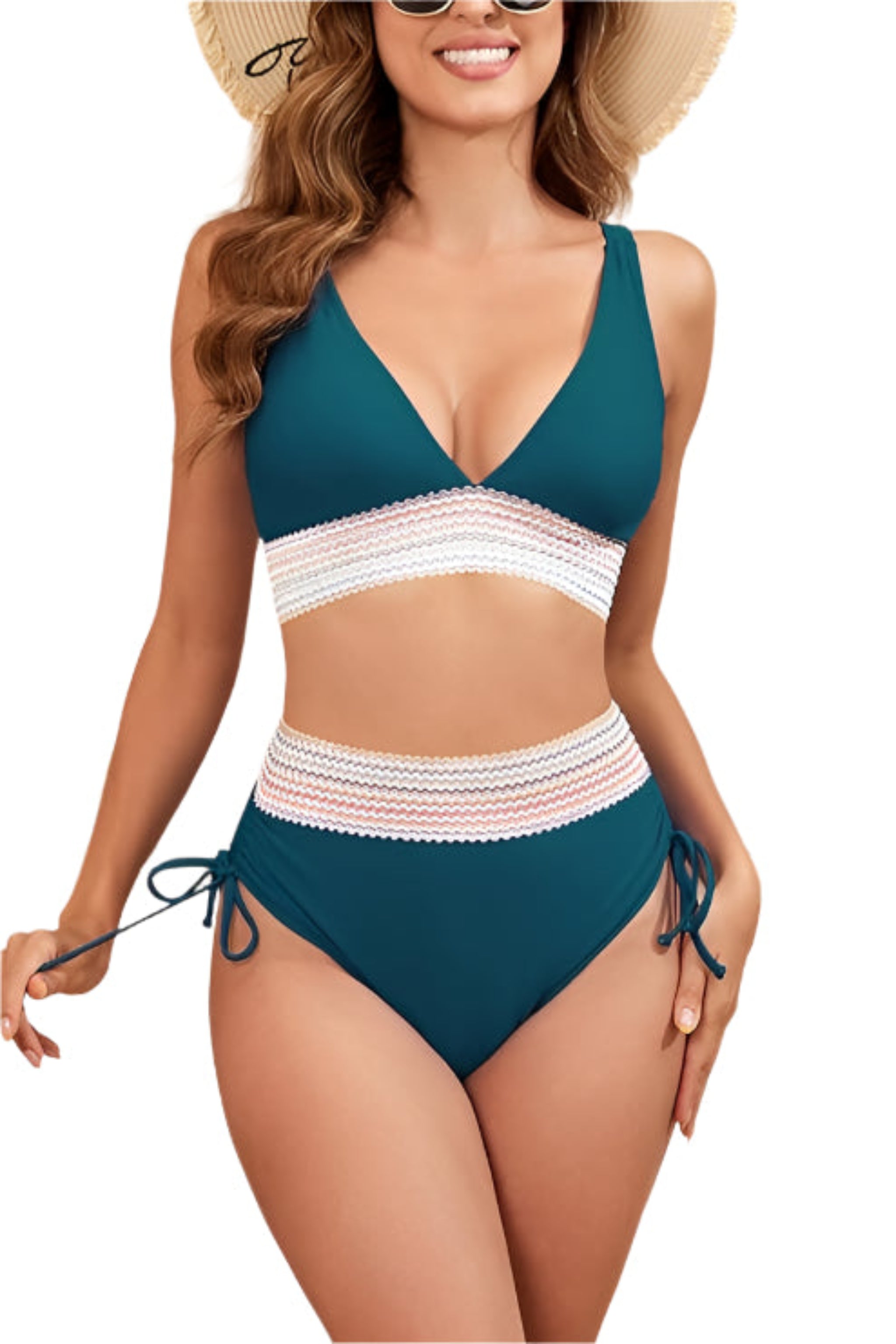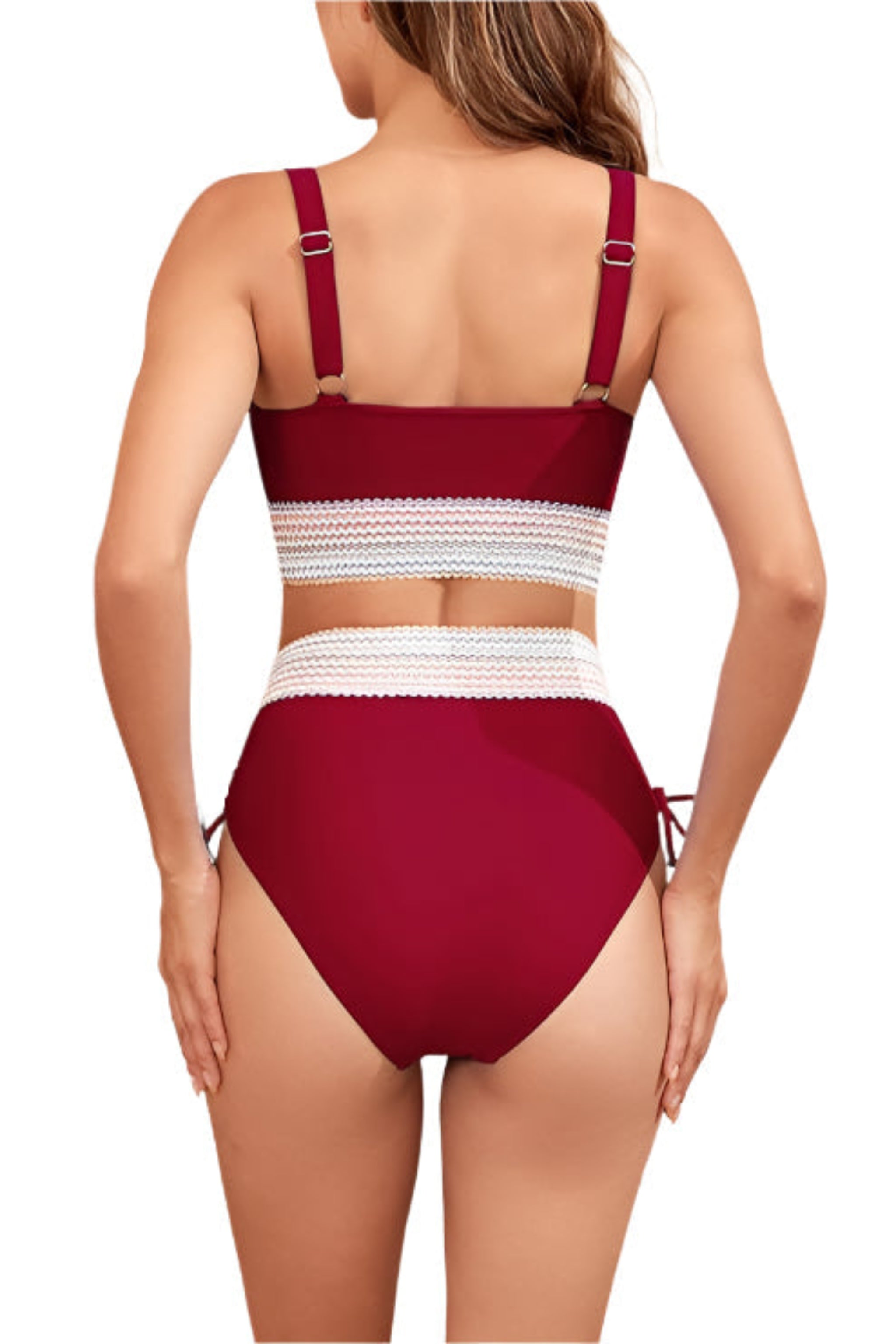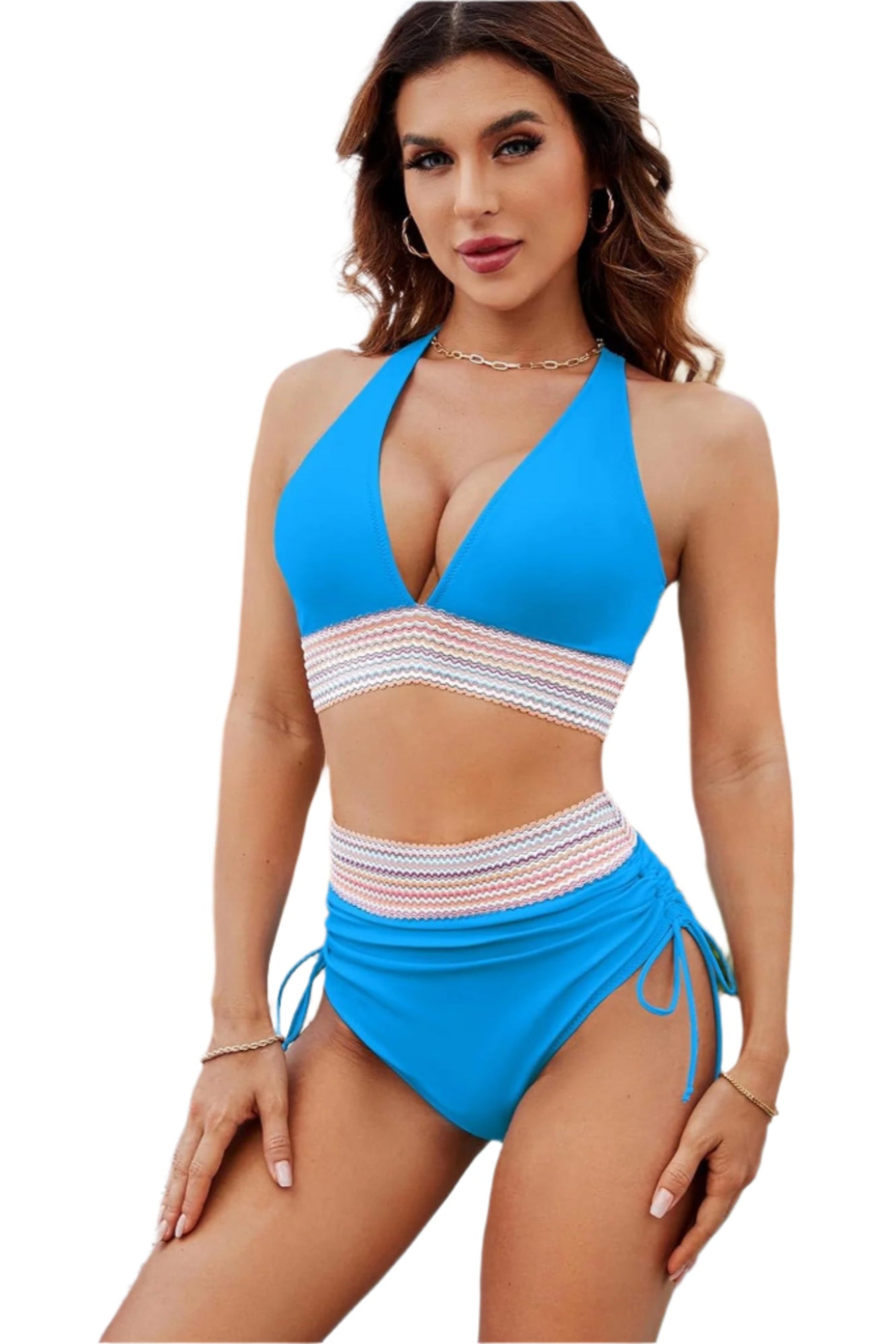 Traje de baño de bikini de dos piezas con cuello halter y ribete de banda