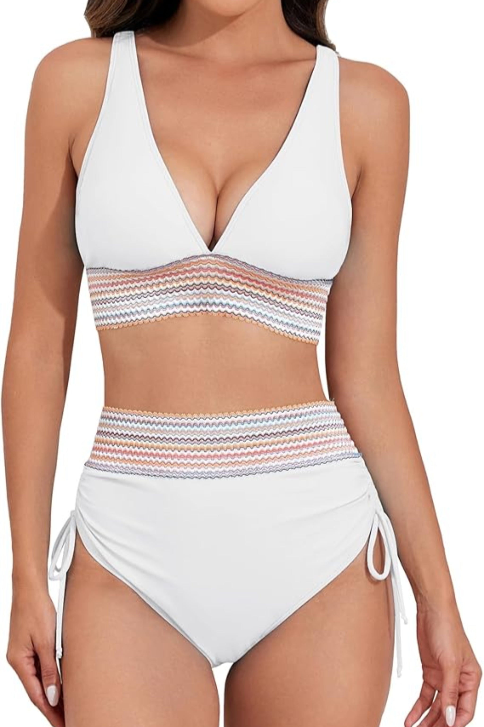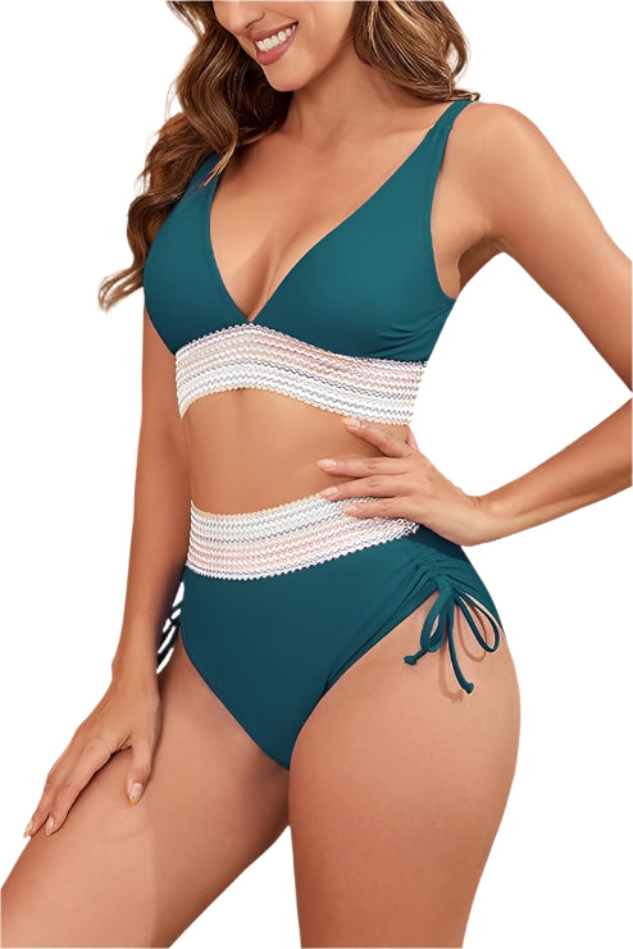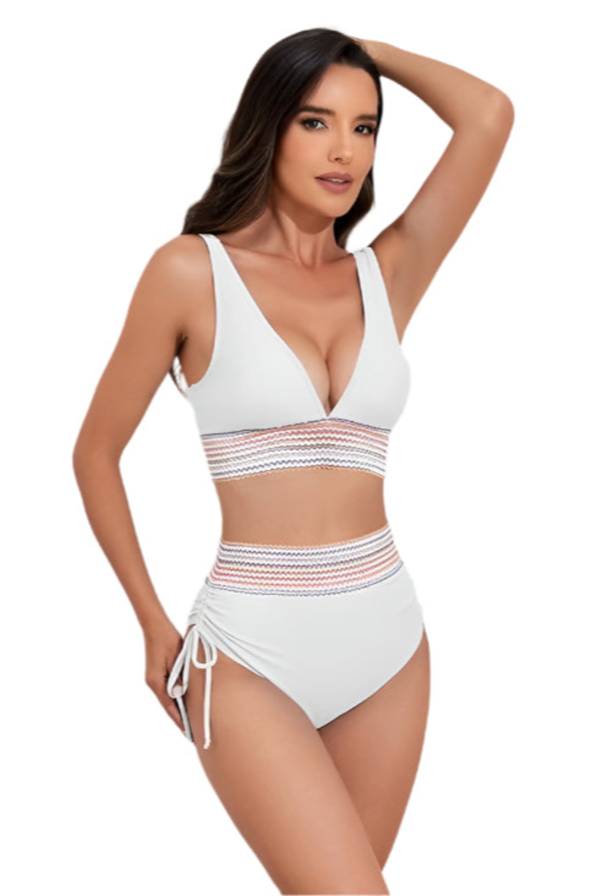 Traje de baño de bikini de dos piezas con cuello halter y ribete de banda
