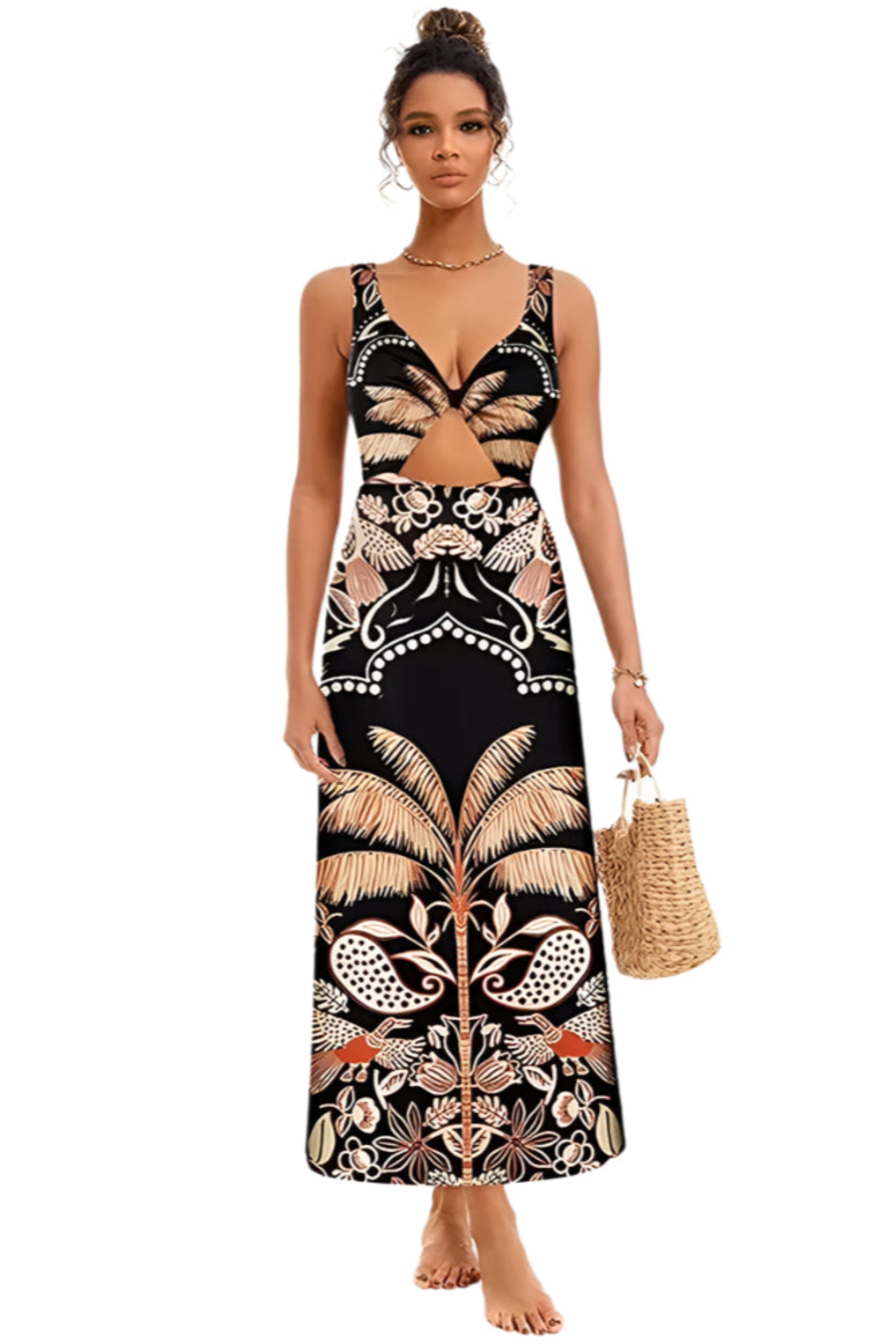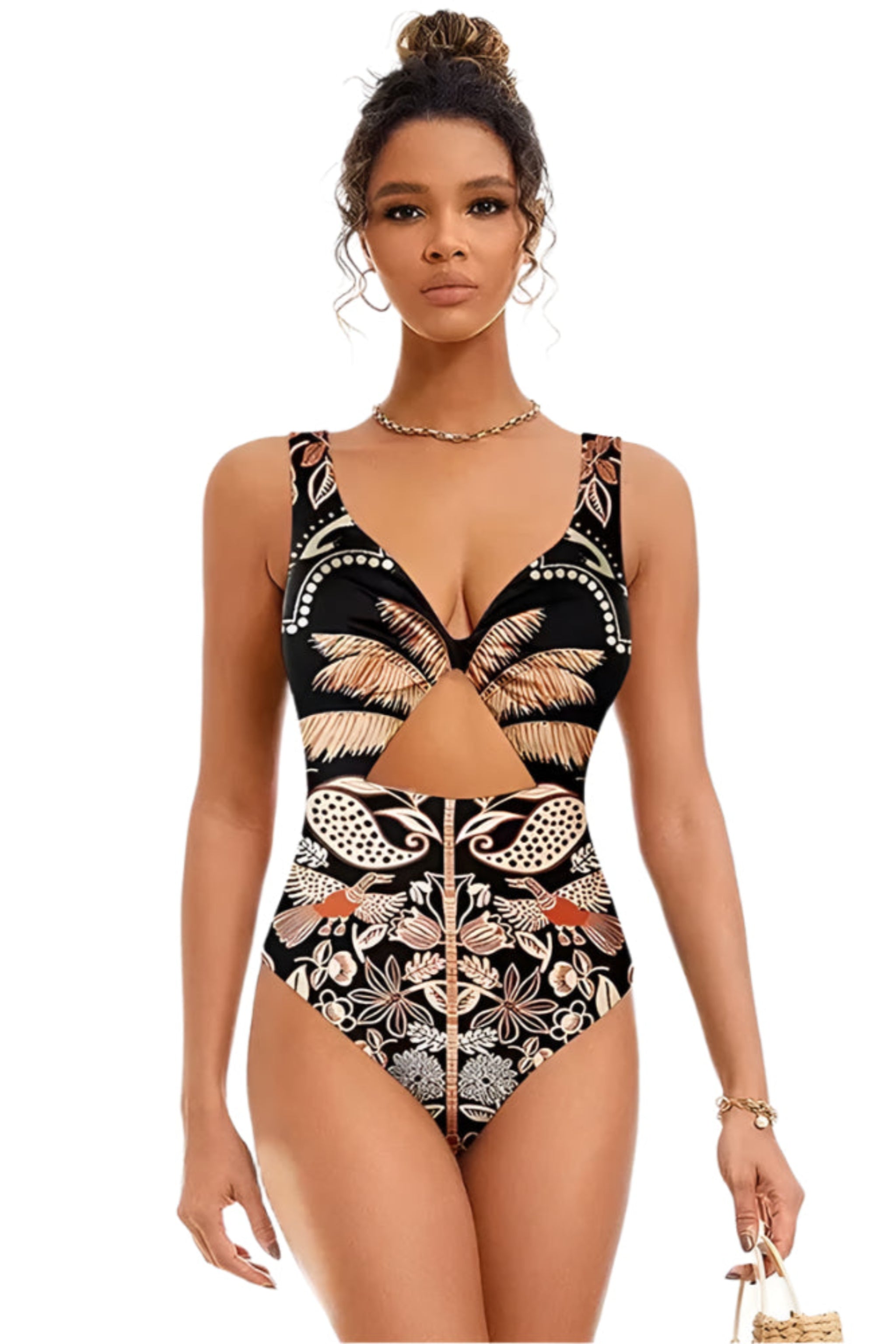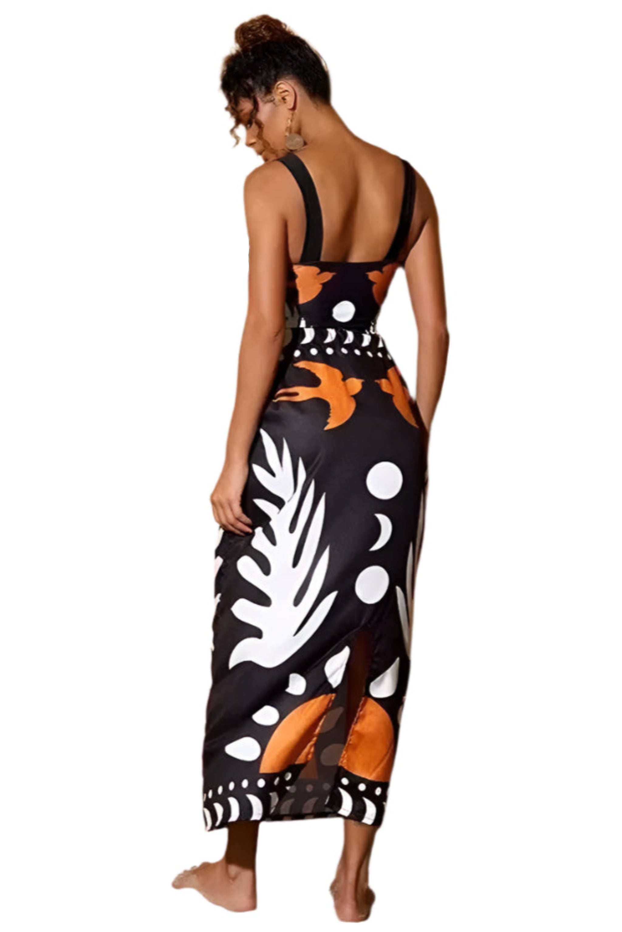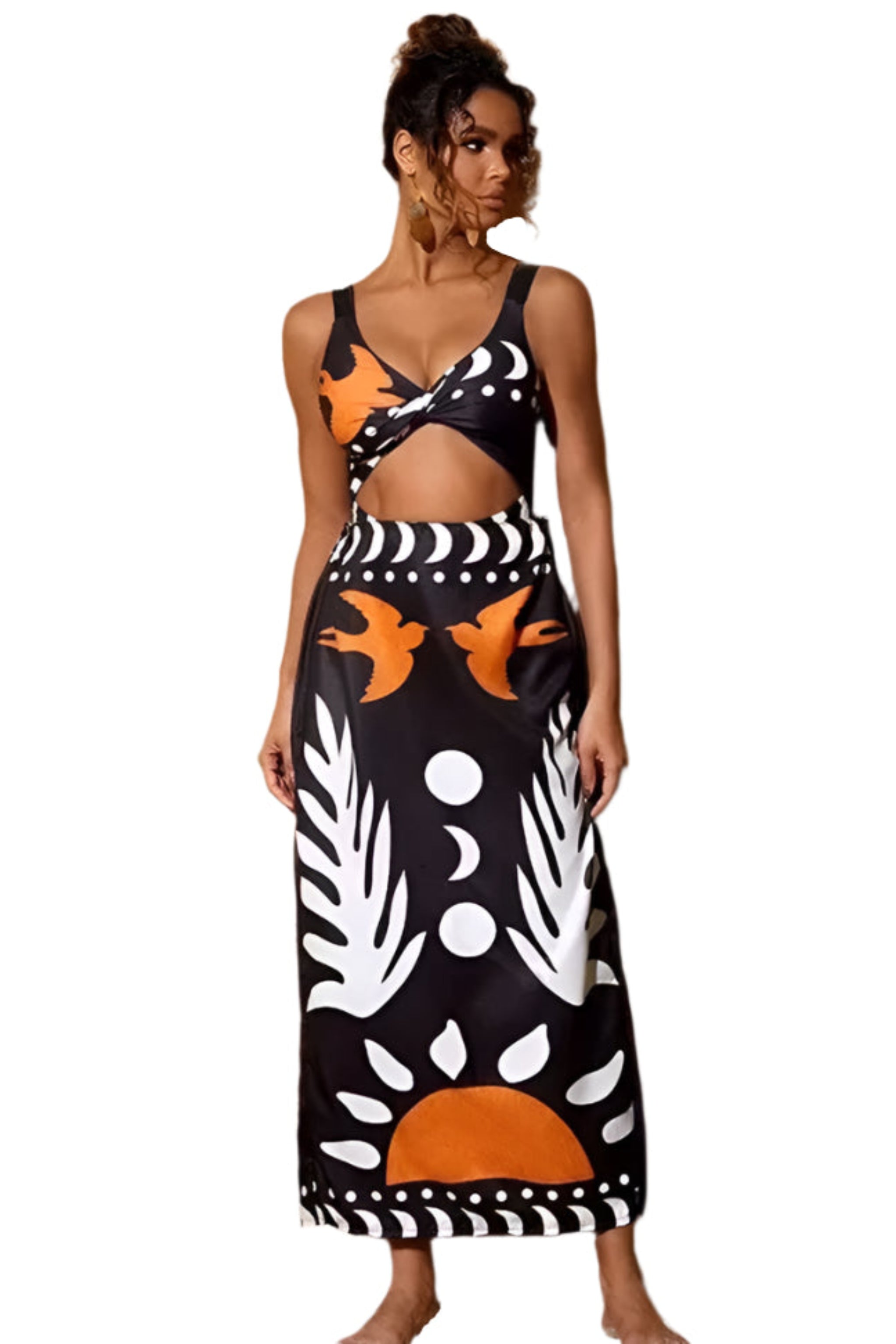 Traje de baño de una pieza con estampado tribal con falda y pantalón