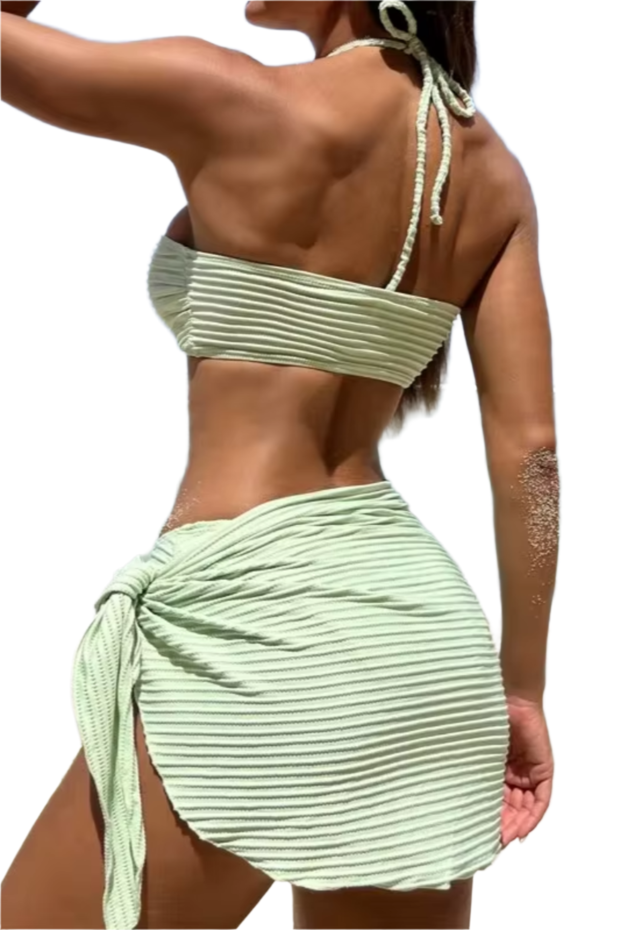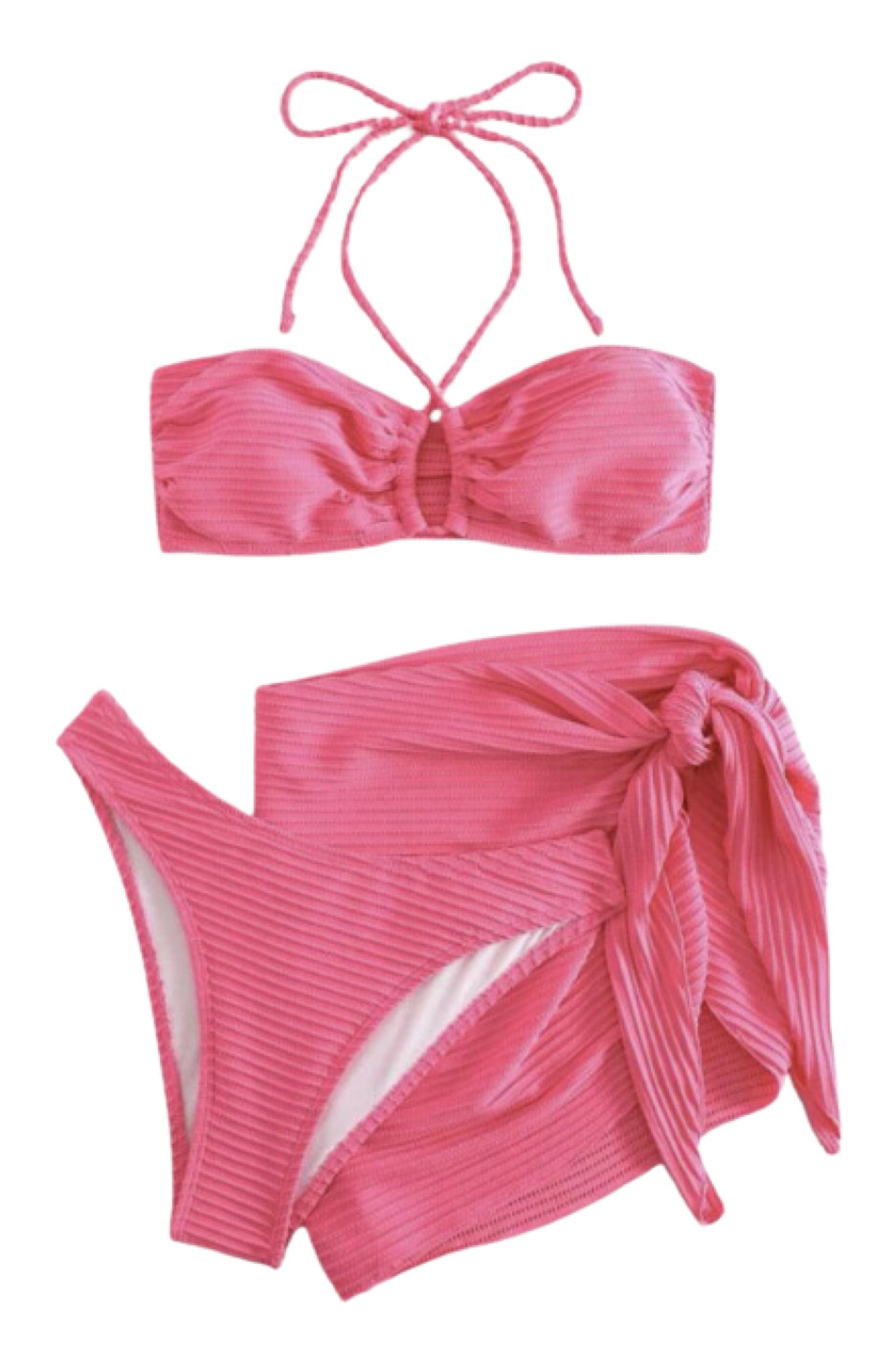 Traje de baño de bikini de dos piezas con top halter y aro con pareo
