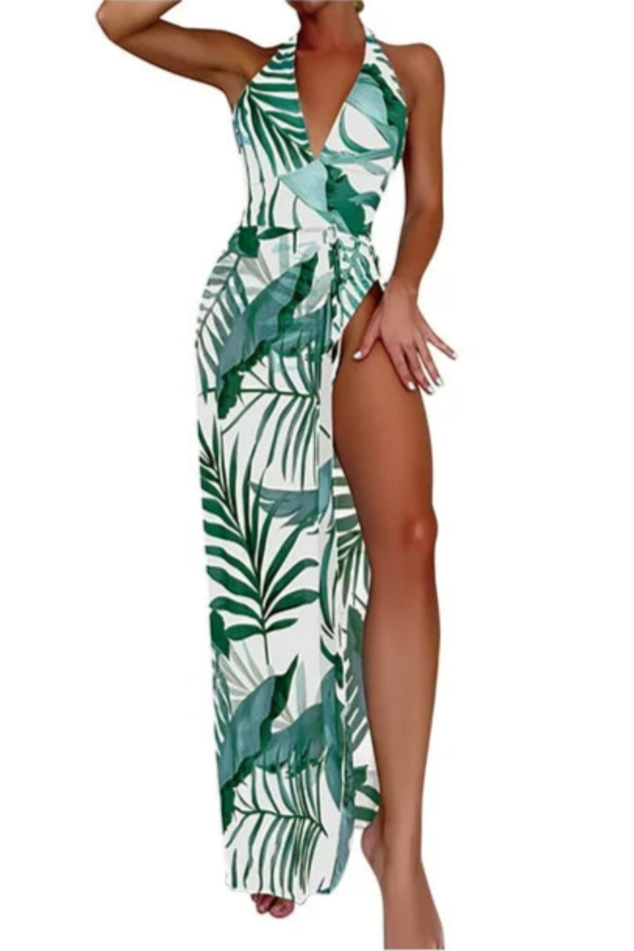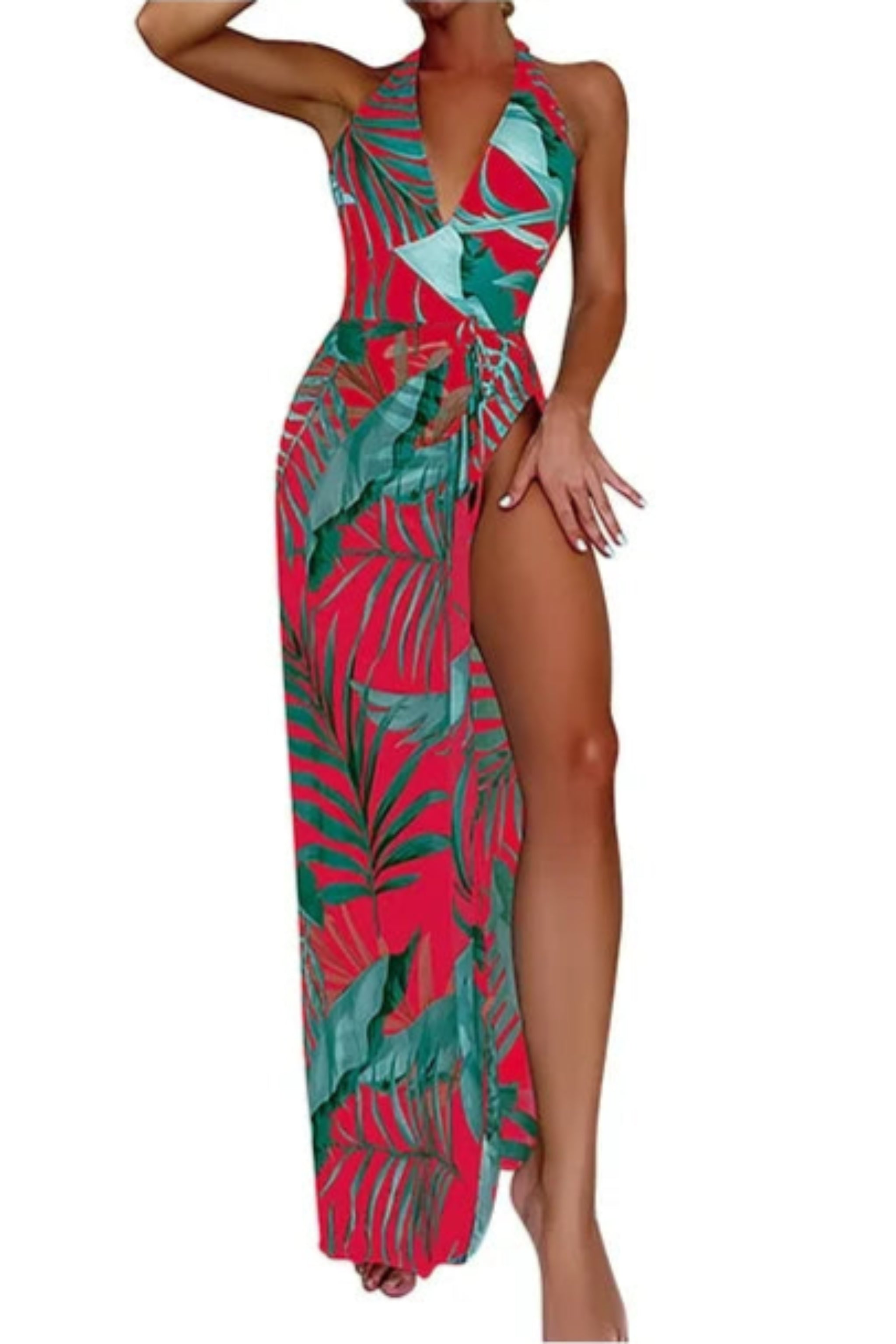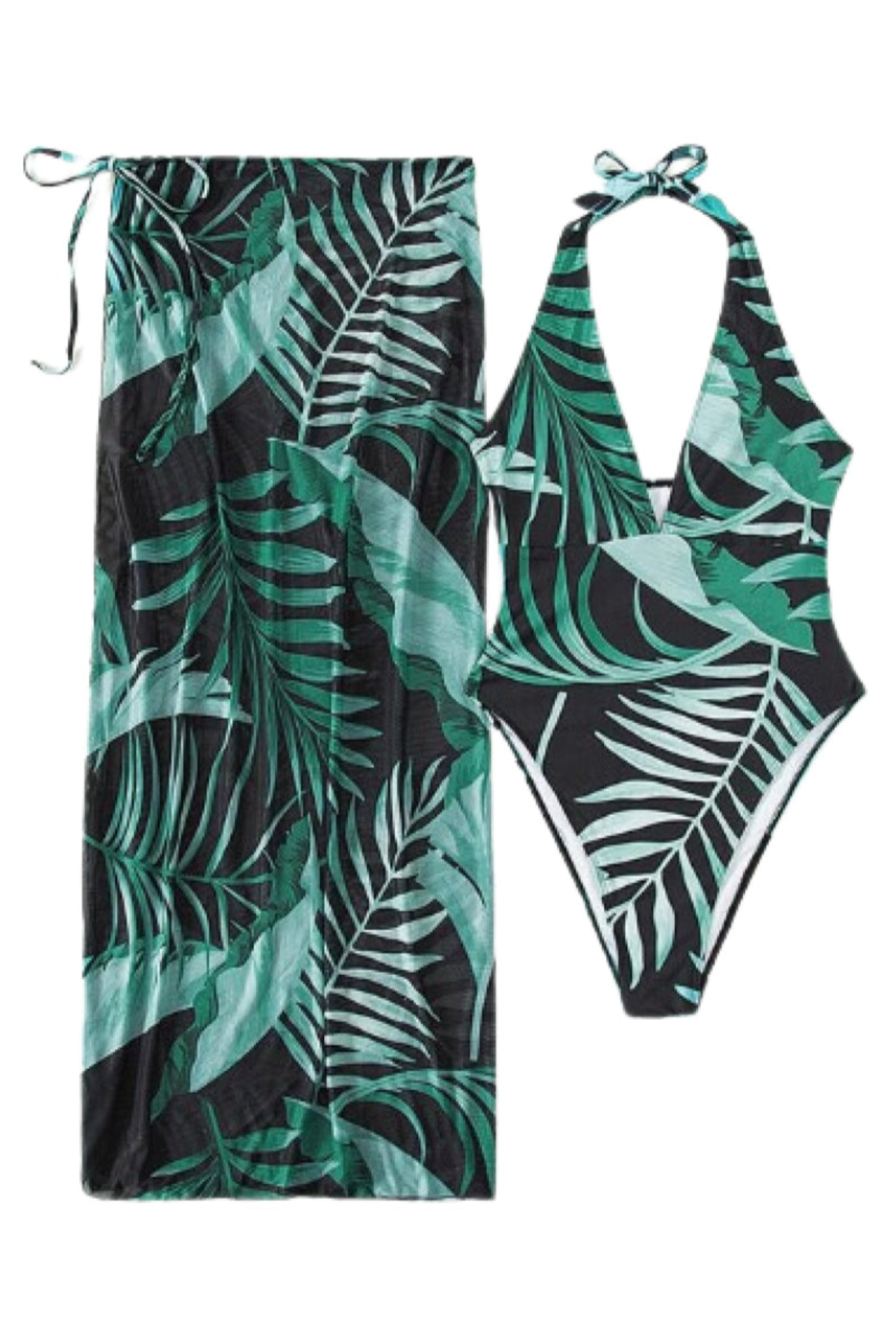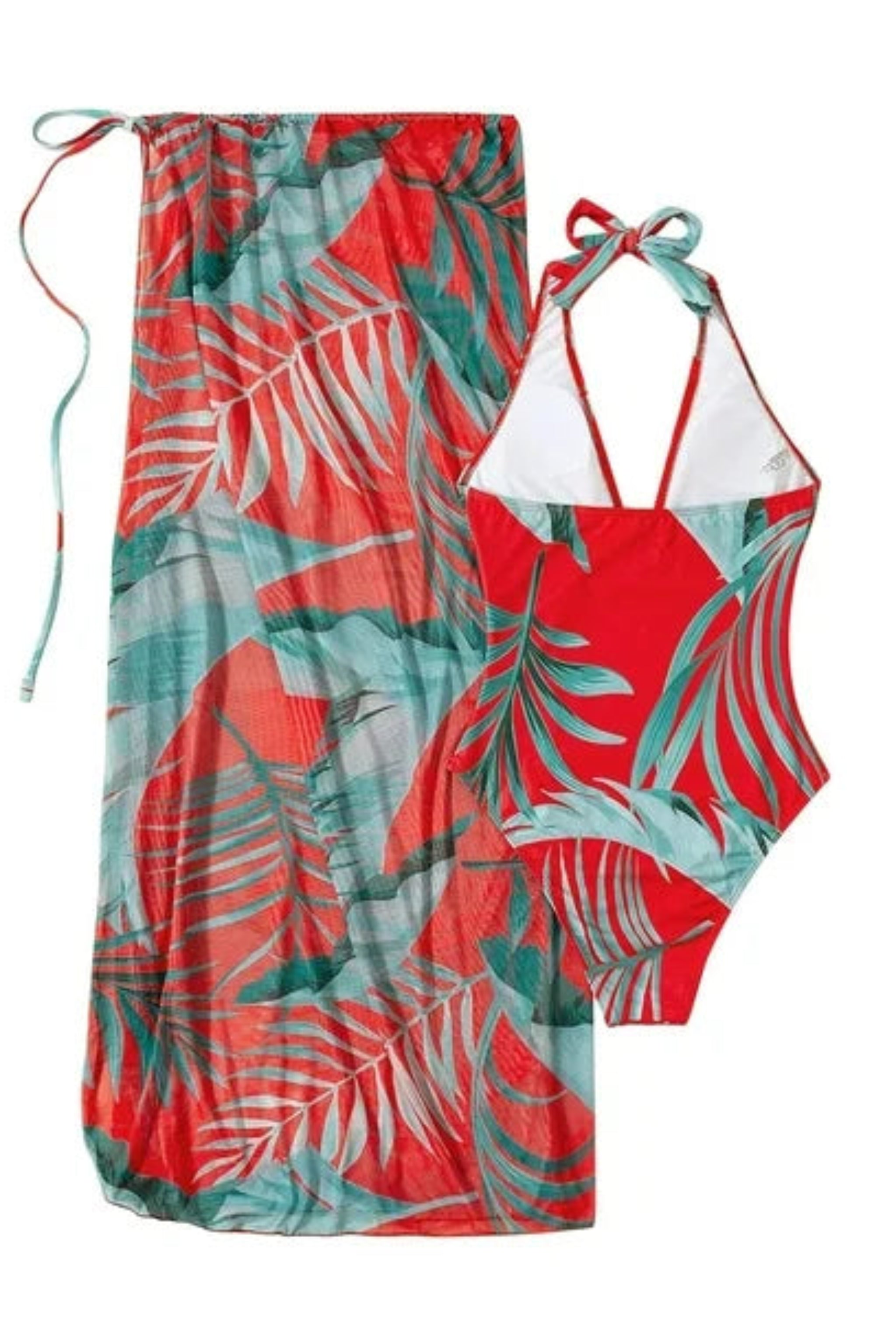 Traje de baño de una pieza con cuello halter y pareo