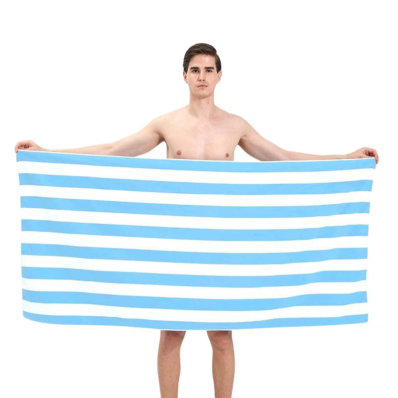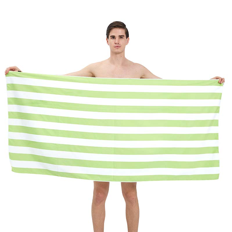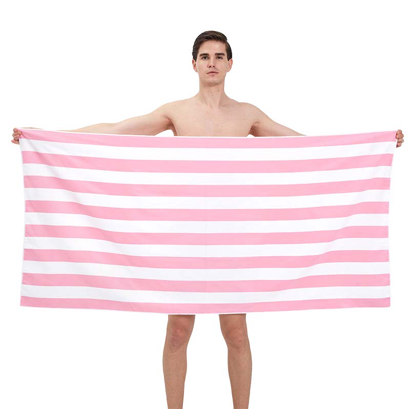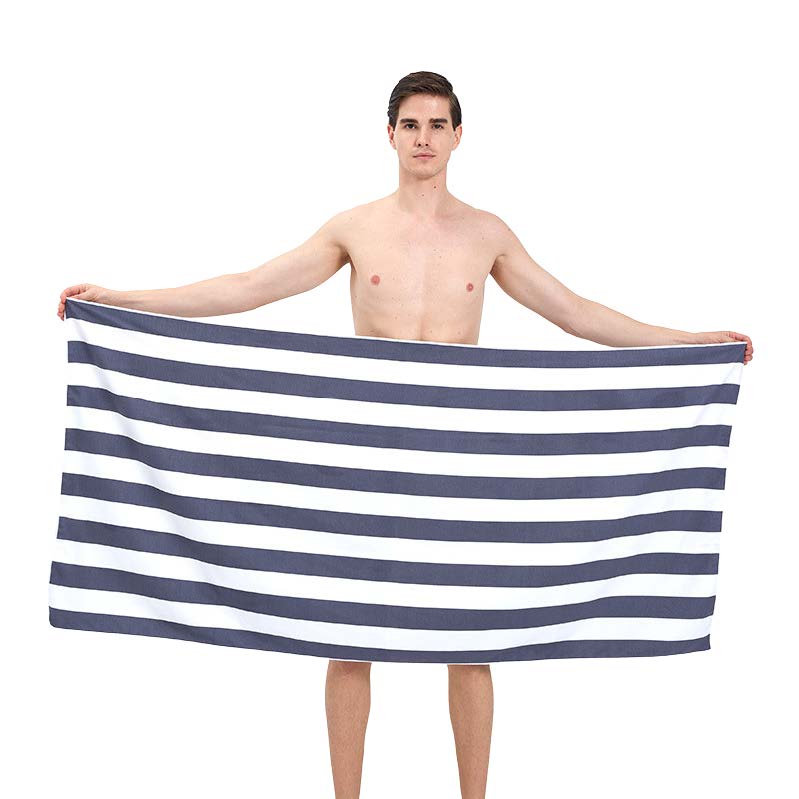 Grande serviette rayée en microfibre brossée et daim avec pochette de transport