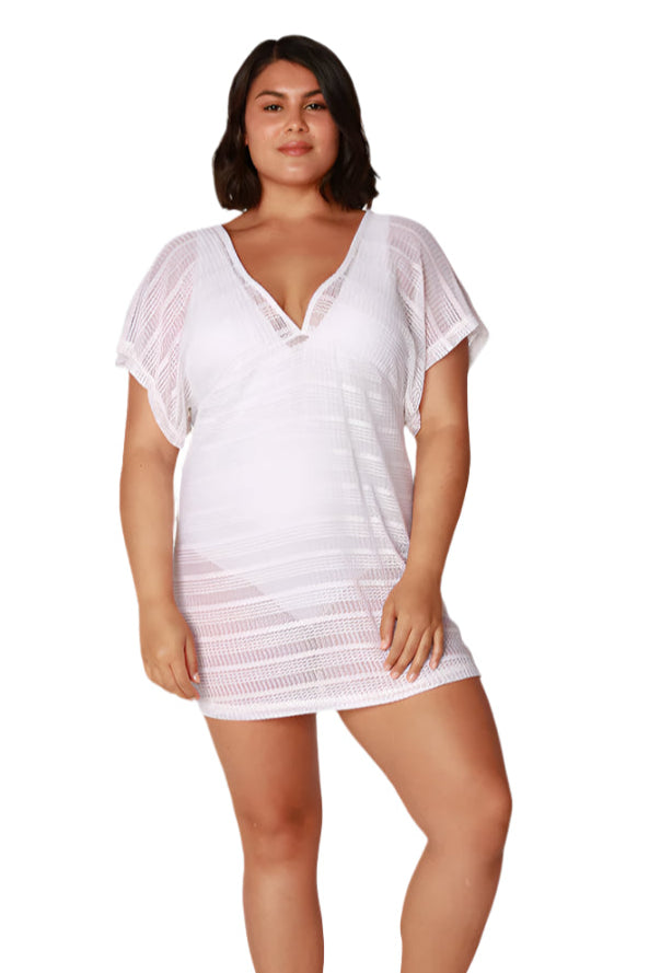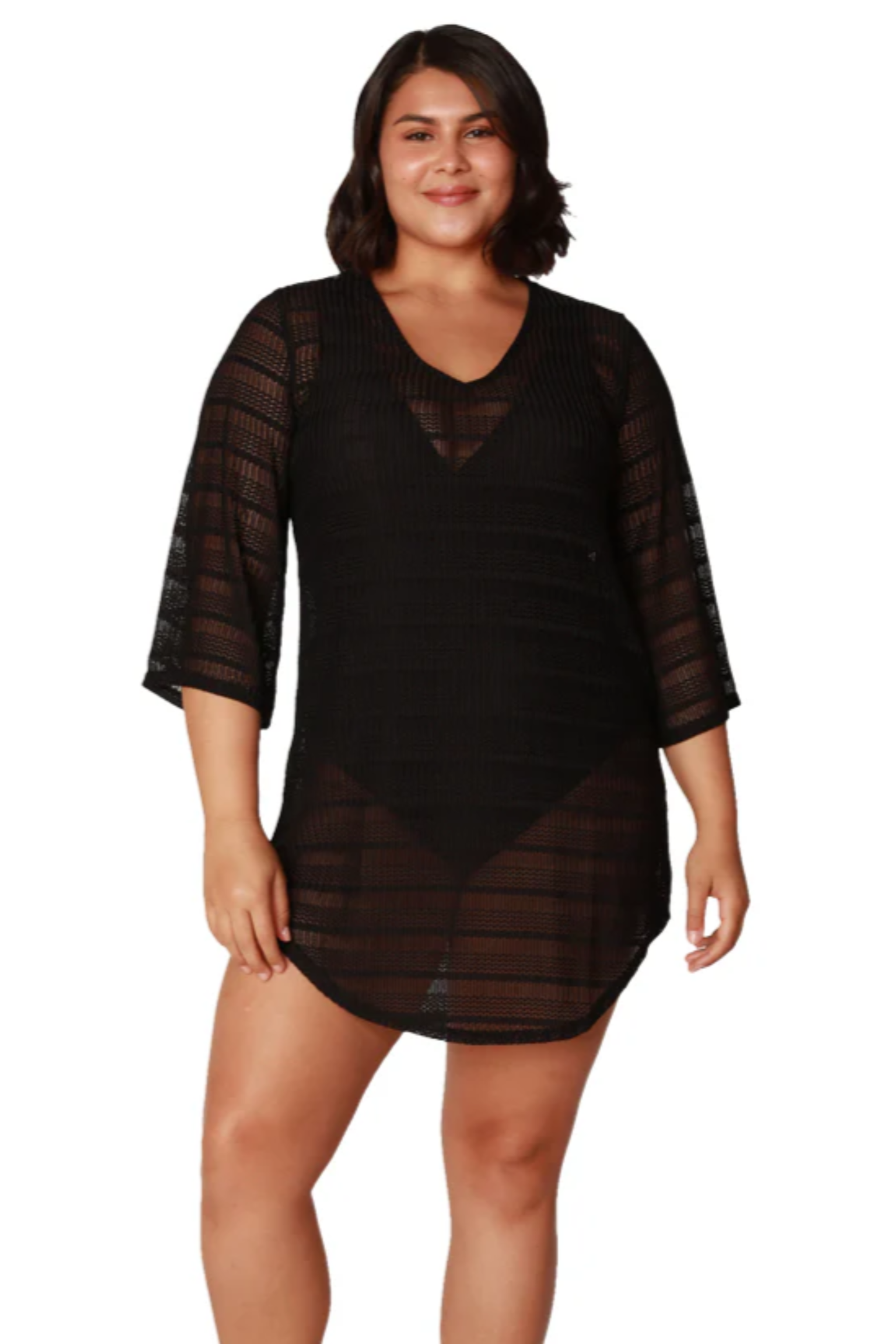 Robe kimono cache-cœur grande taille à col en V et manches 3/4