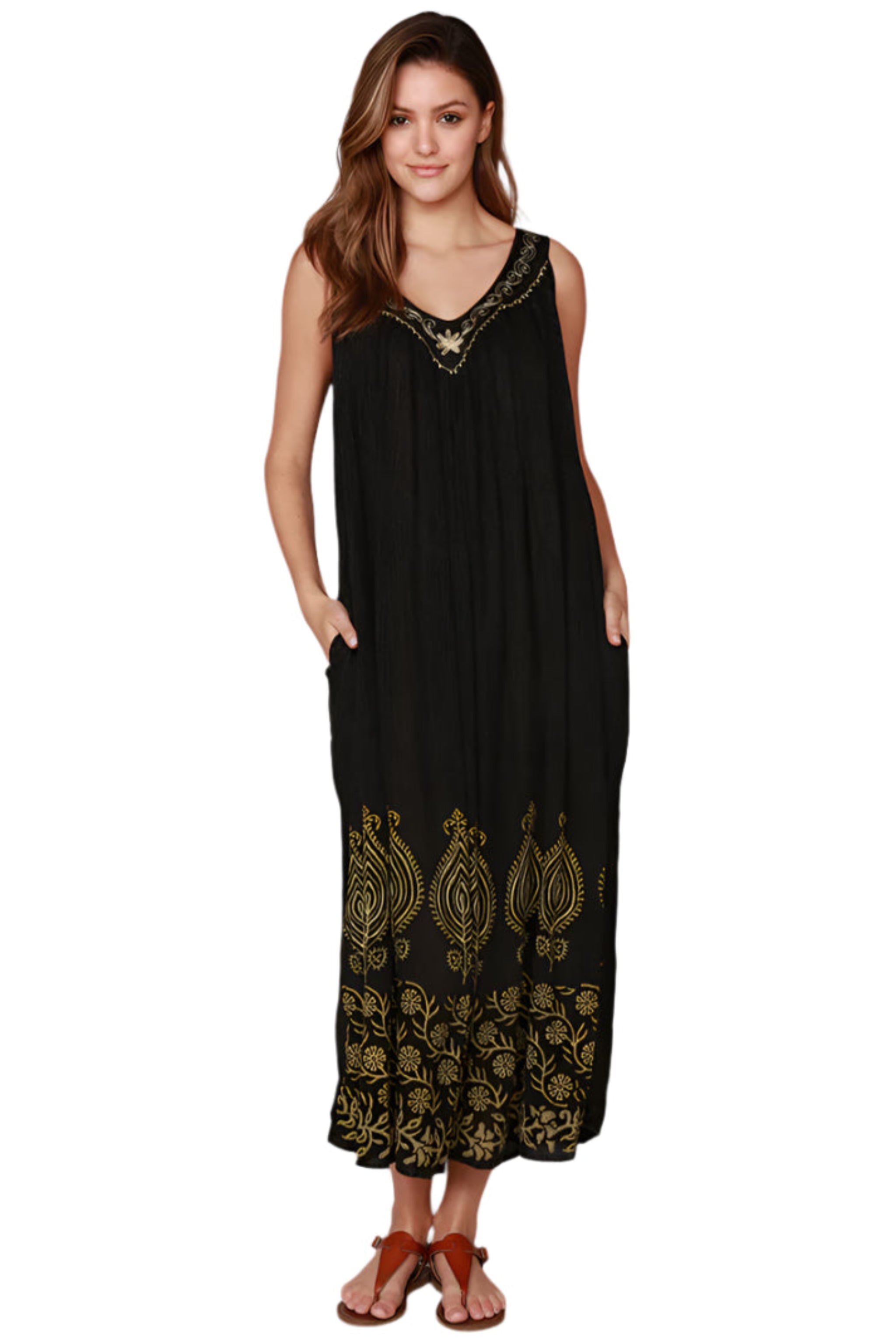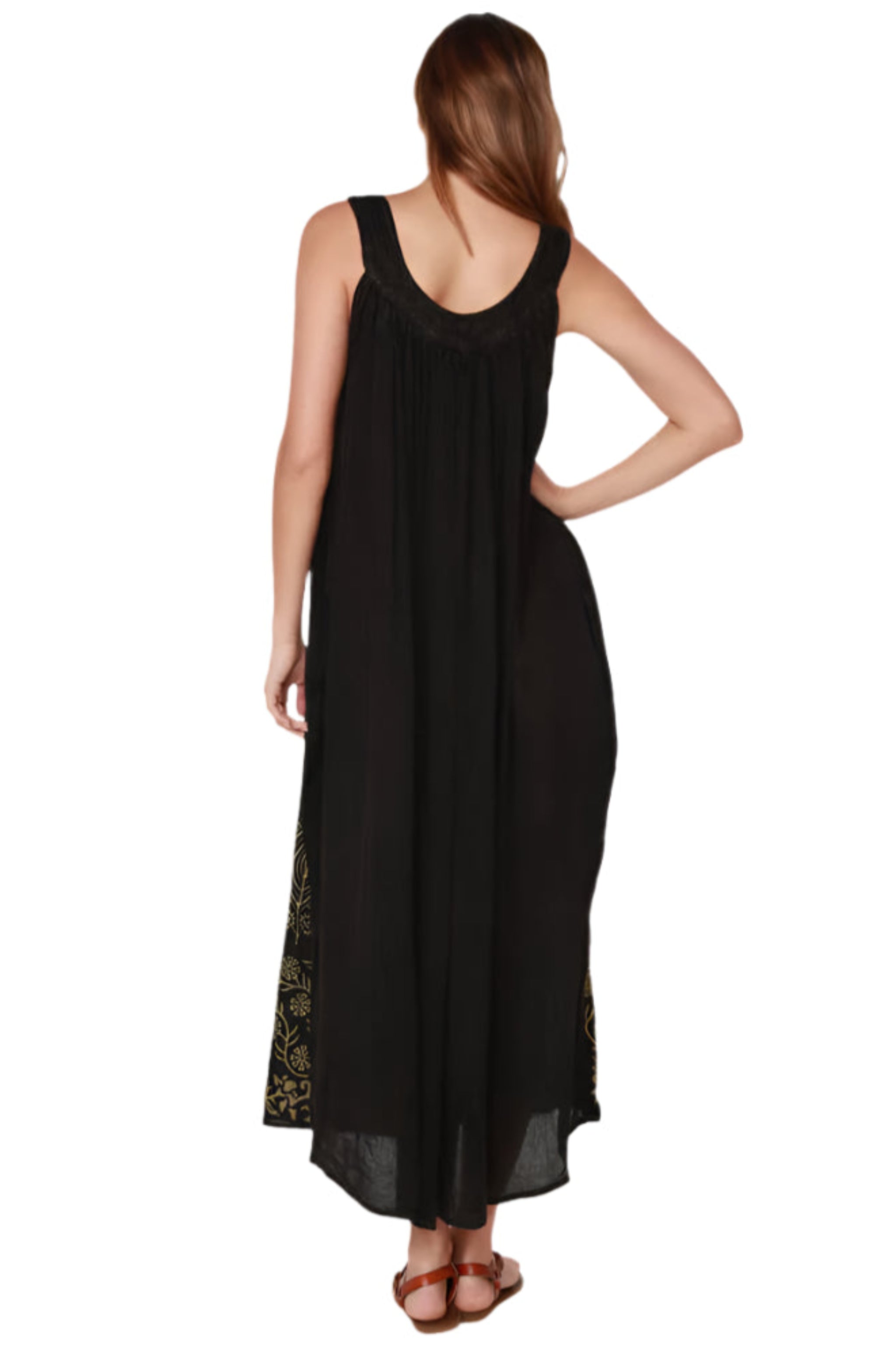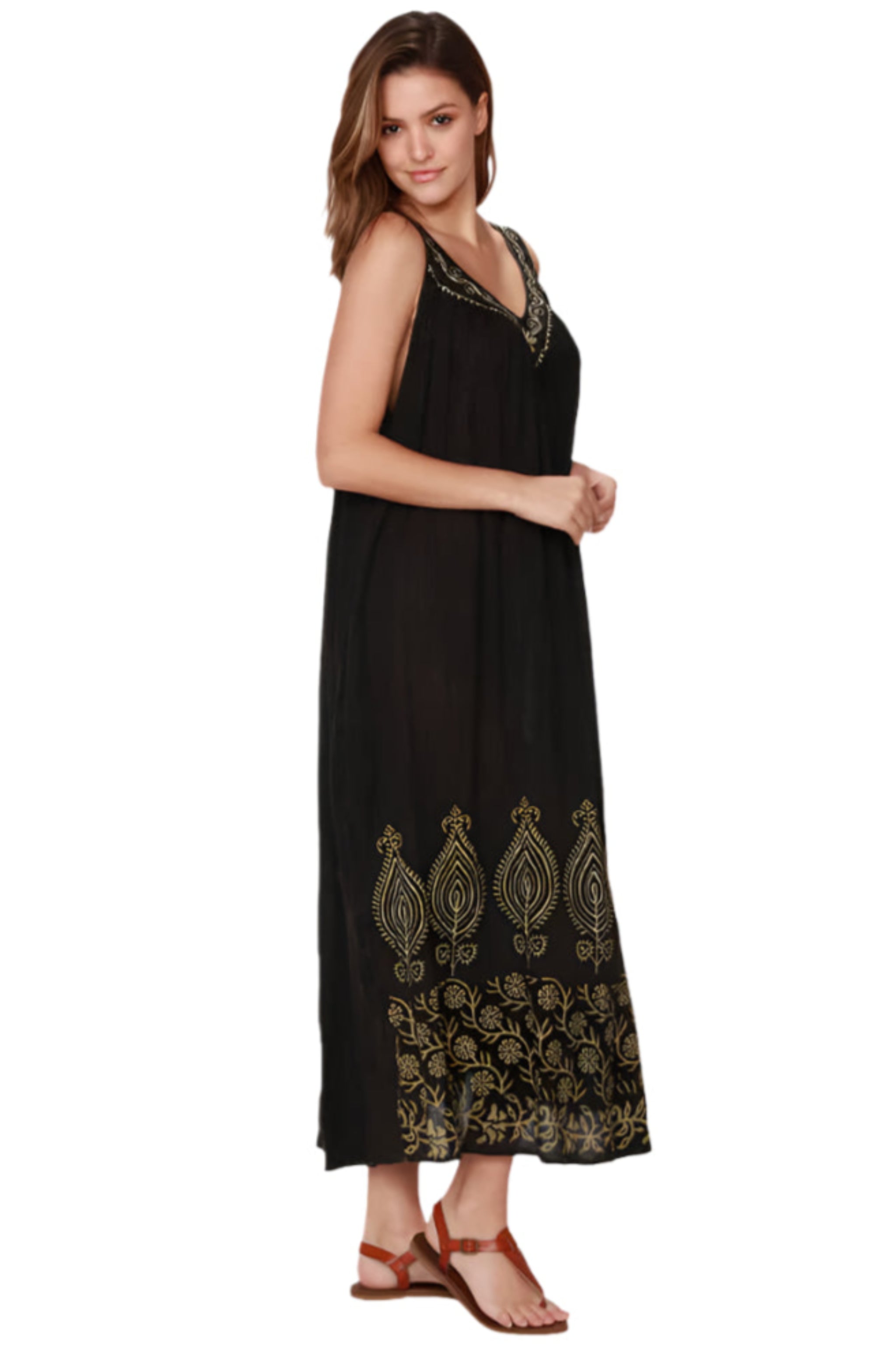 Robe longue parapluie en rayonne froissée avec imprimé et broderie
