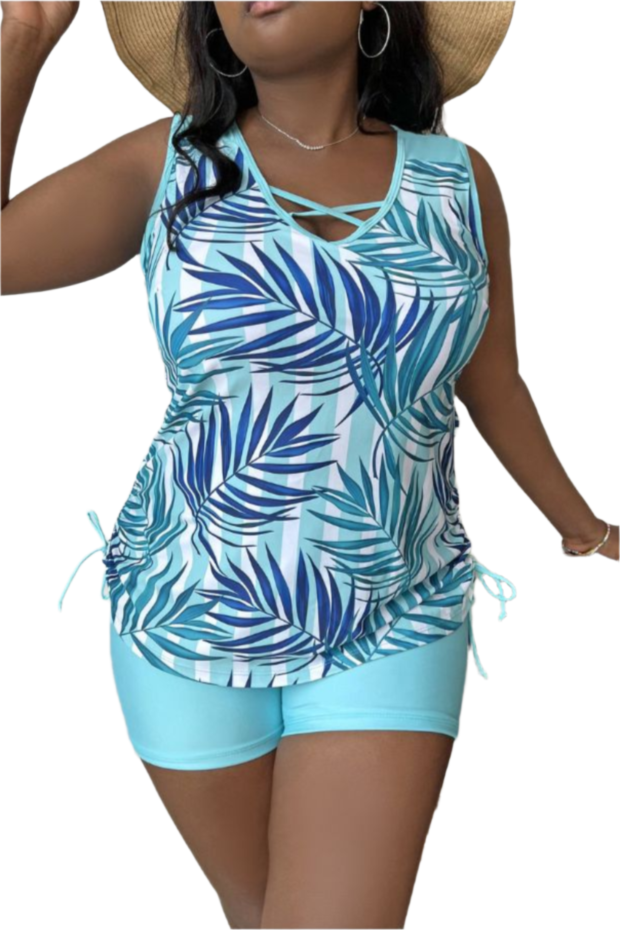 Crisscross Neck Two Piece Plus Size Tankini Swimsuit