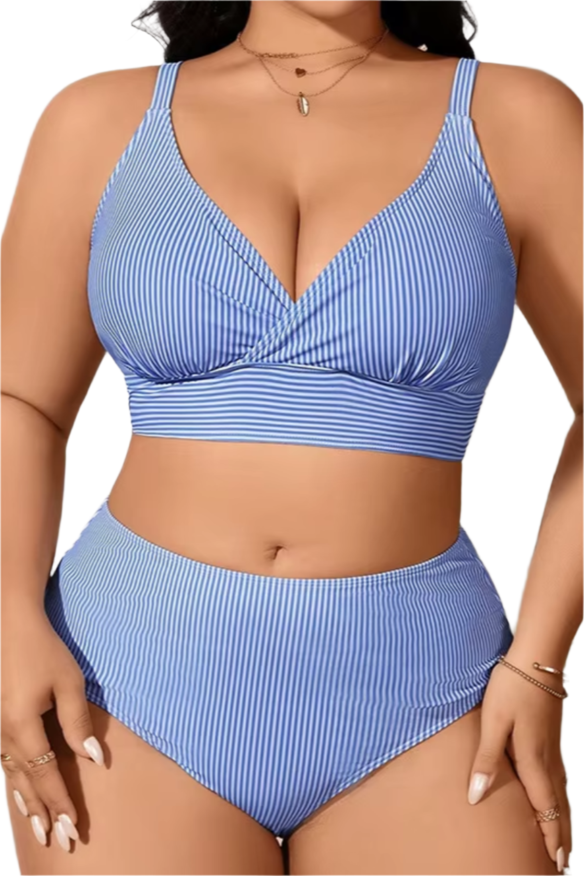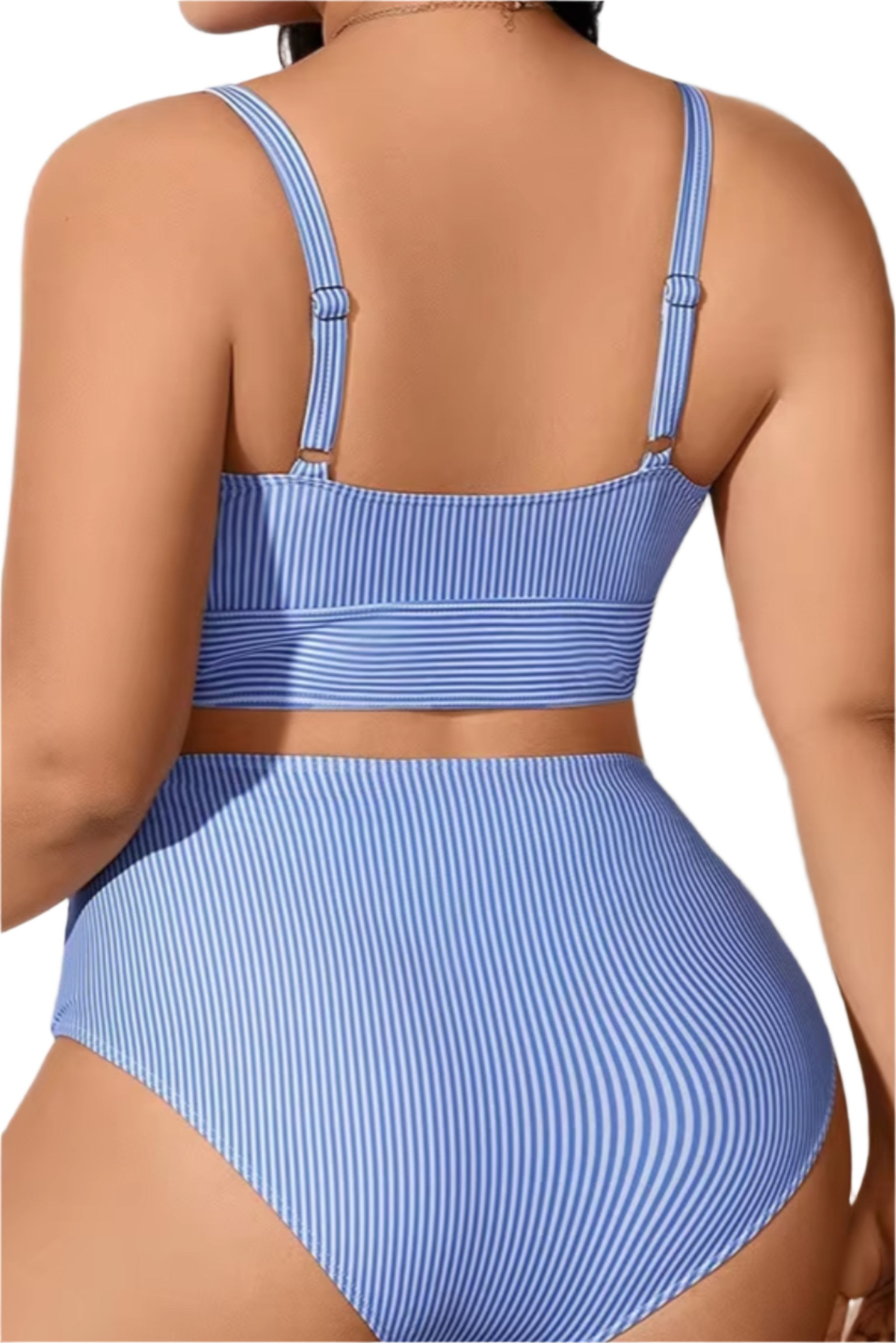 Maillot de bain deux pièces grande taille à rayures croisées sur le devant