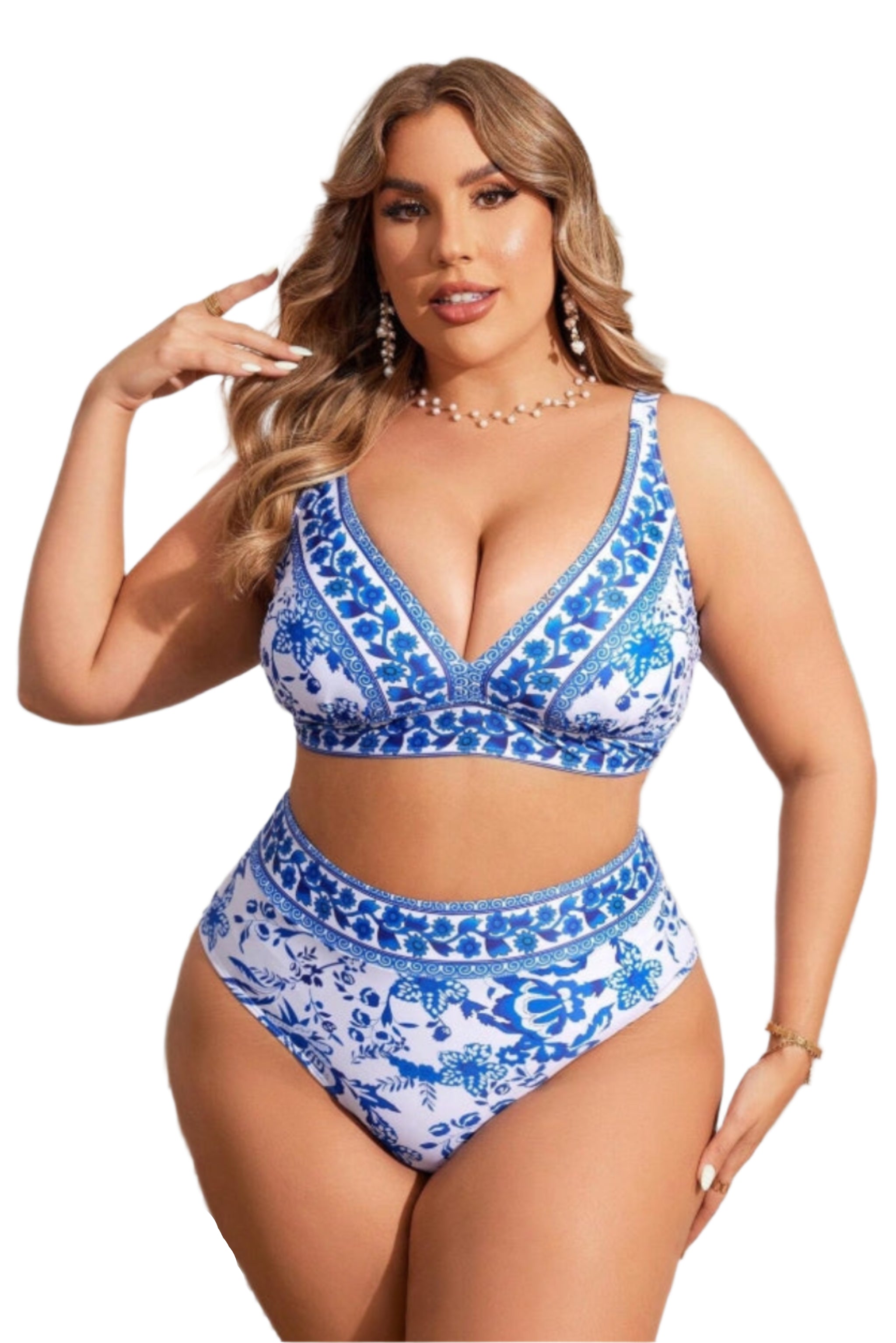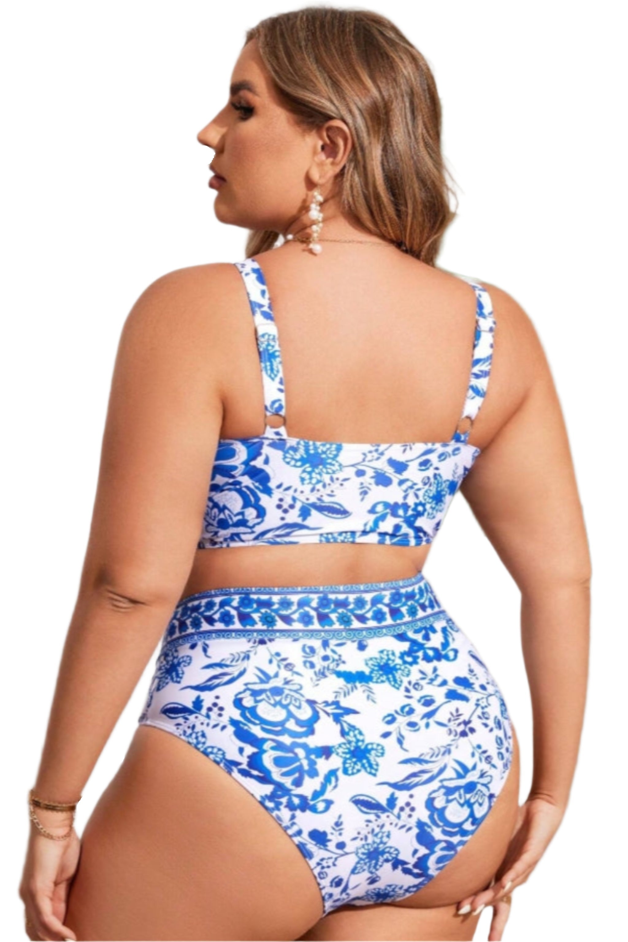 Maillot de bain deux pièces grande taille à imprimé floral