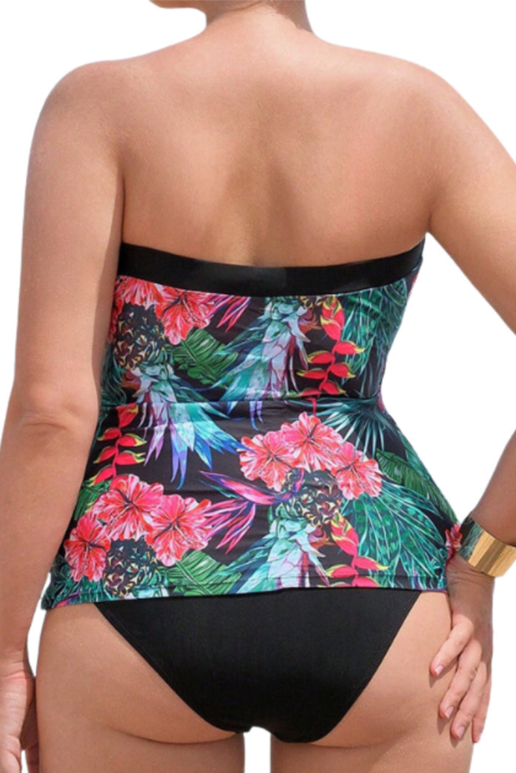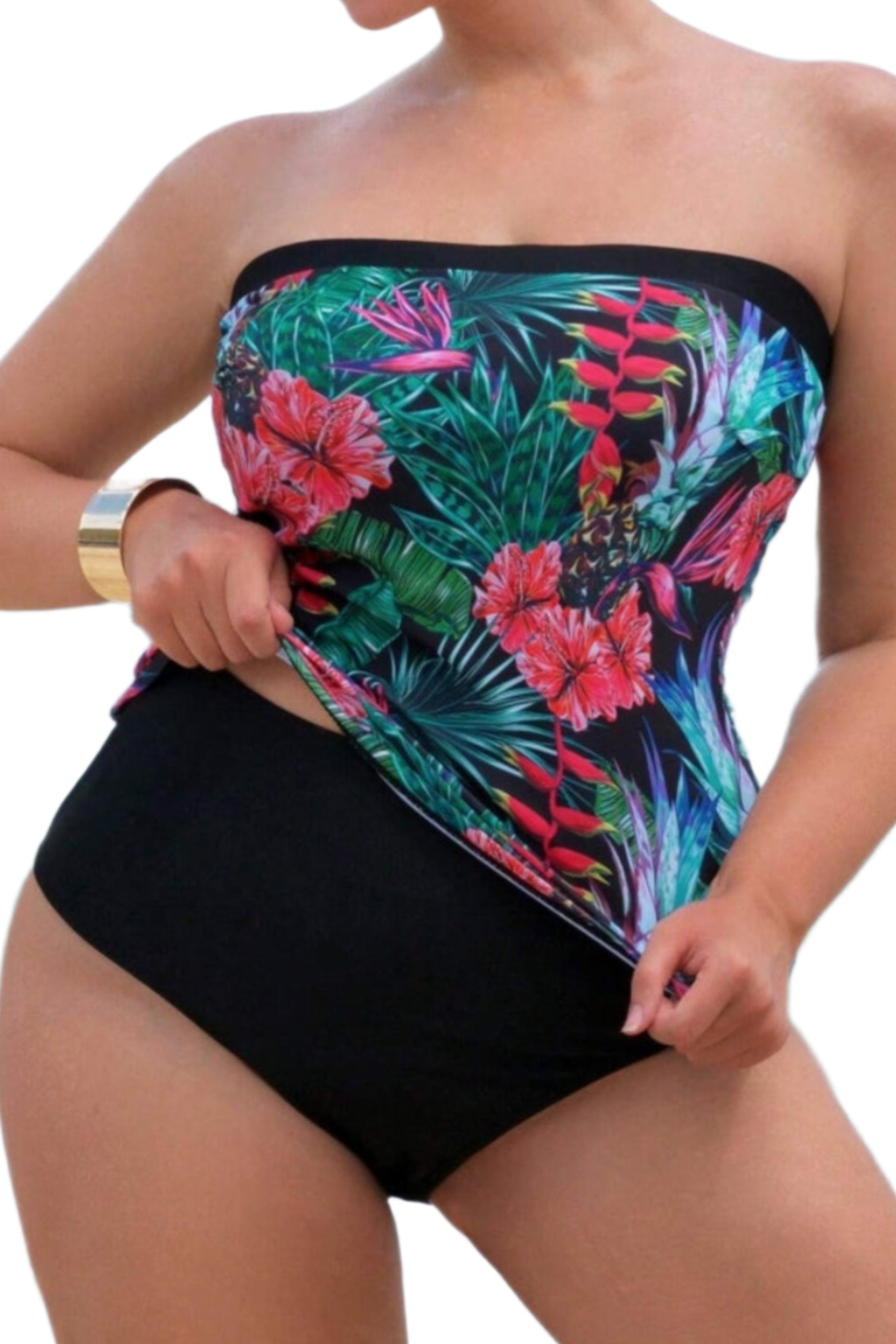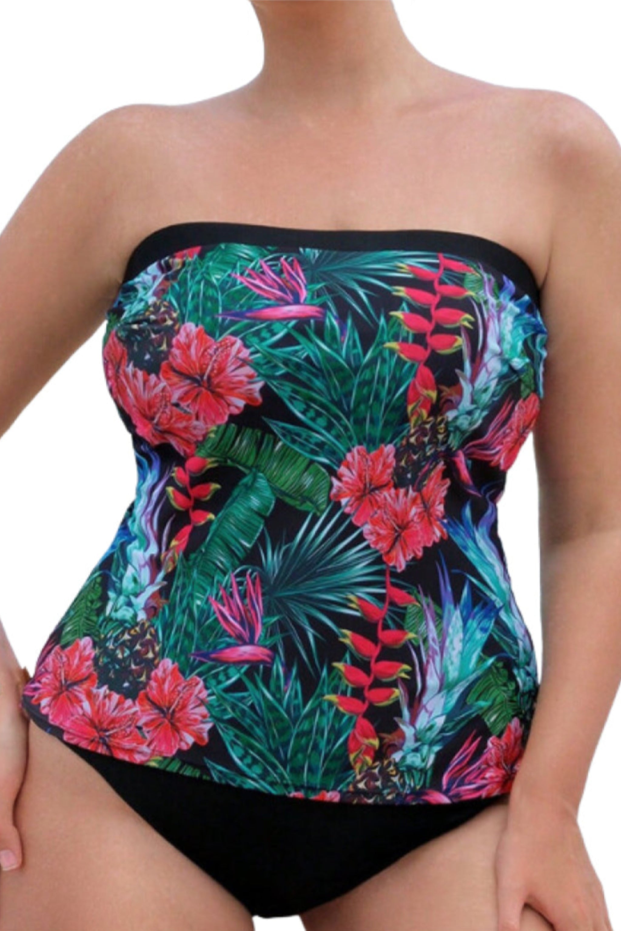 Maillot de bain tankini deux pièces grande taille avec haut tube fleuri et bas uni
