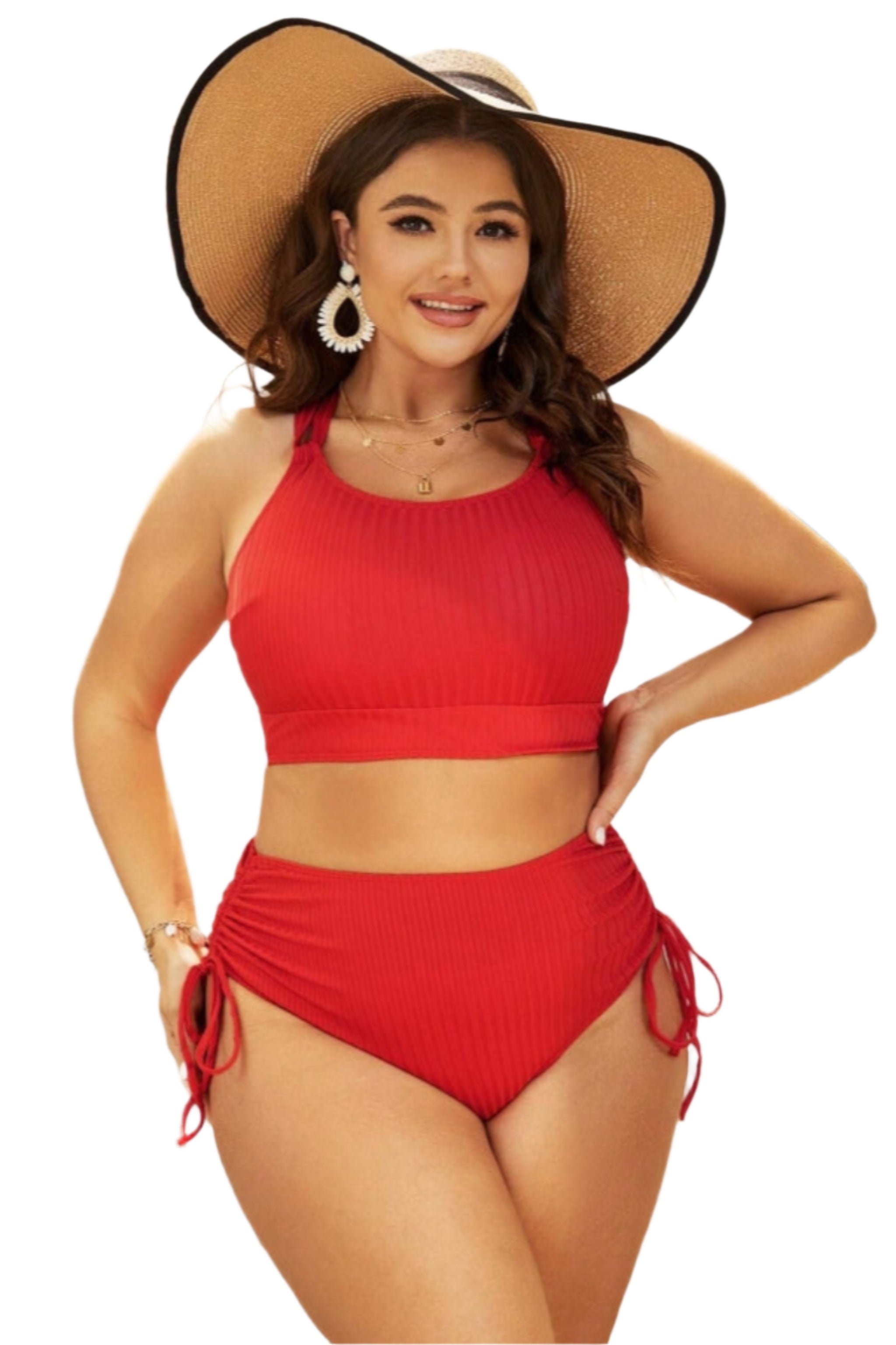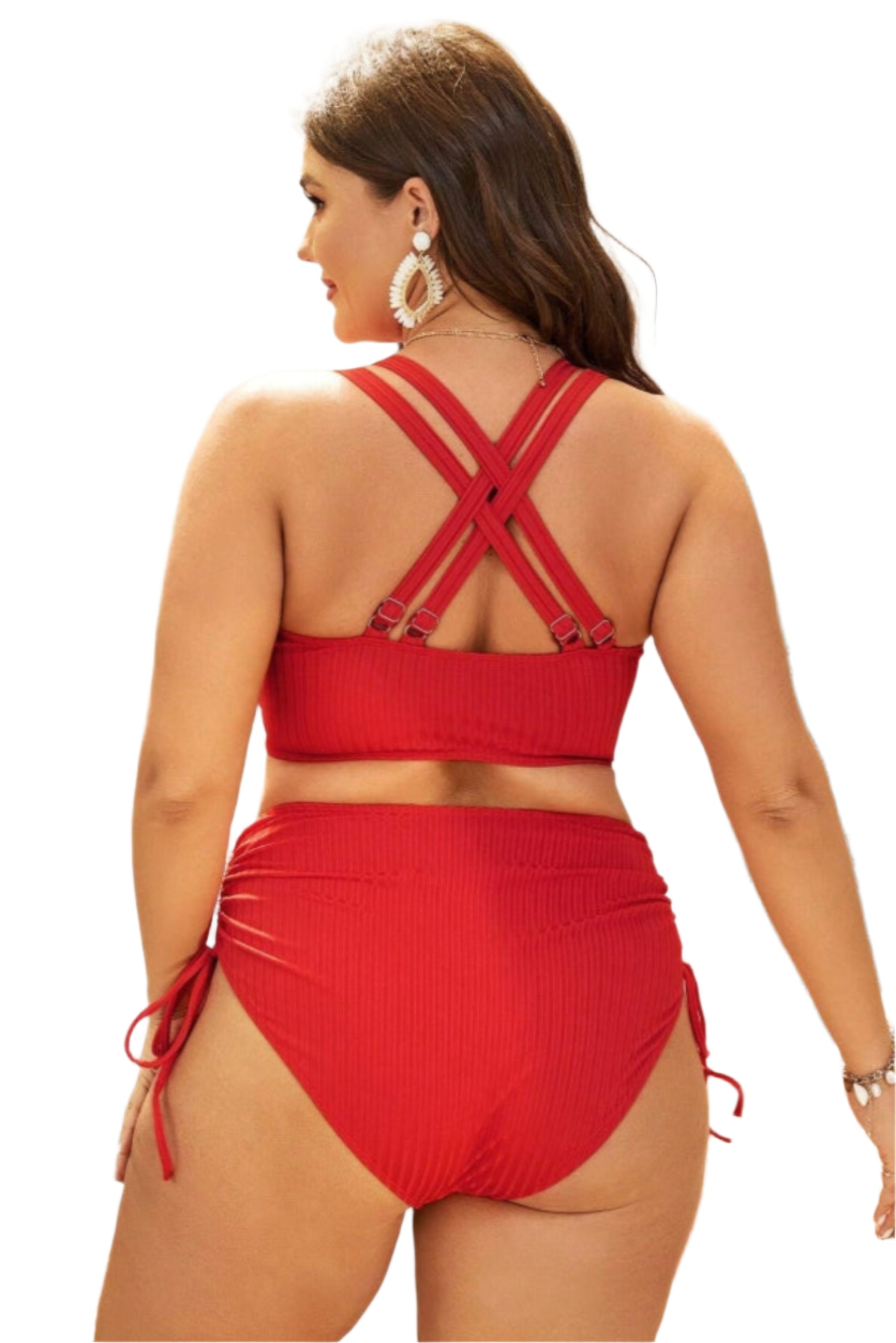 Maillot de bain deux pièces grande taille côtelé à dos croisé