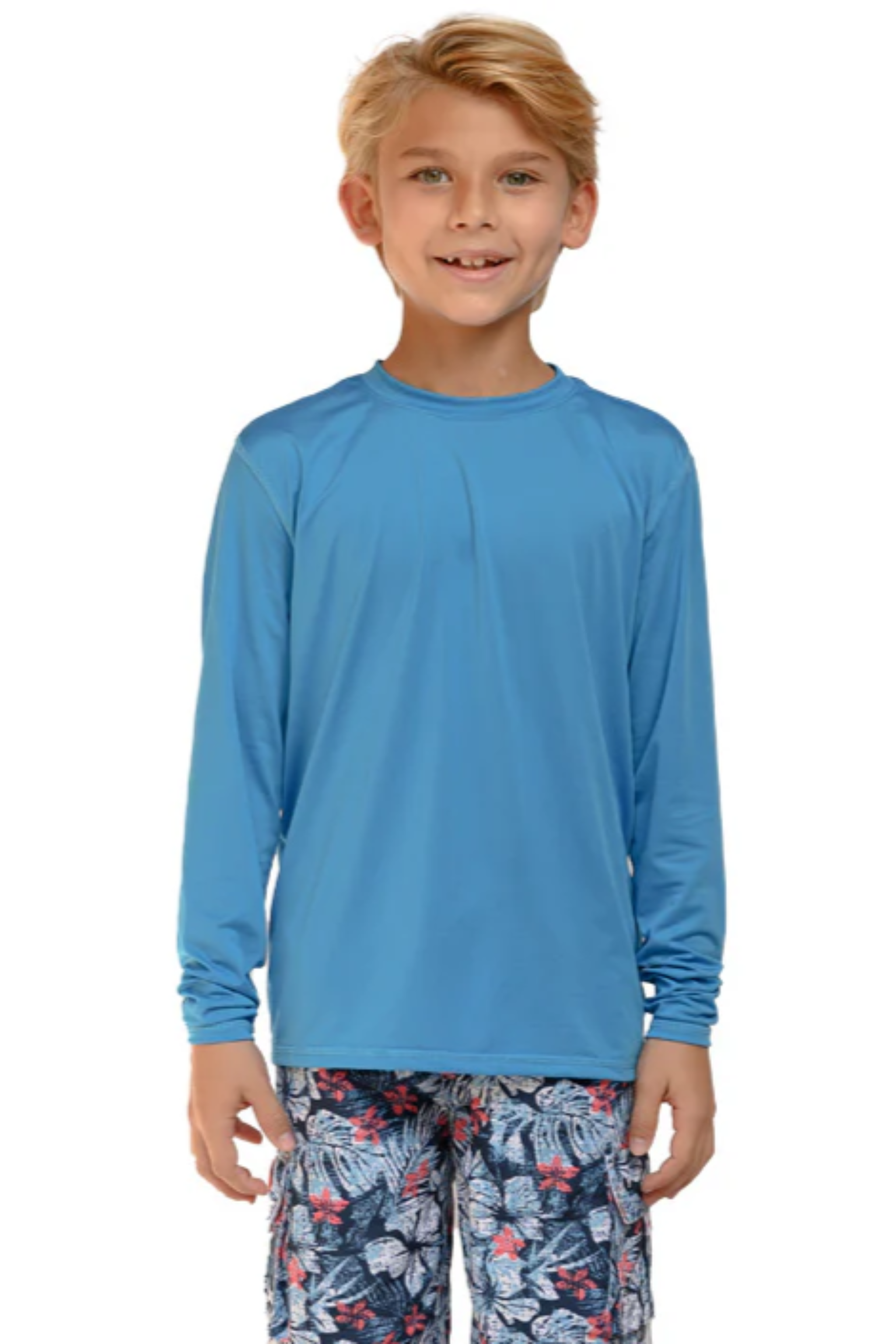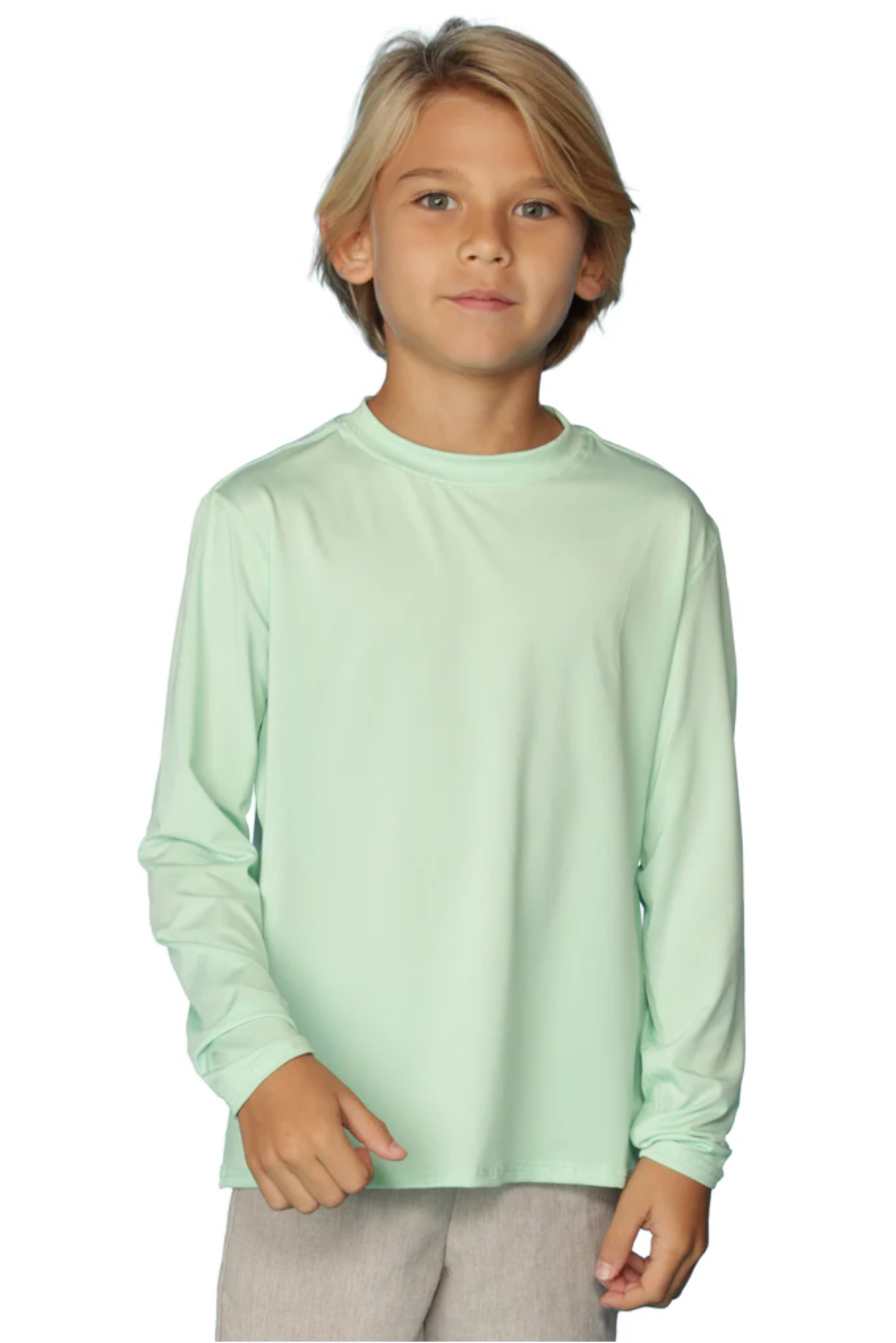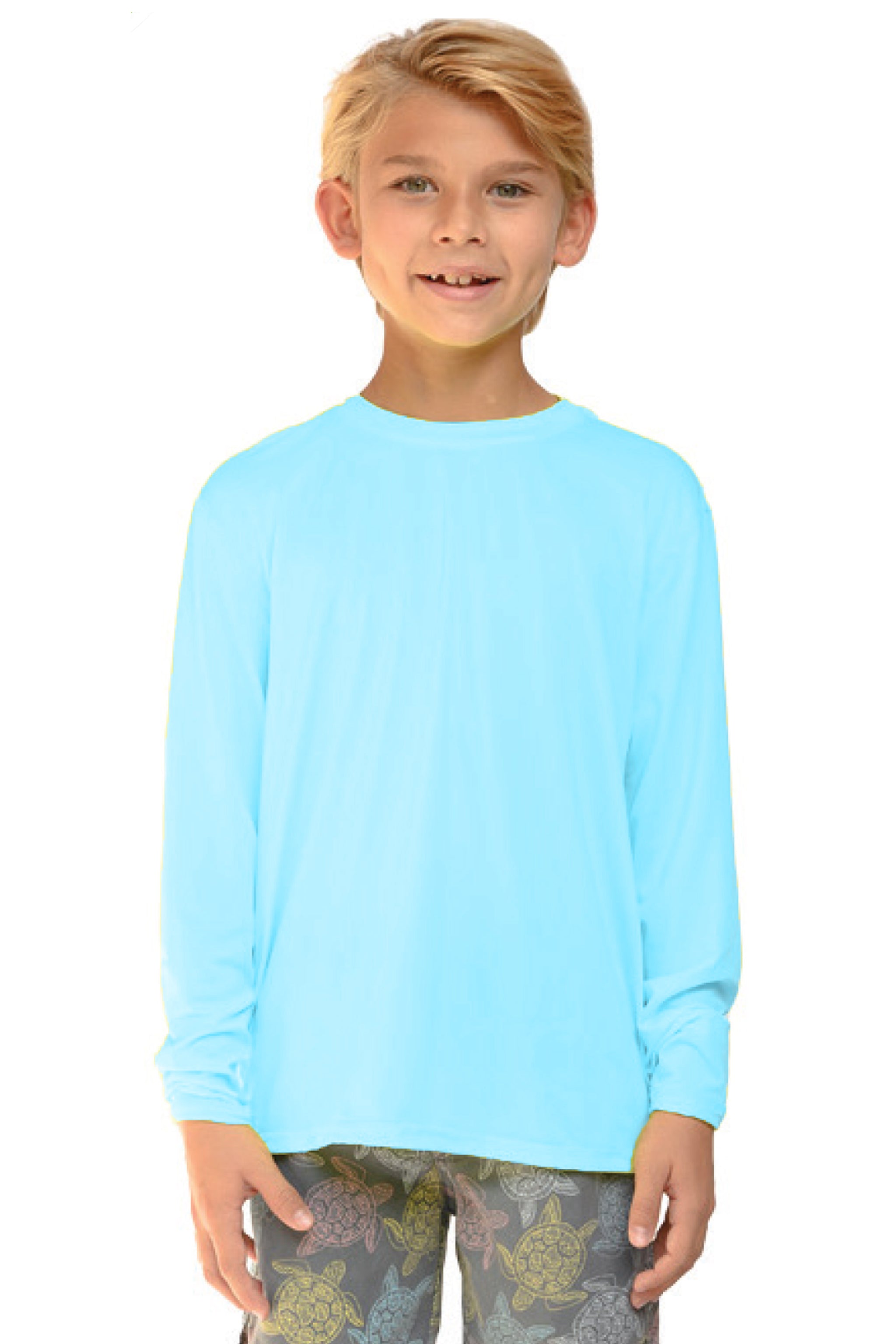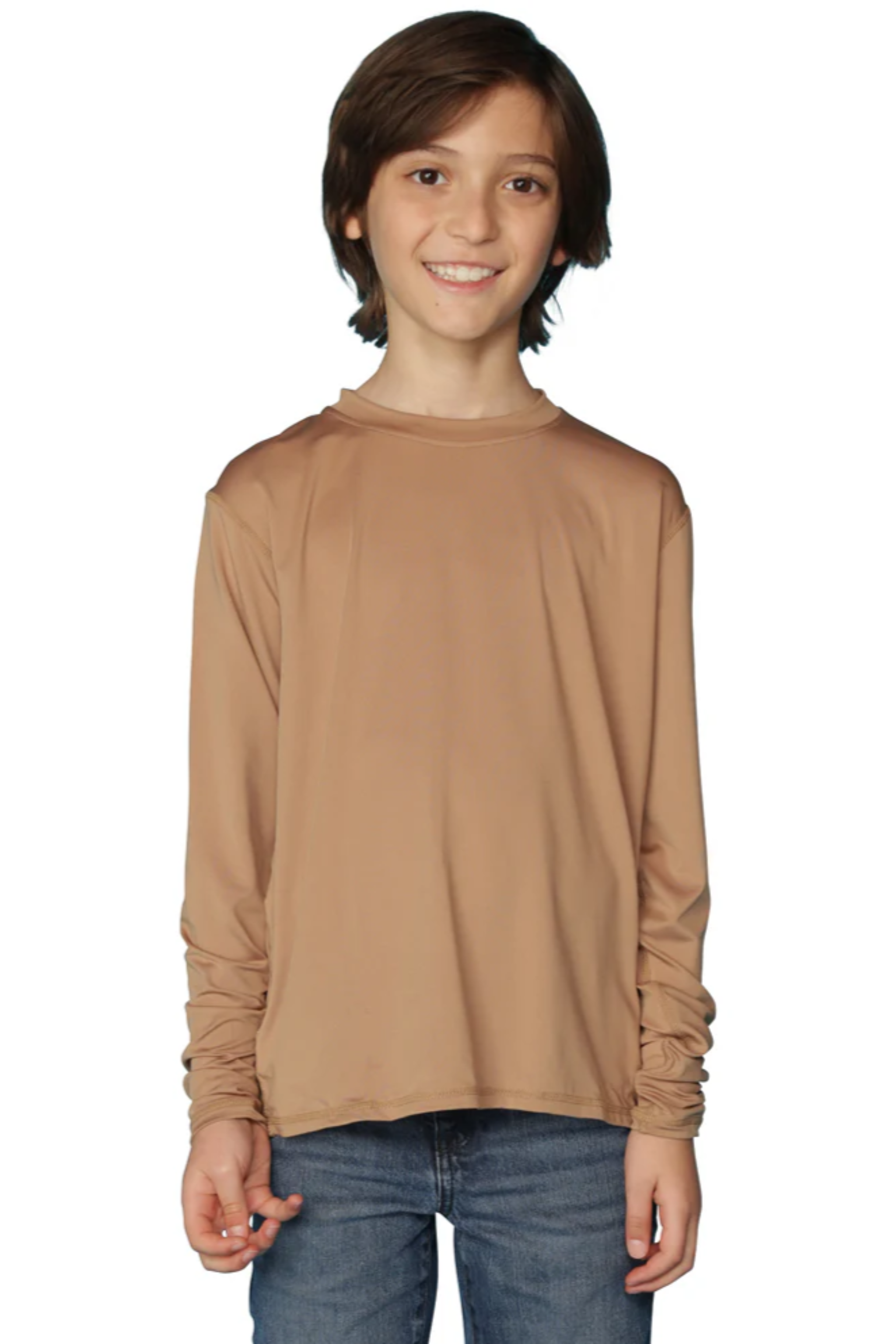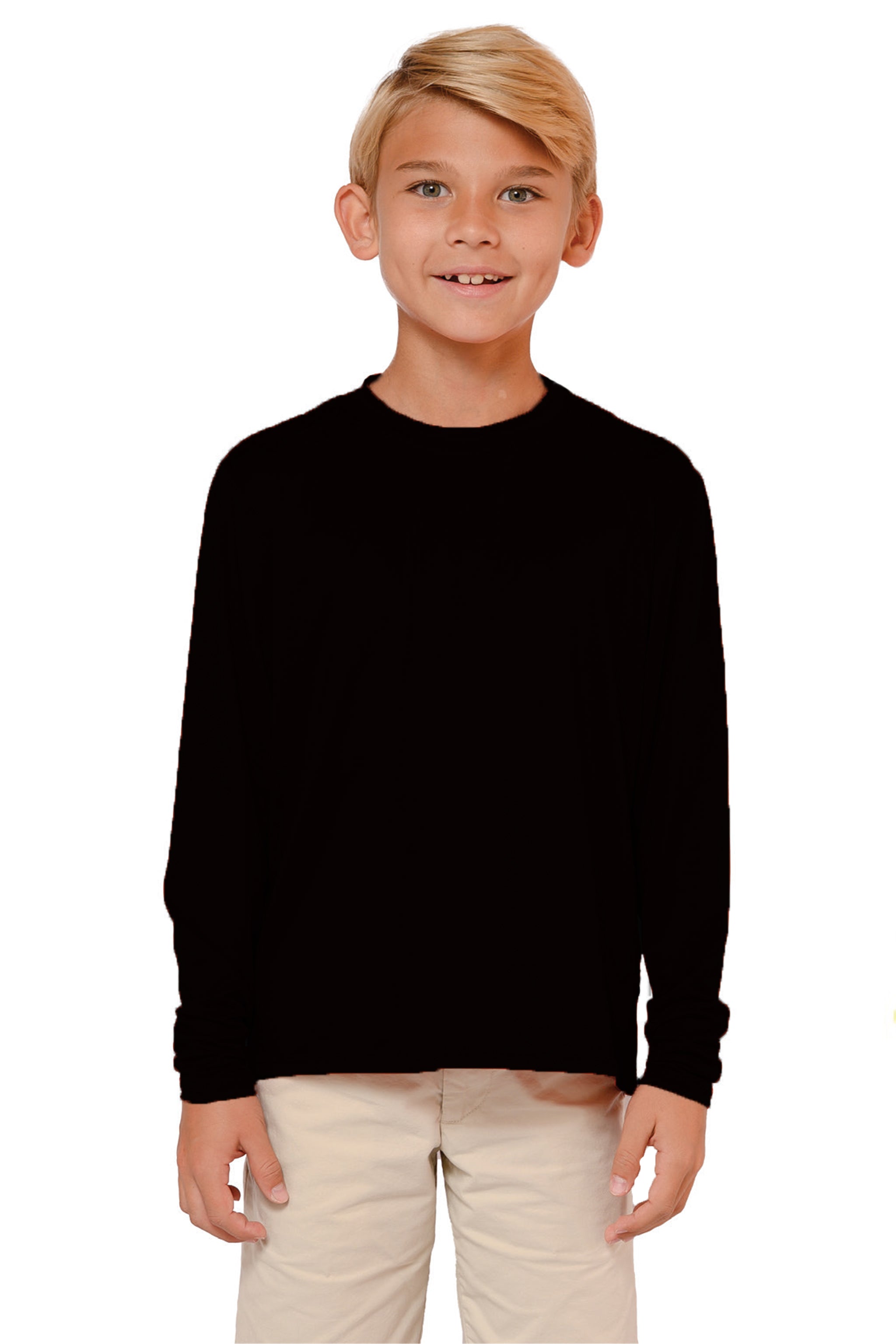 Chemise de soleil ample à manches longues et col ras du cou pour garçon, couleur unie