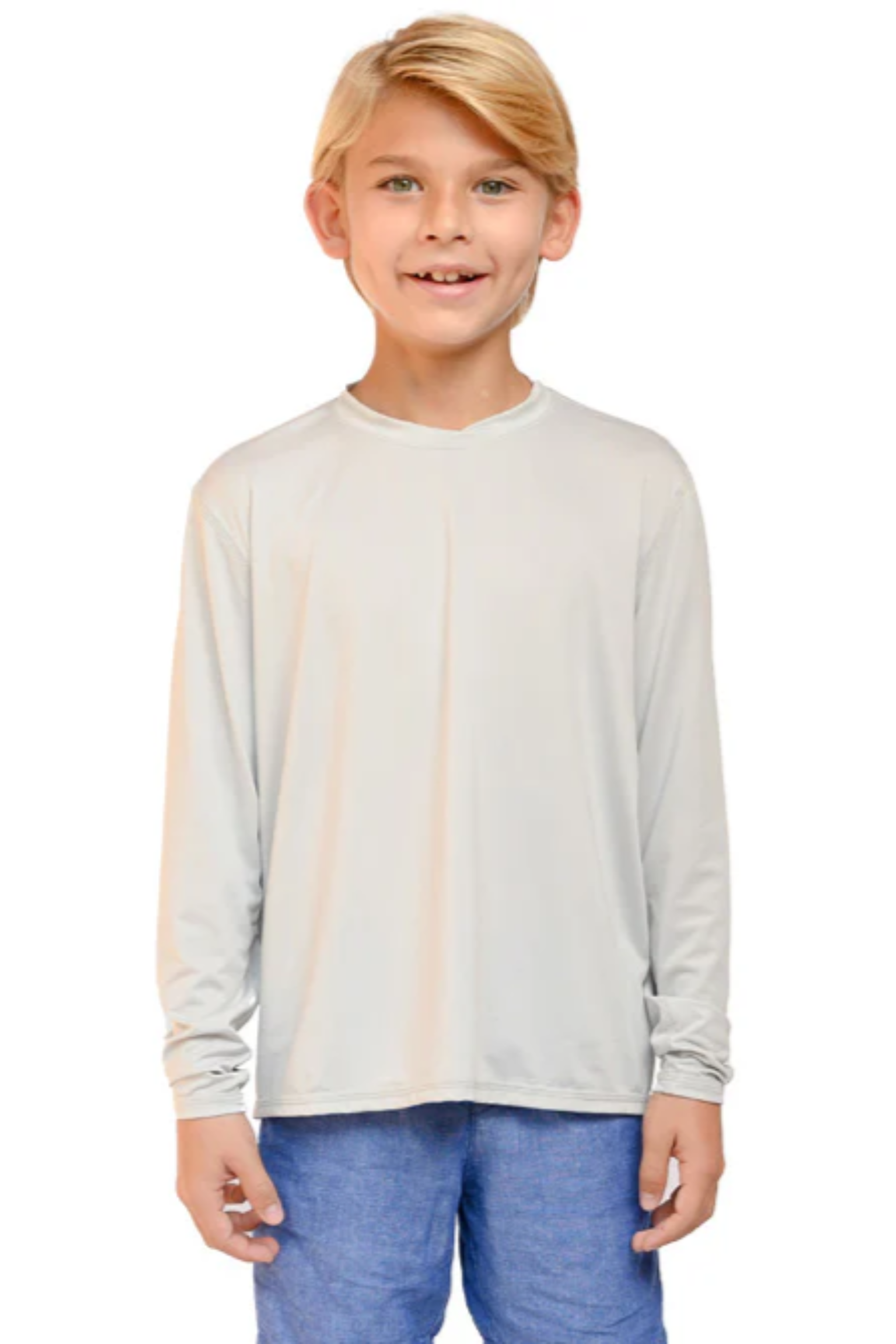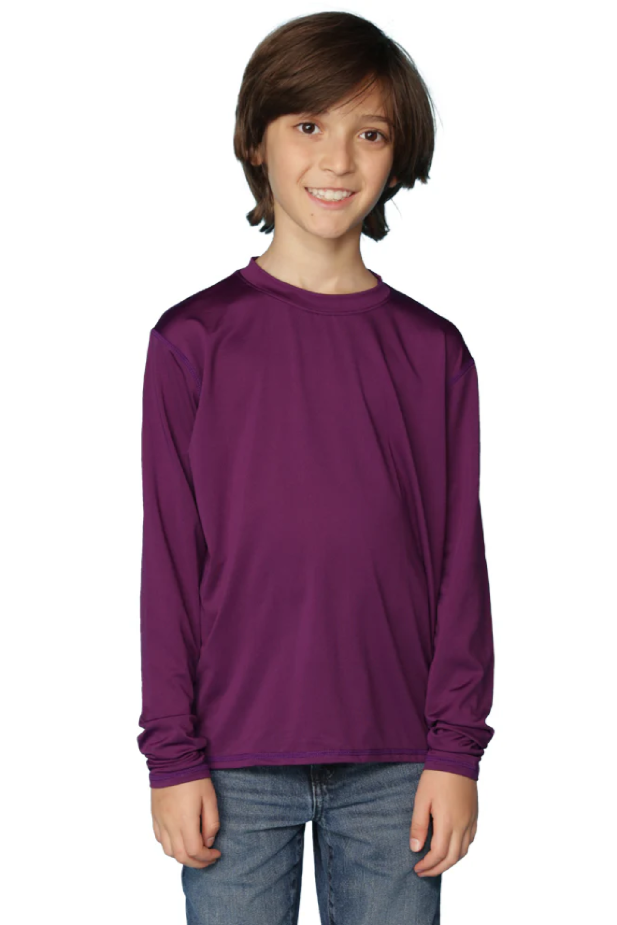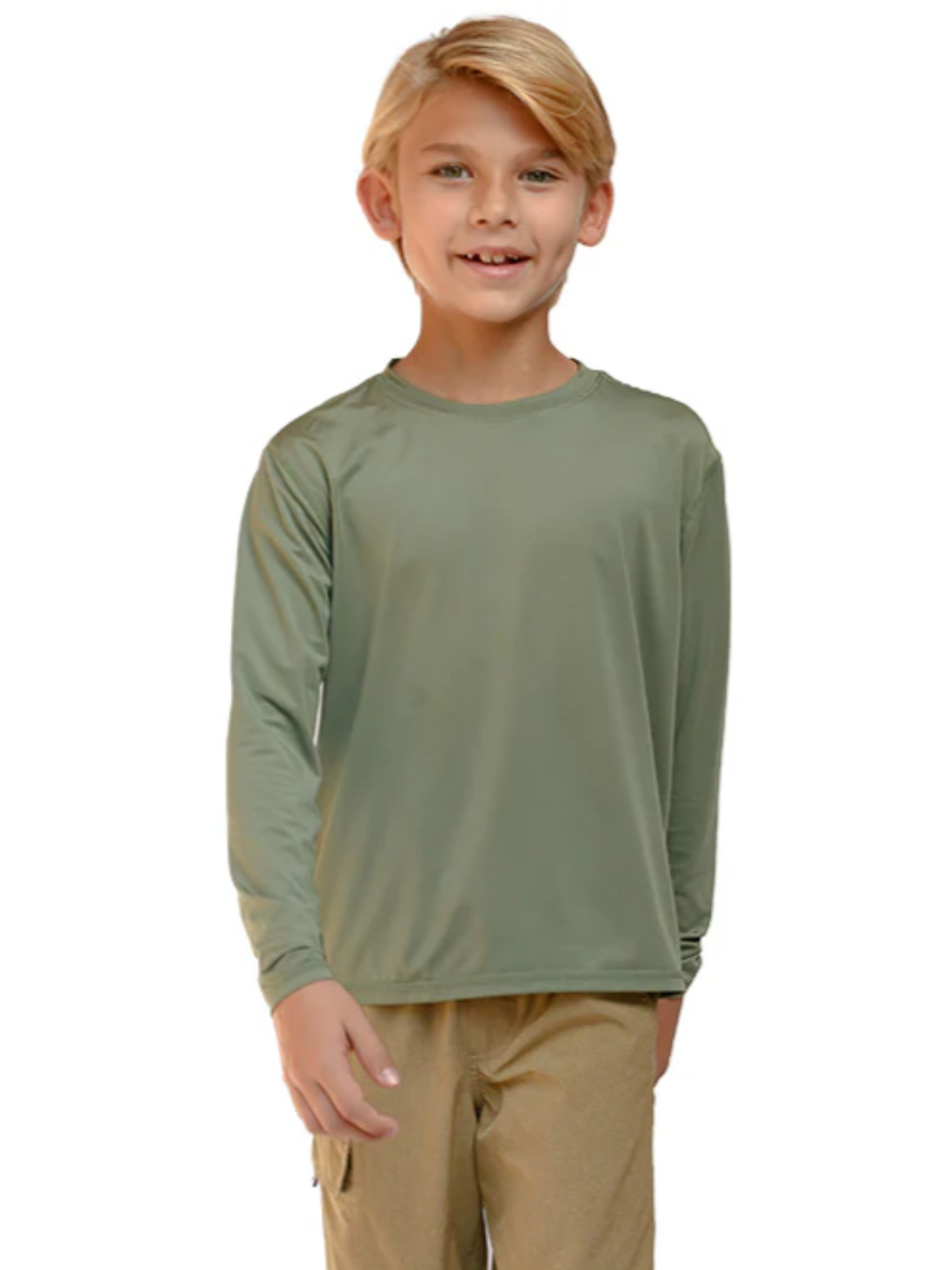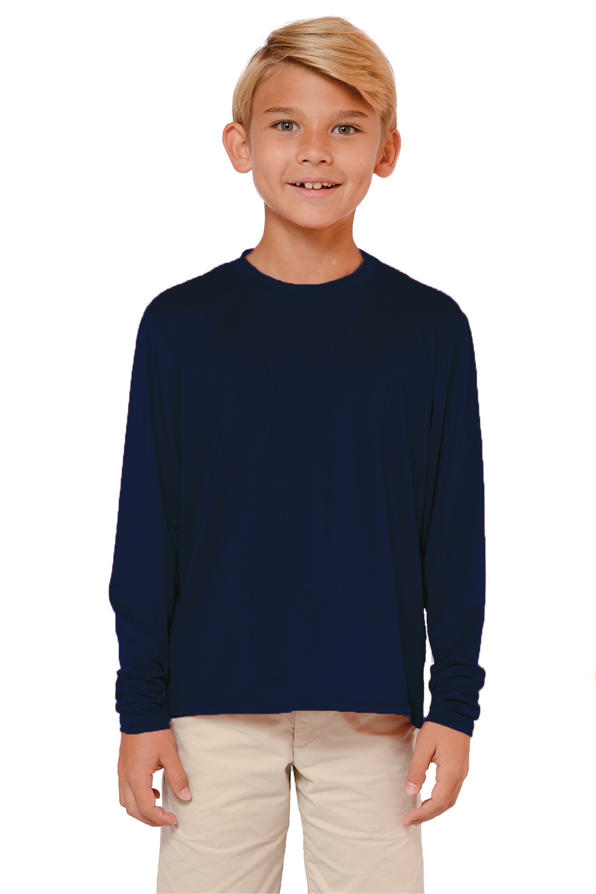 Chemise de soleil ample à manches longues et col ras du cou pour garçon, couleur unie