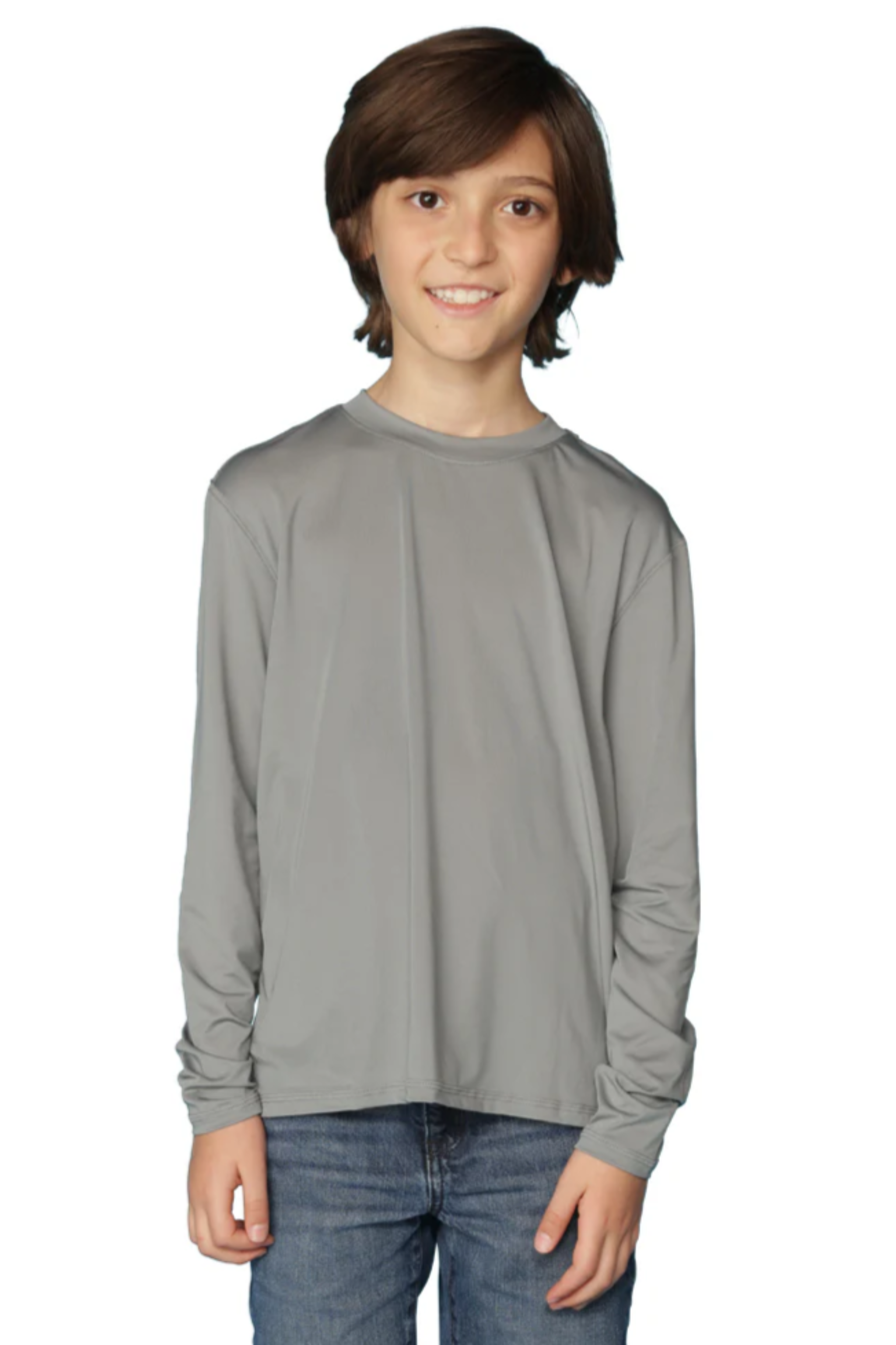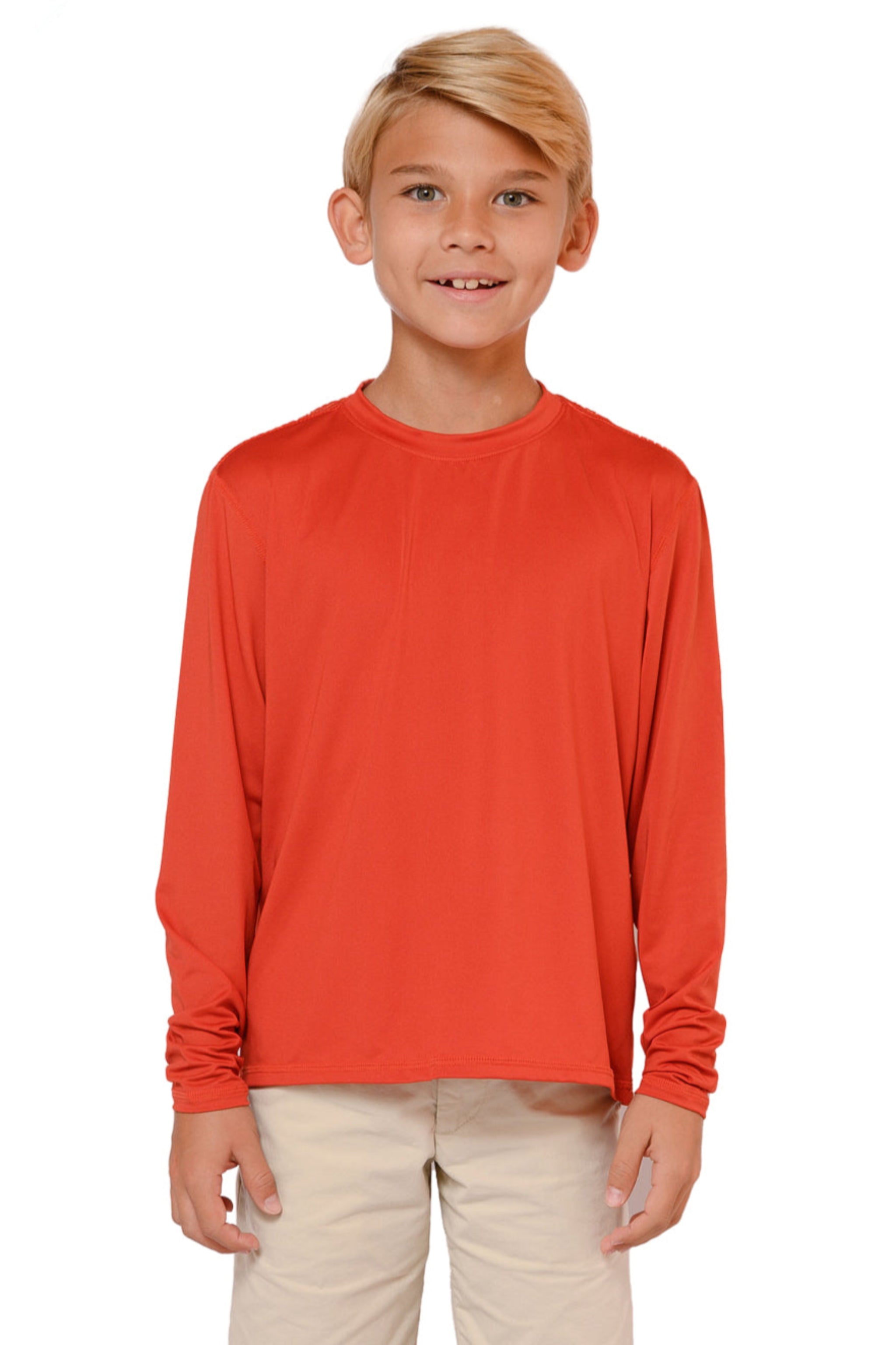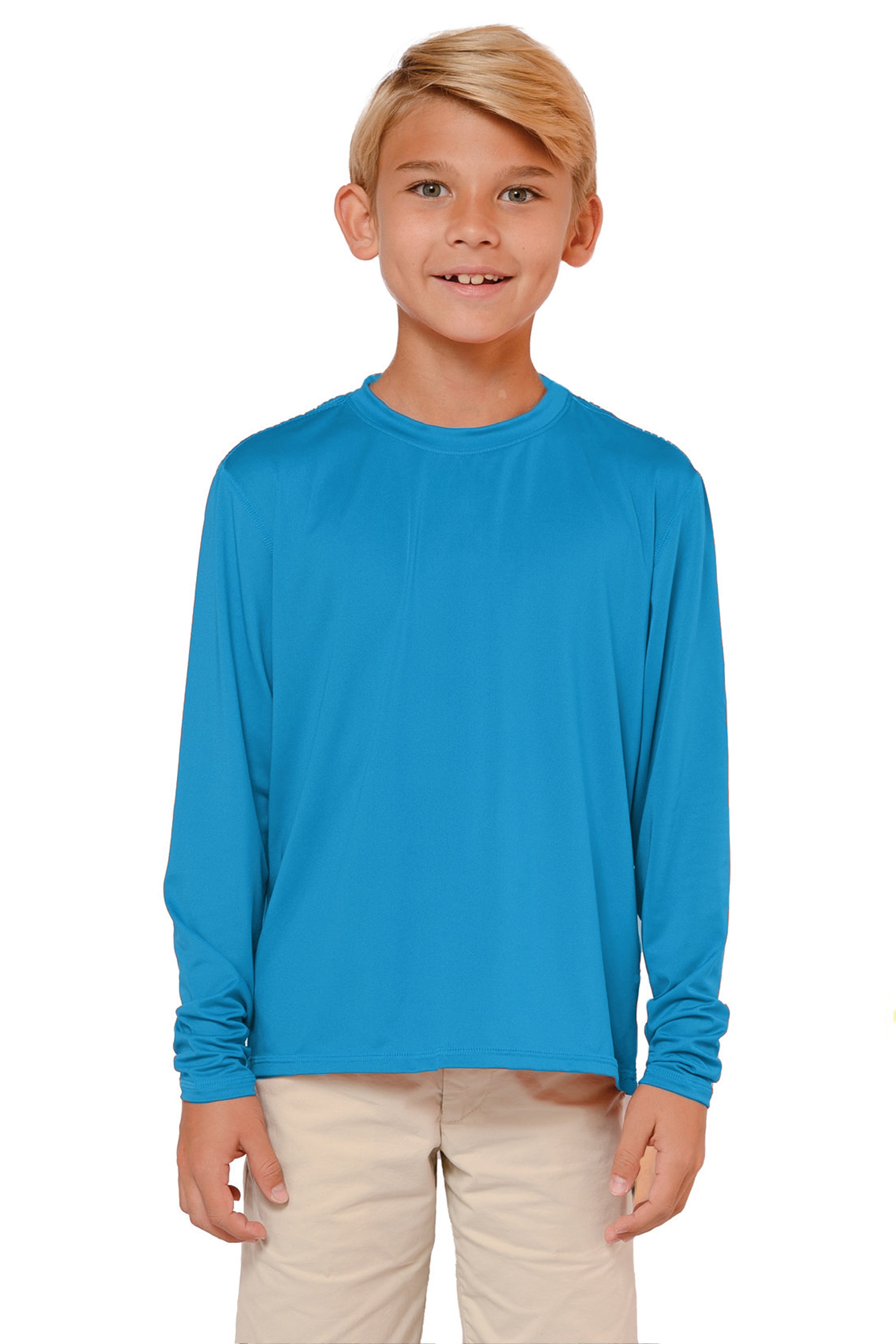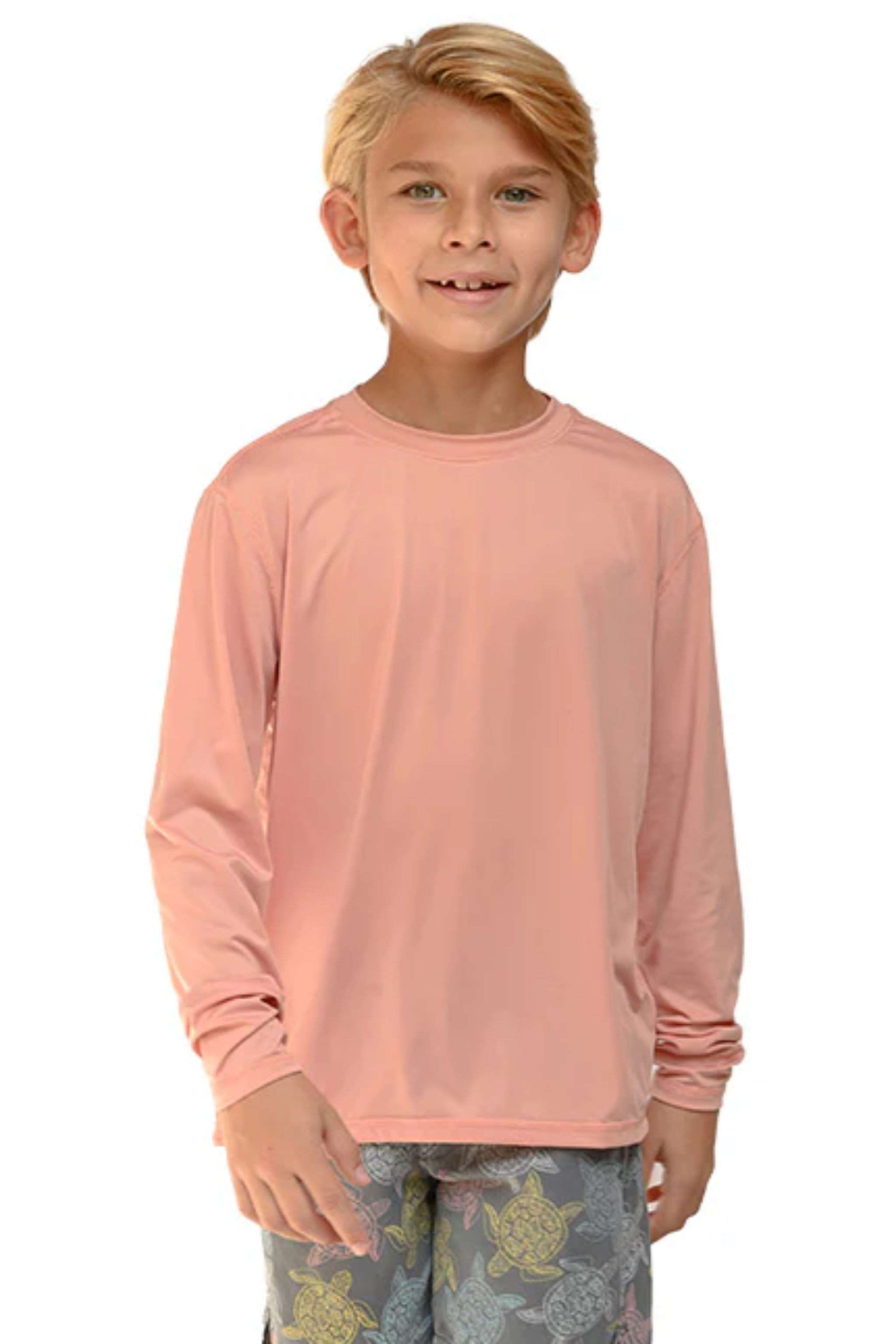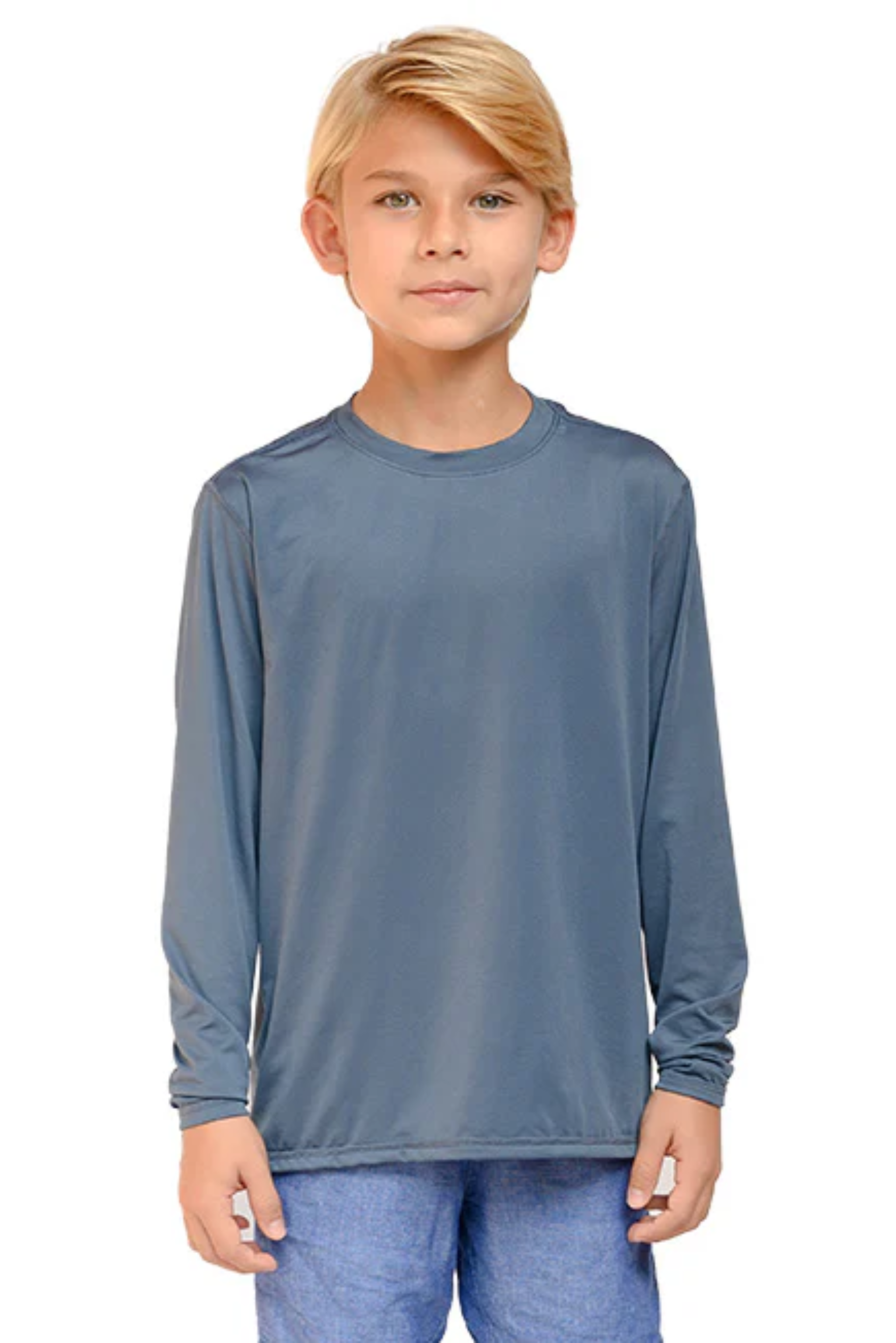 Chemise de soleil ample à manches longues et col ras du cou pour garçon, couleur unie