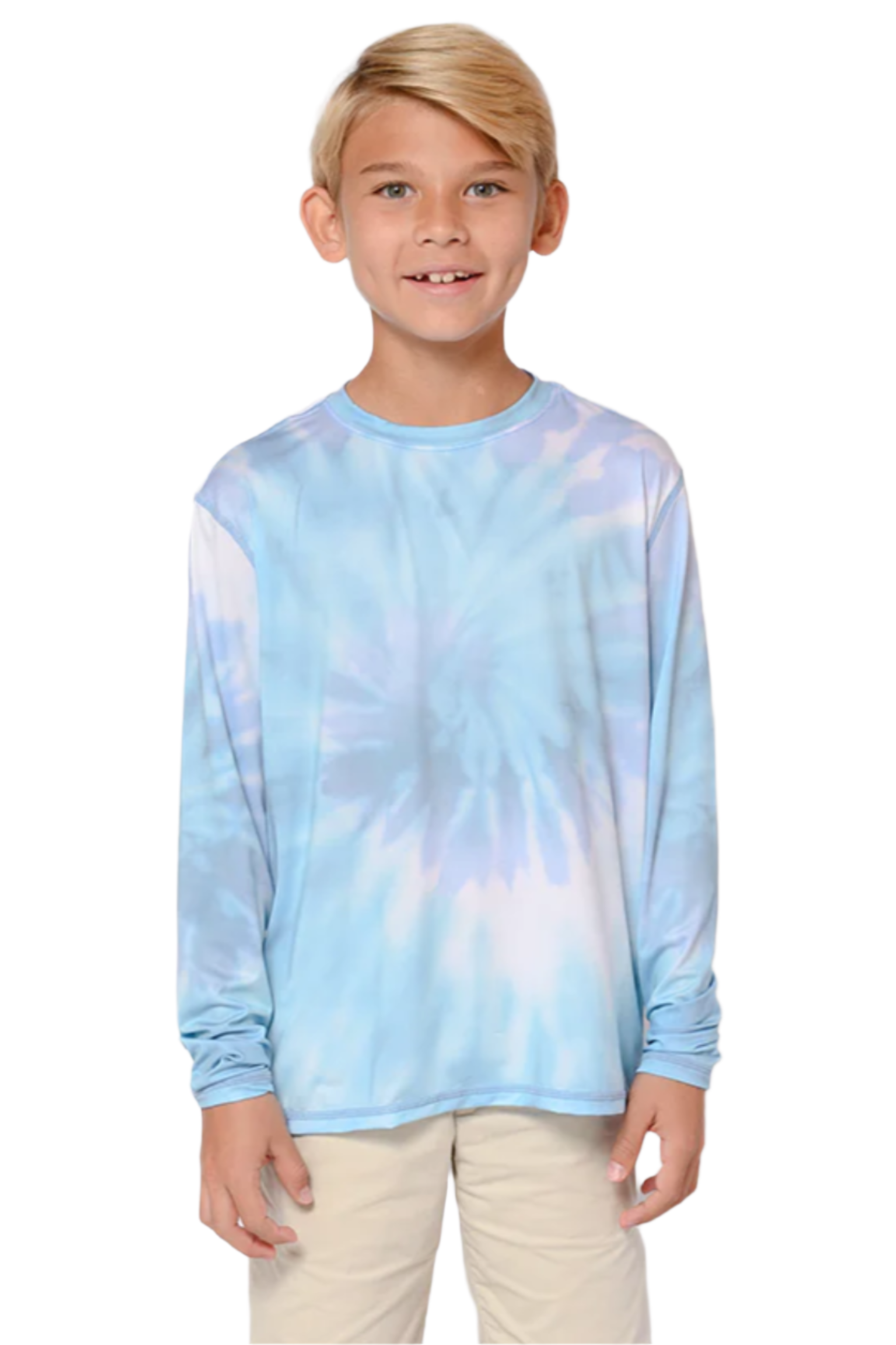 Chemise de soleil ample à manches longues et col ras du cou pour garçon, couleur unie