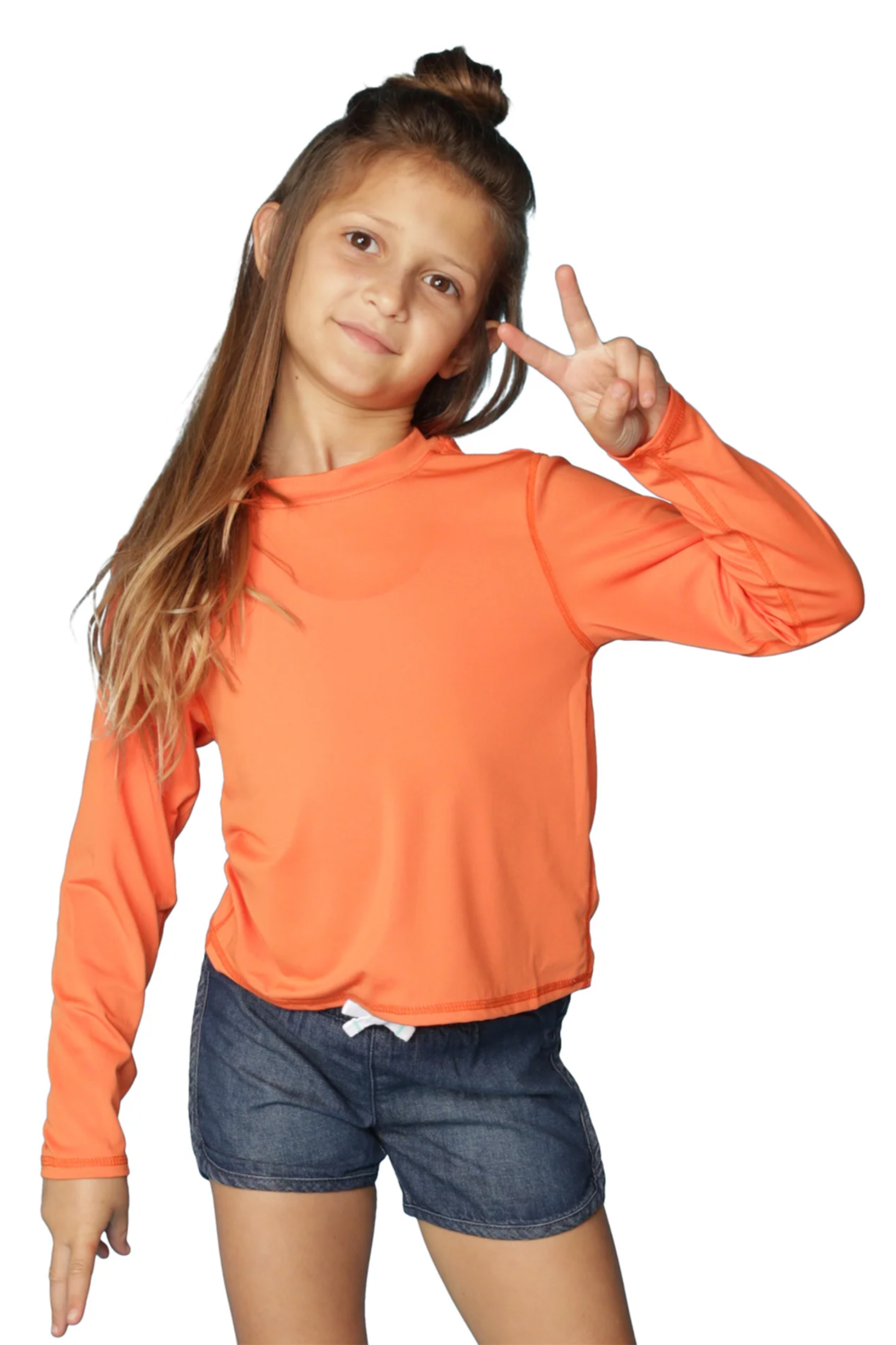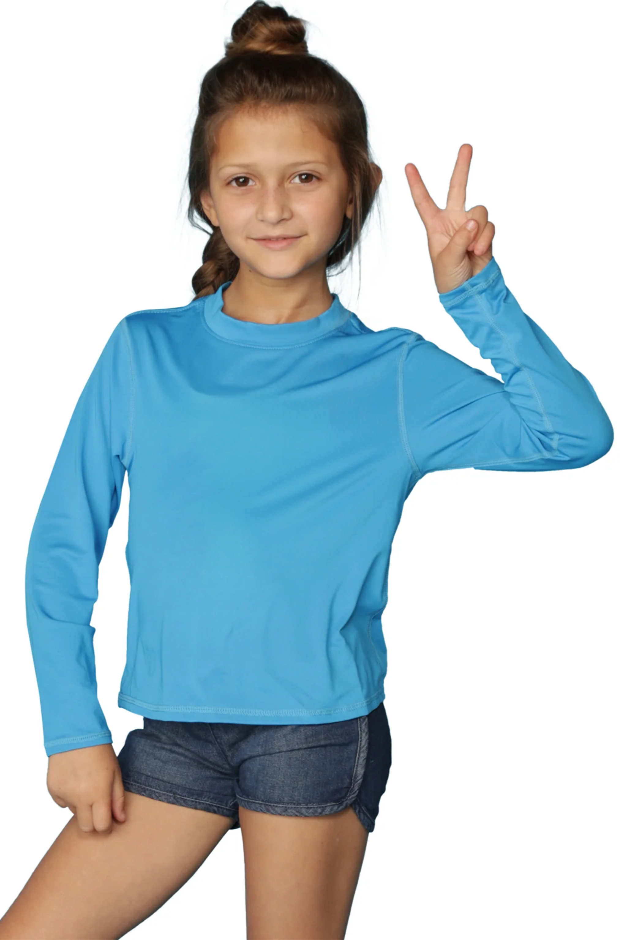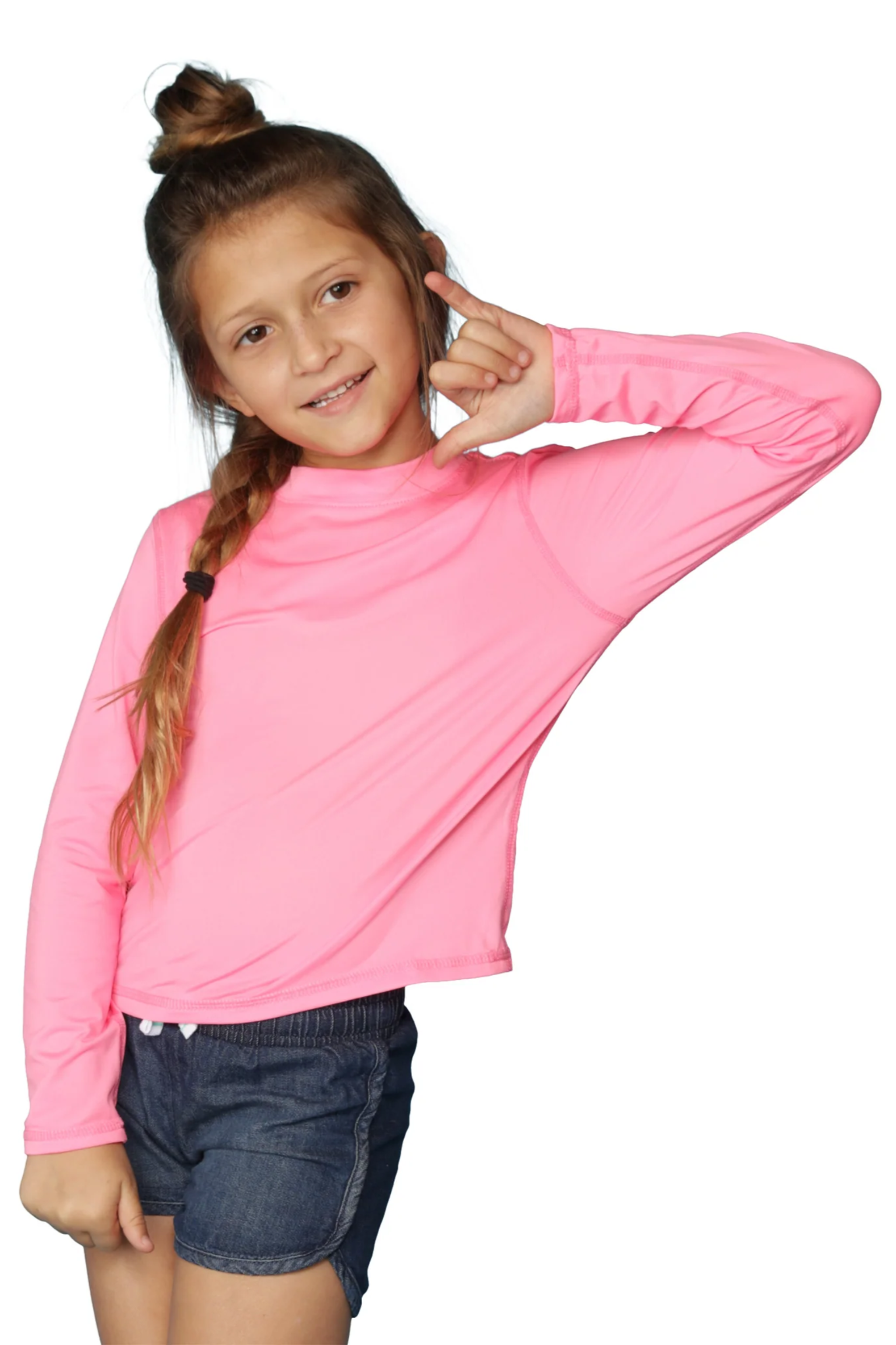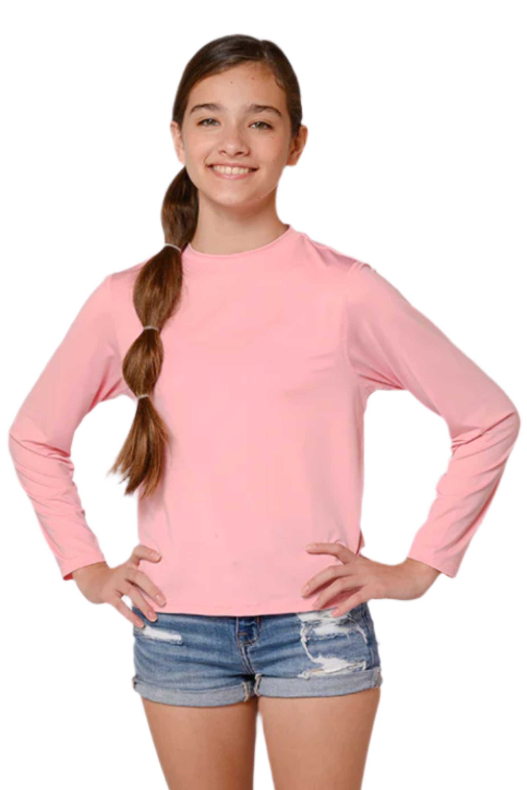 Girls Long Sleeve Solid Colour Crewneck, Loose Fit Sun Shirt