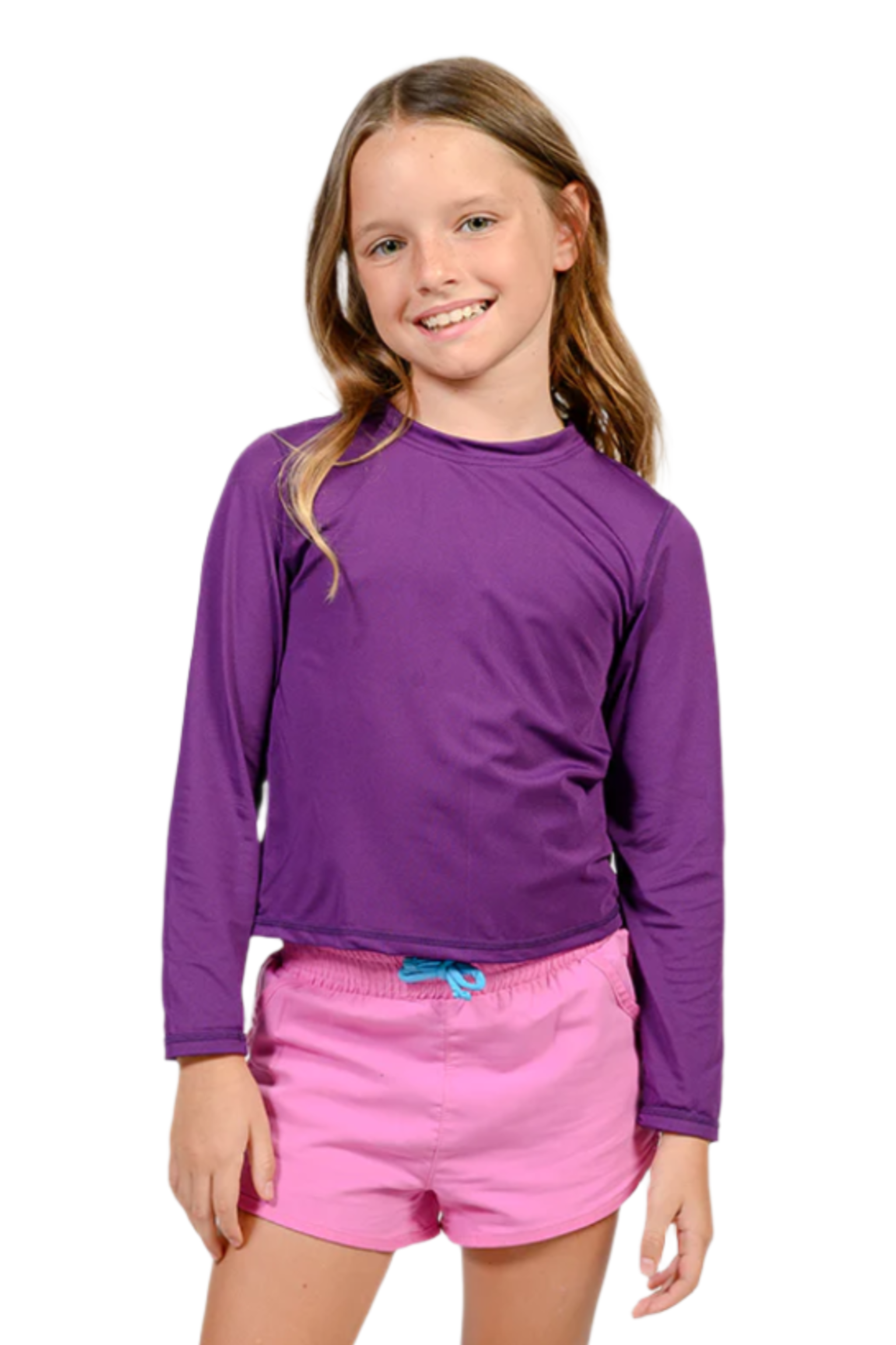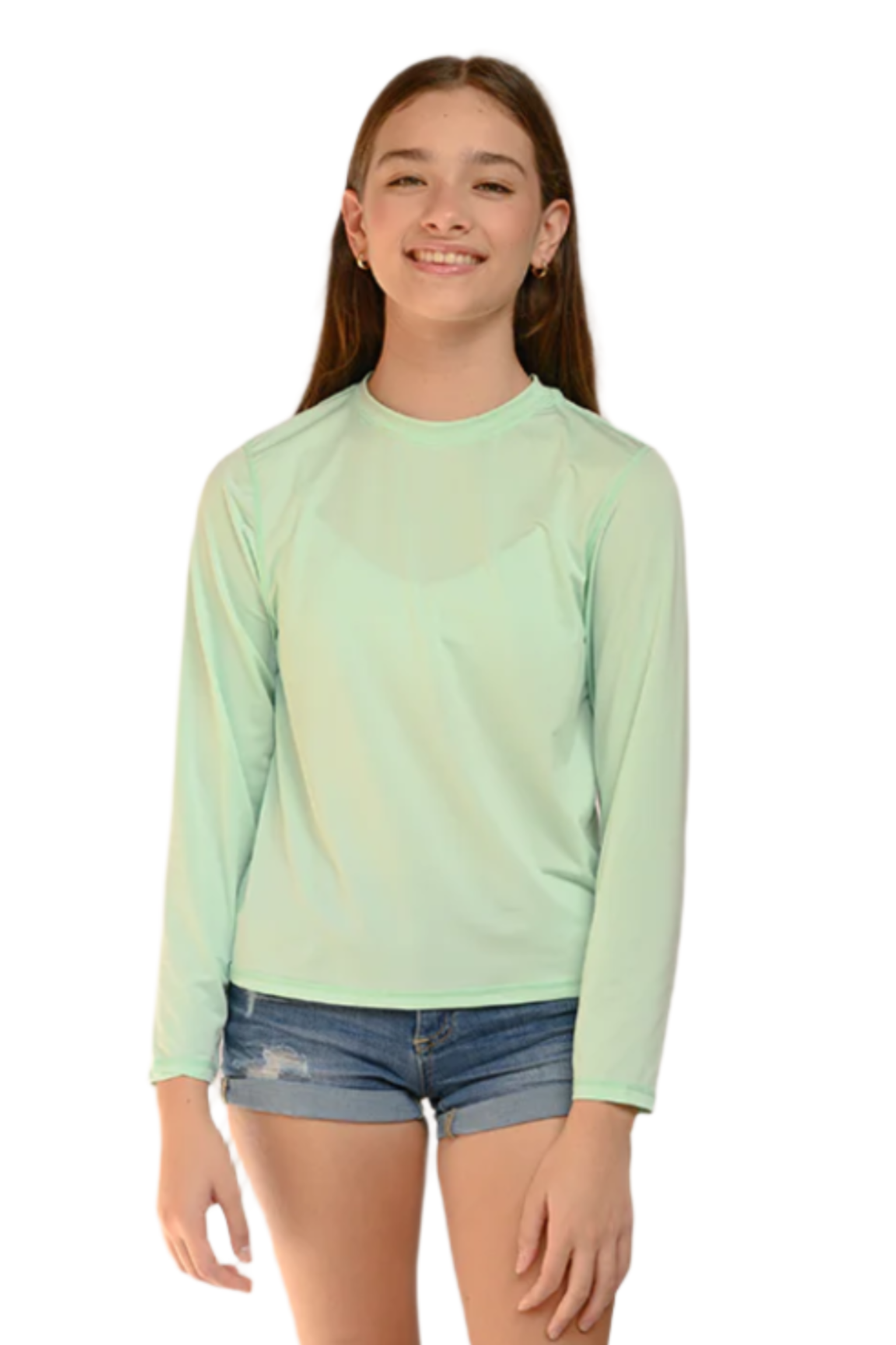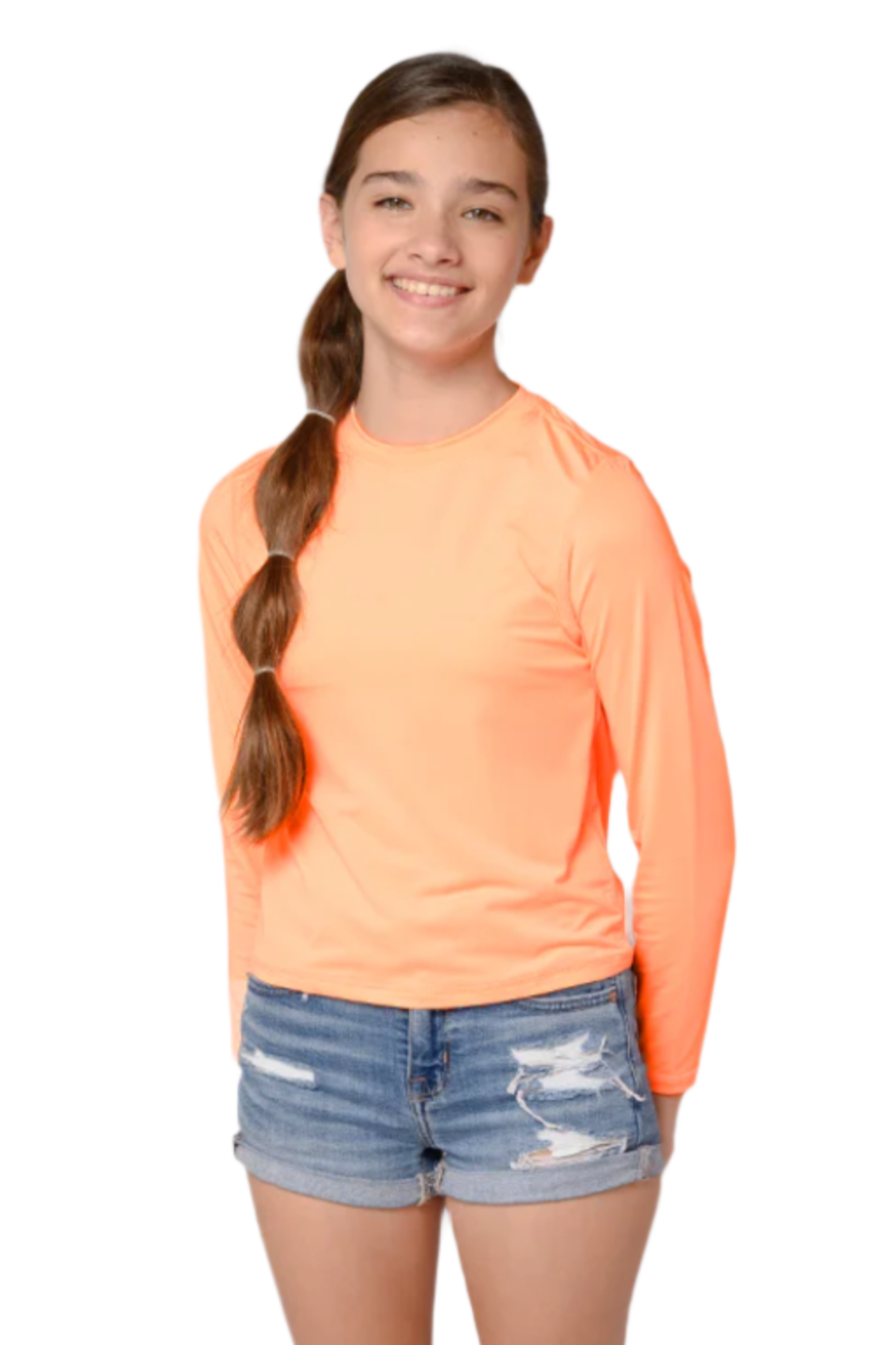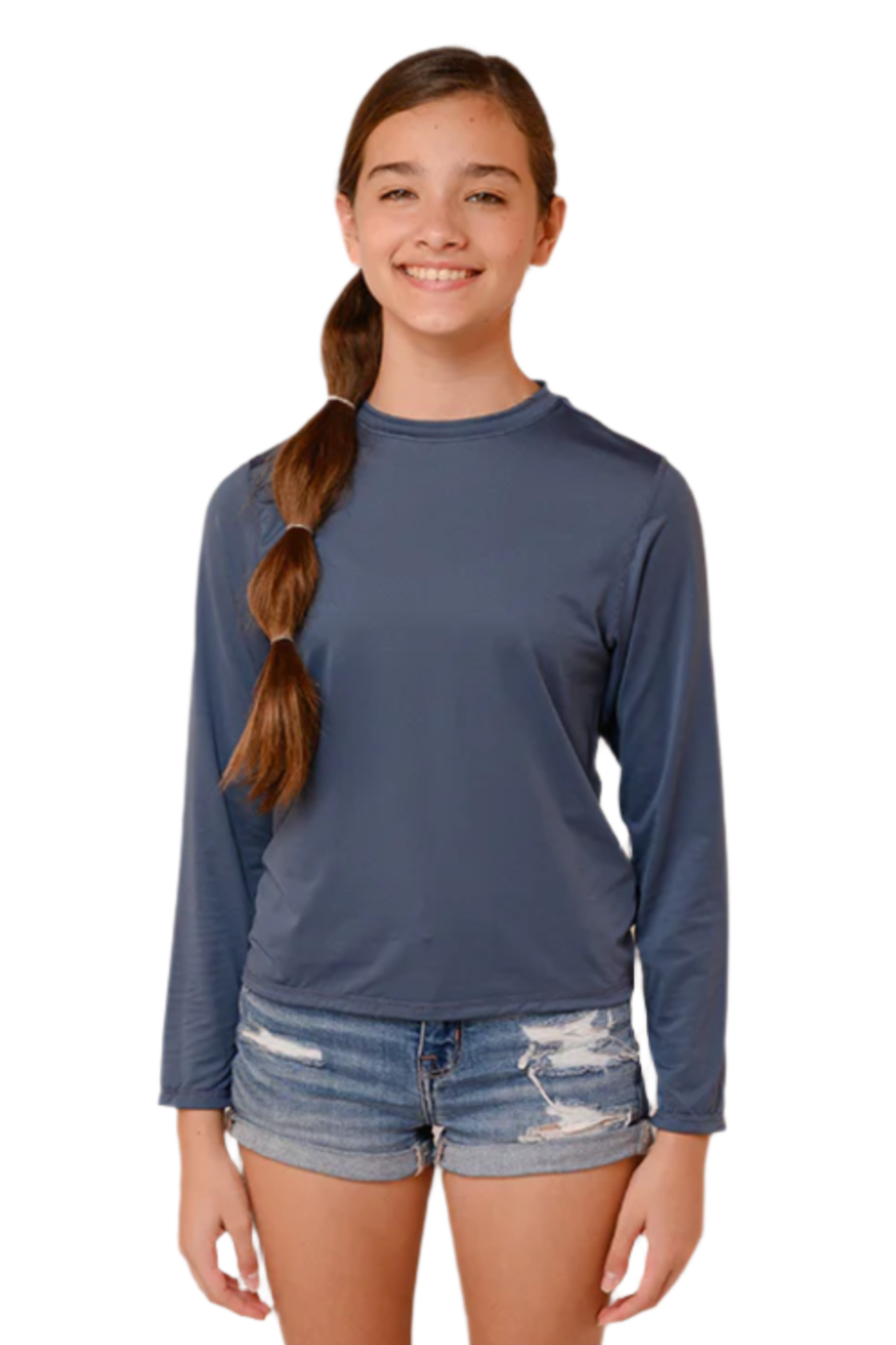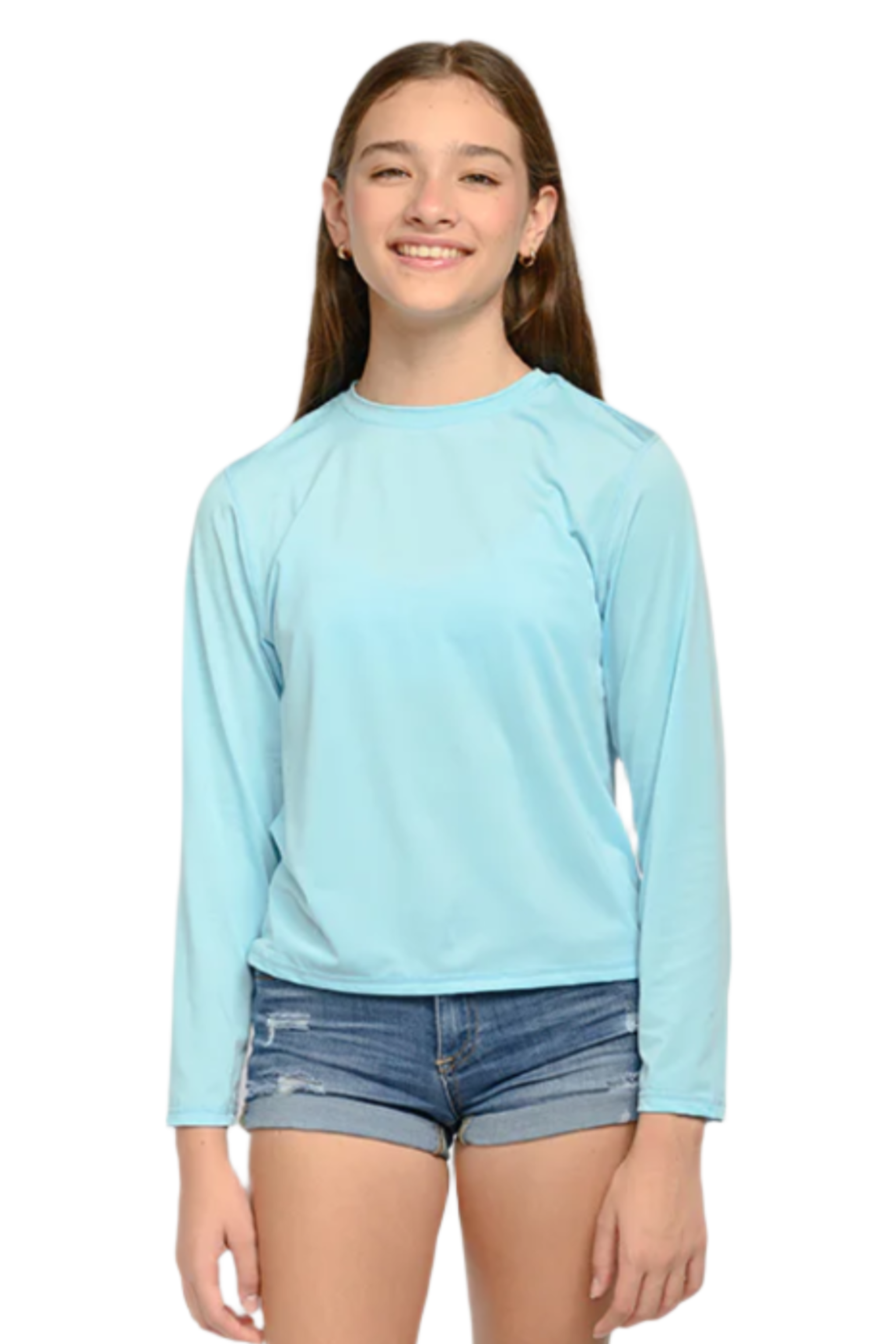 Girls Long Sleeve Solid Colour Crewneck, Loose Fit Sun Shirt