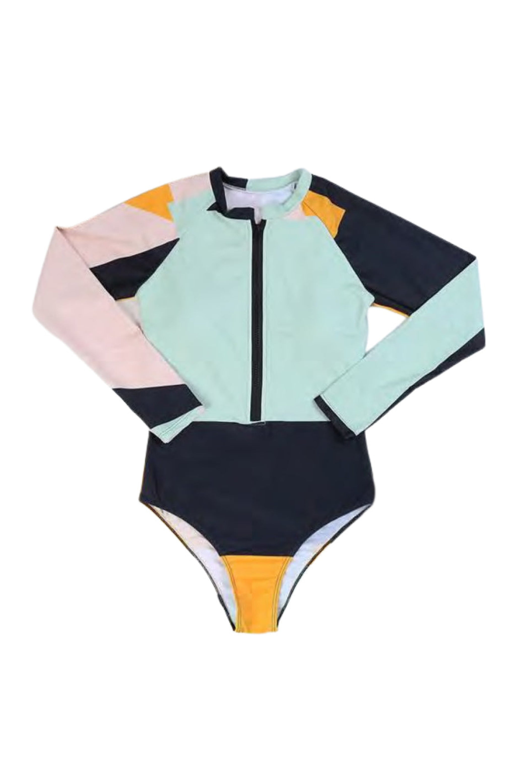 Maillot de bain une pièce à manches longues et blocs de couleurs