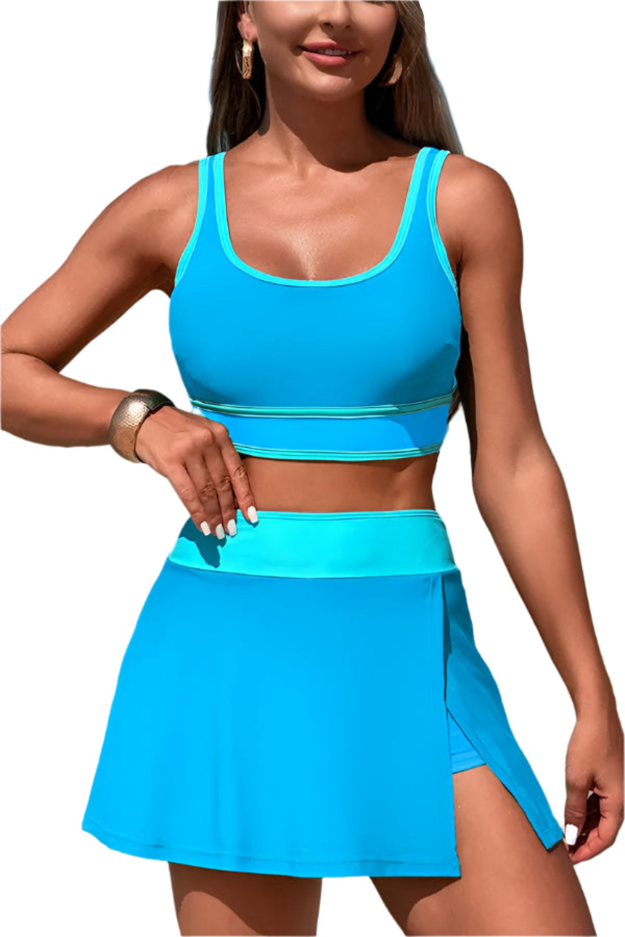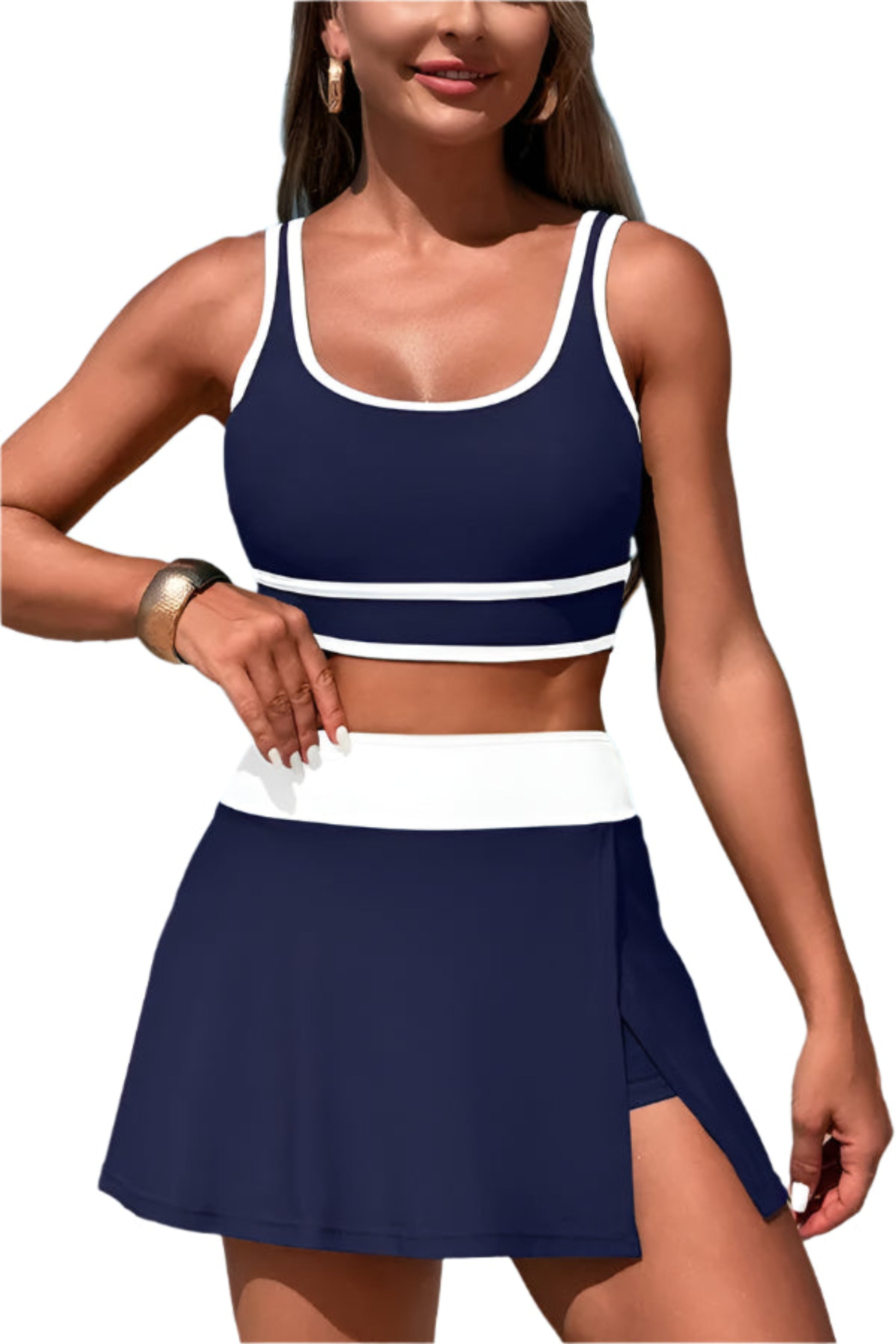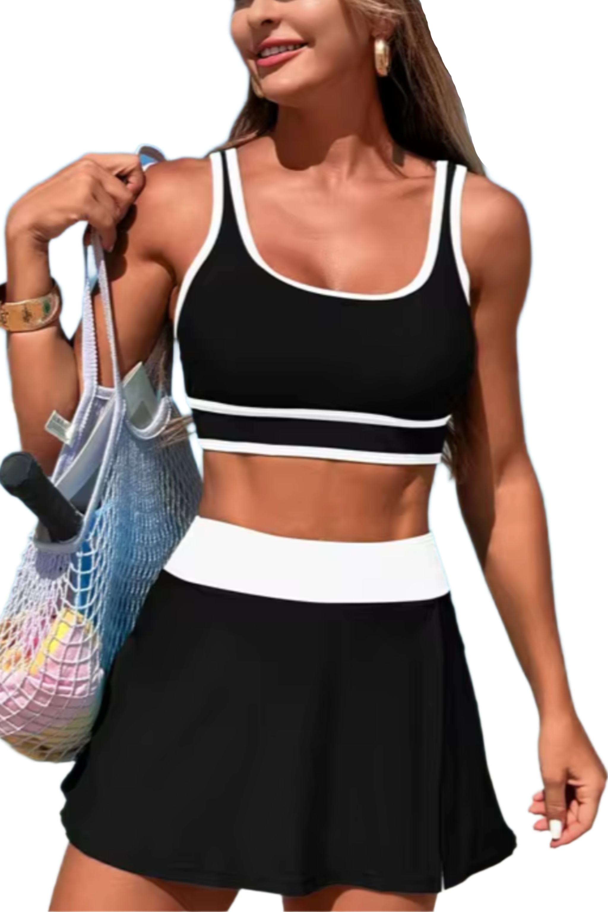 Contrast Trim Two Piece Bikini Swimsuit Skort