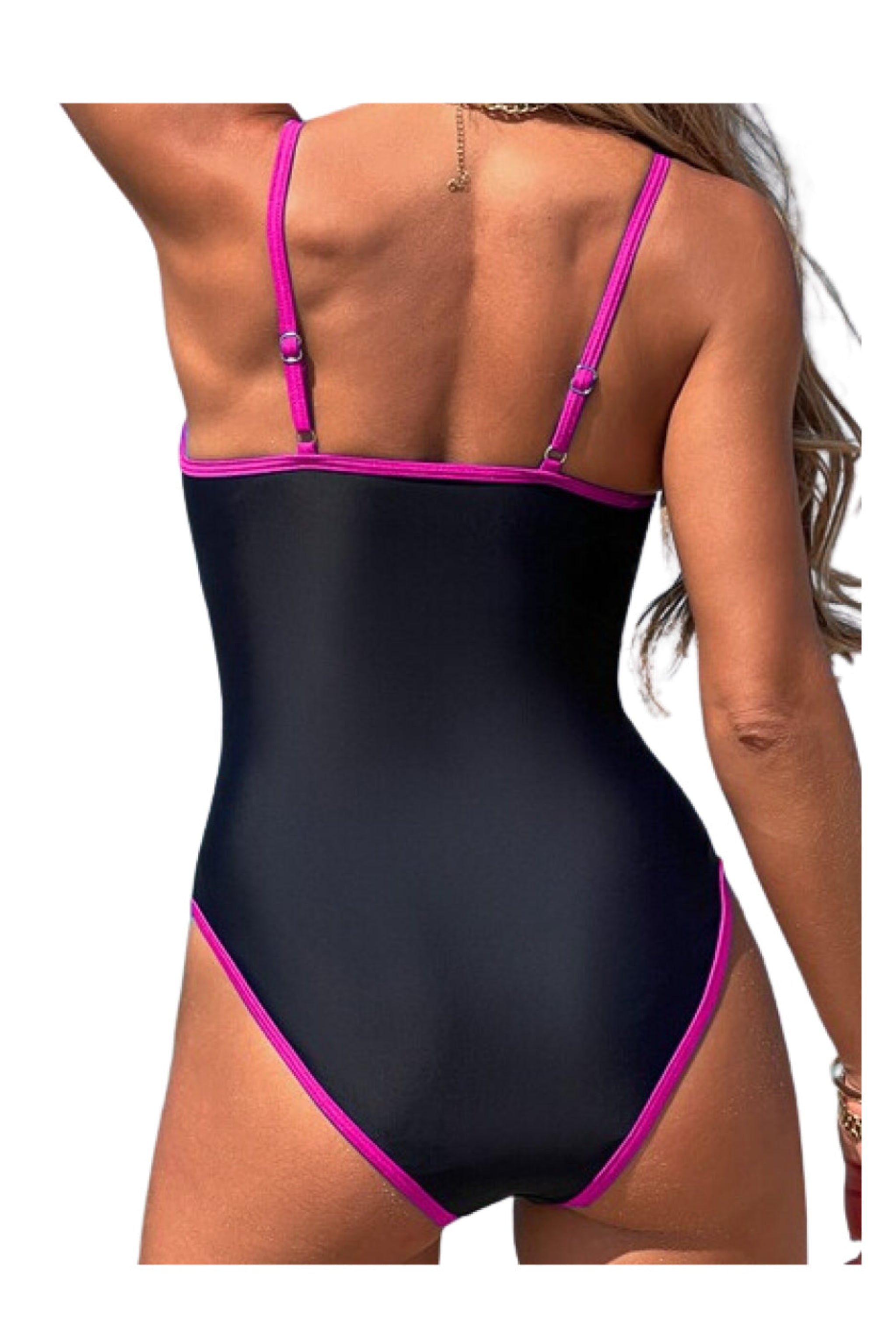 Maillot de bain une pièce bicolore avec ceinture amovible