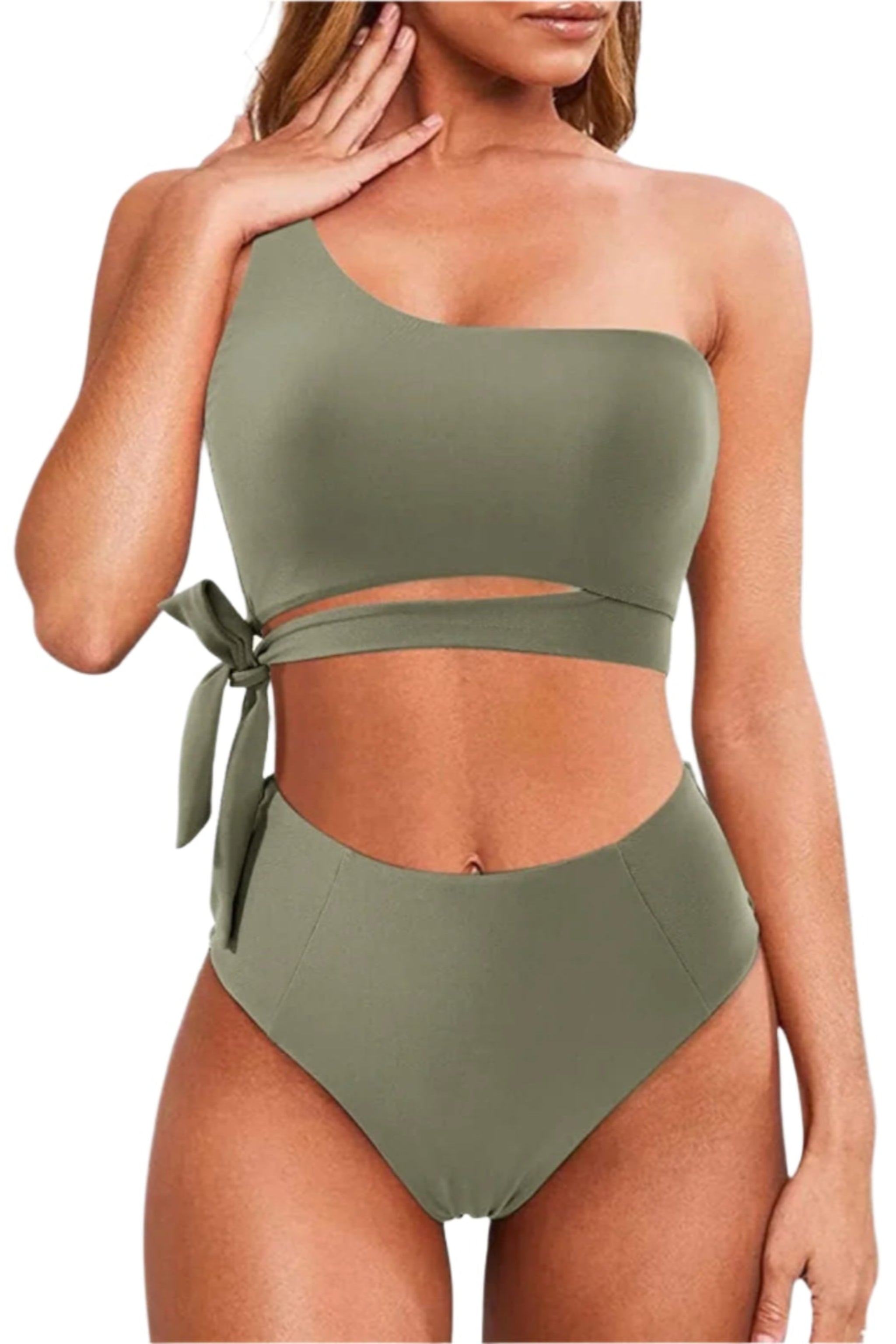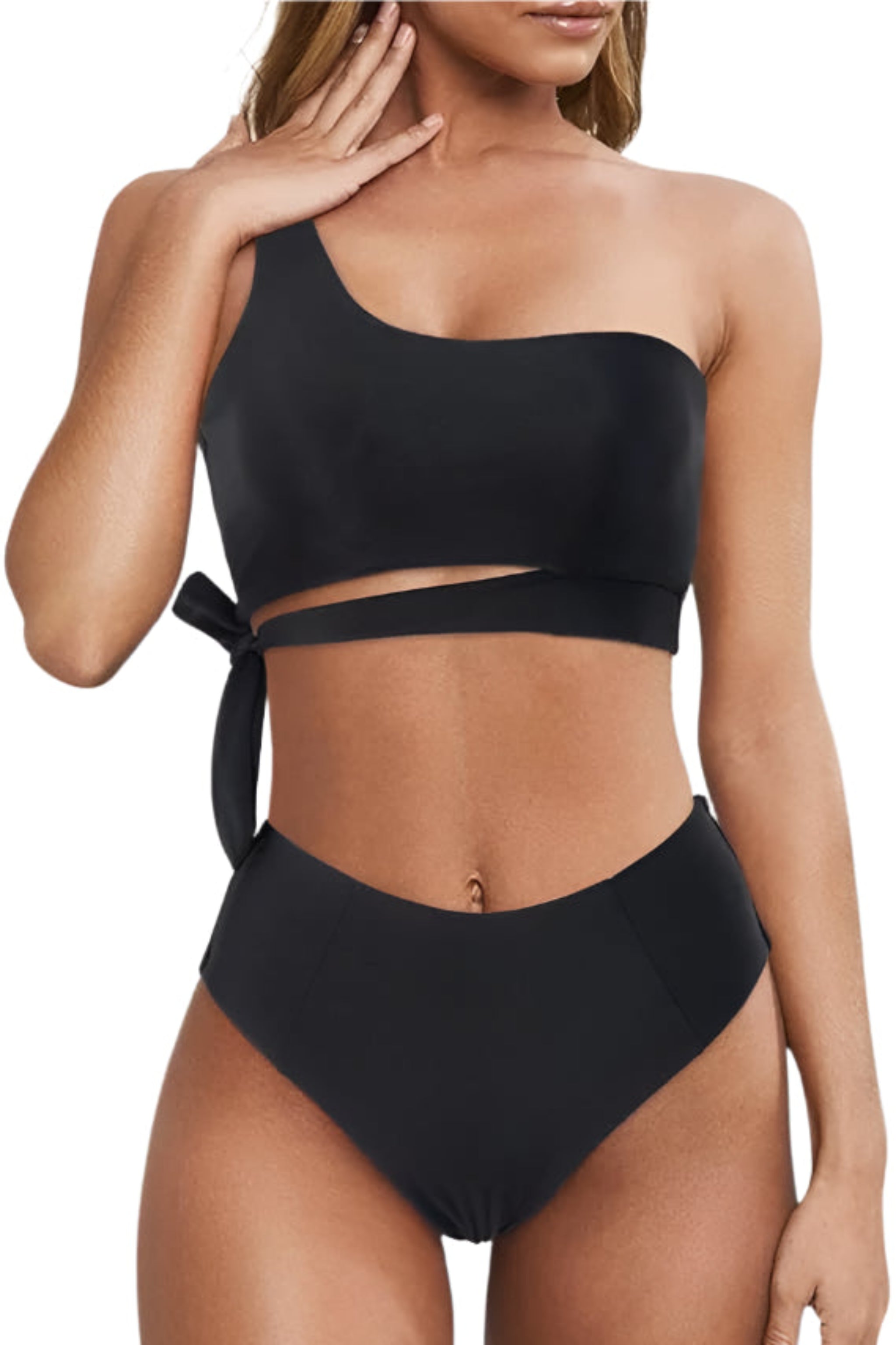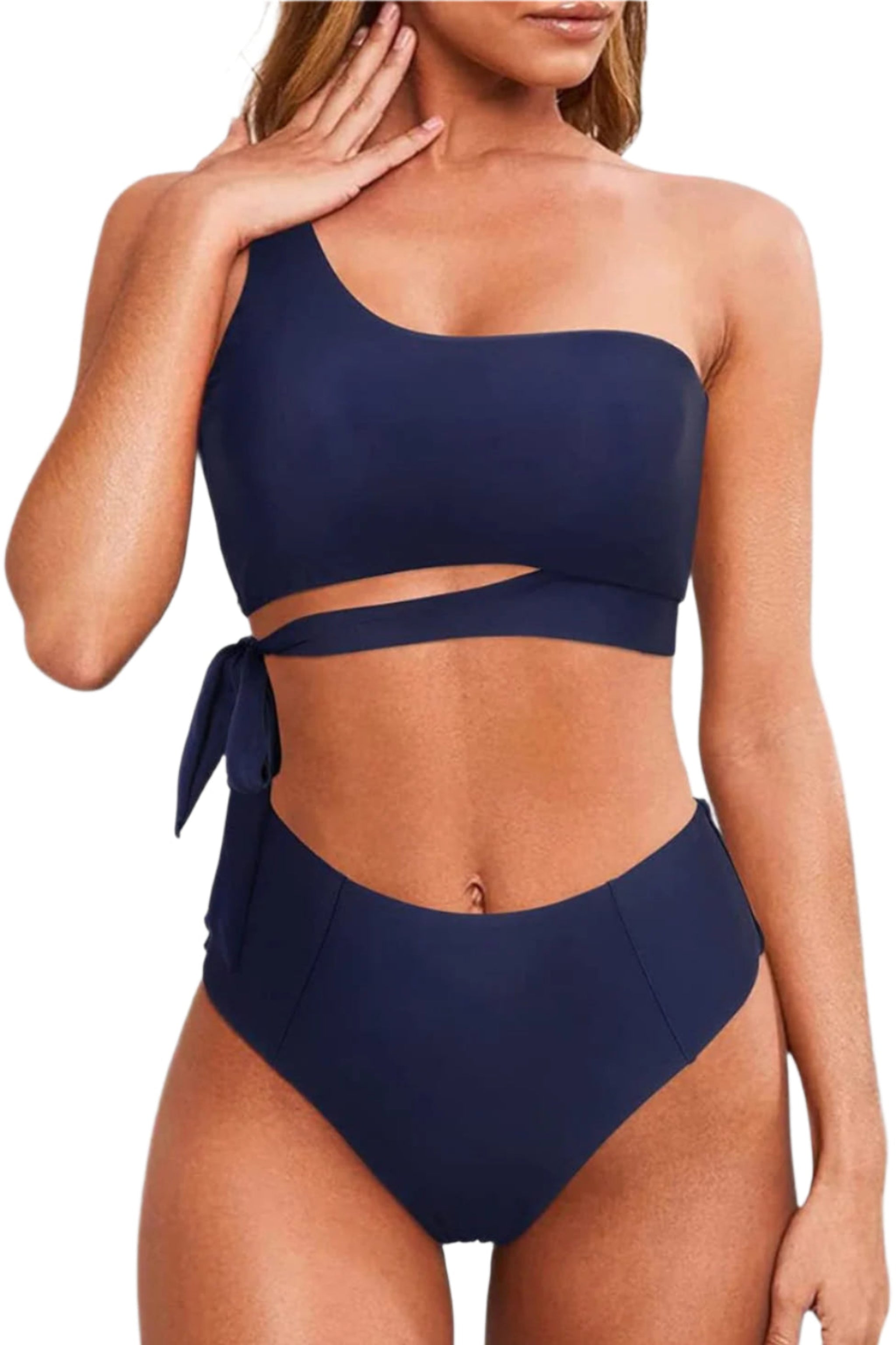 Maillot de bain deux pièces à une épaule et ceinture nouée