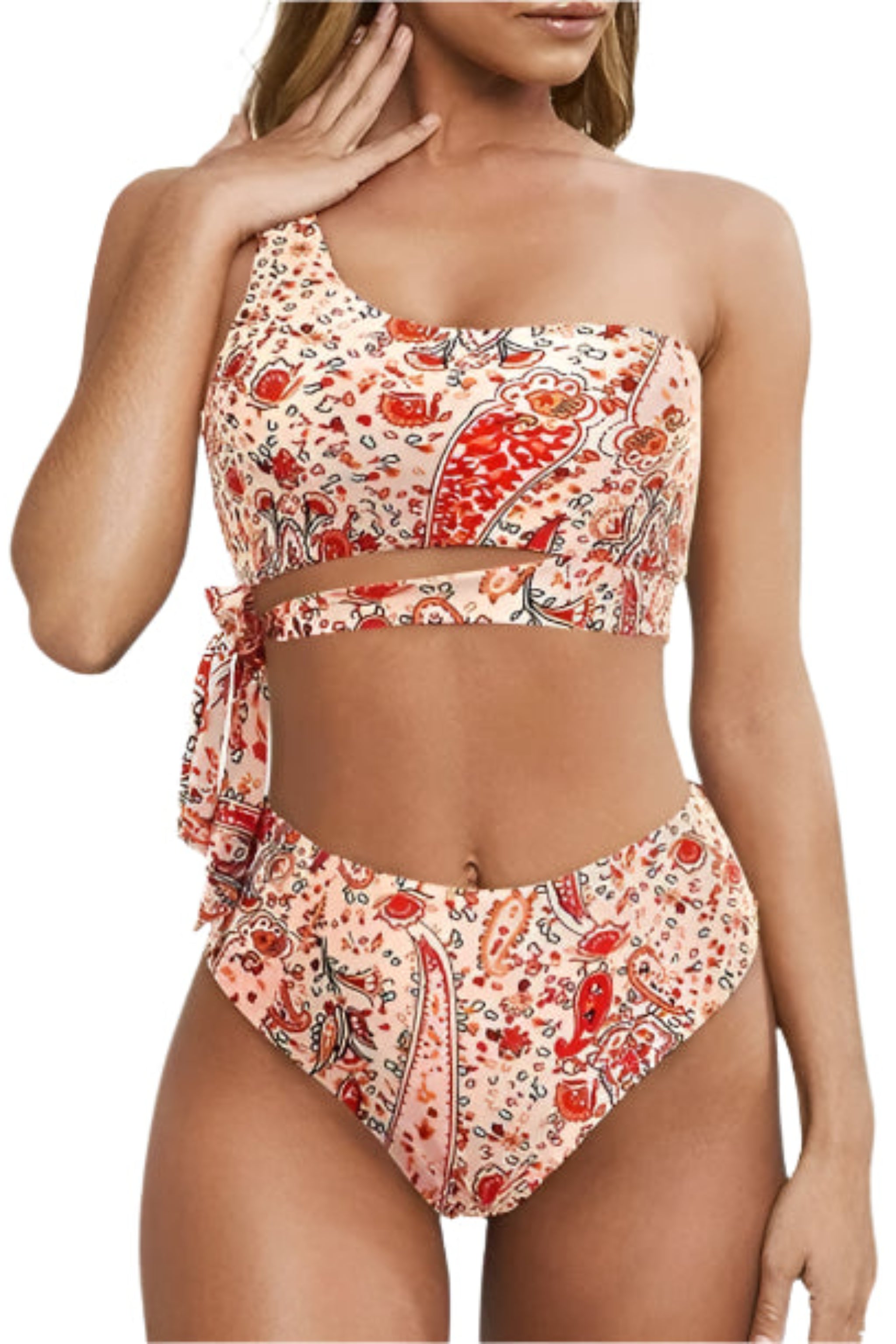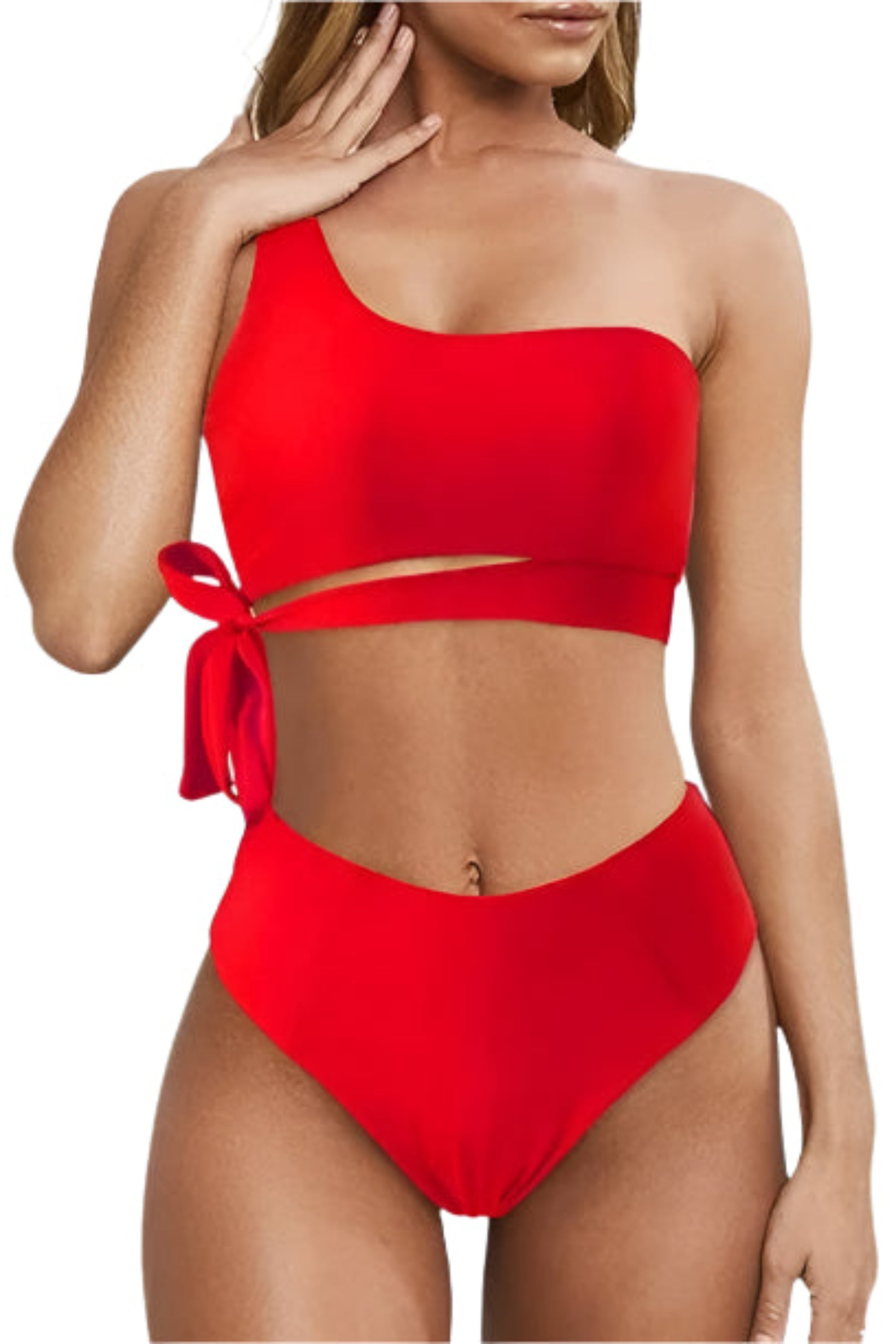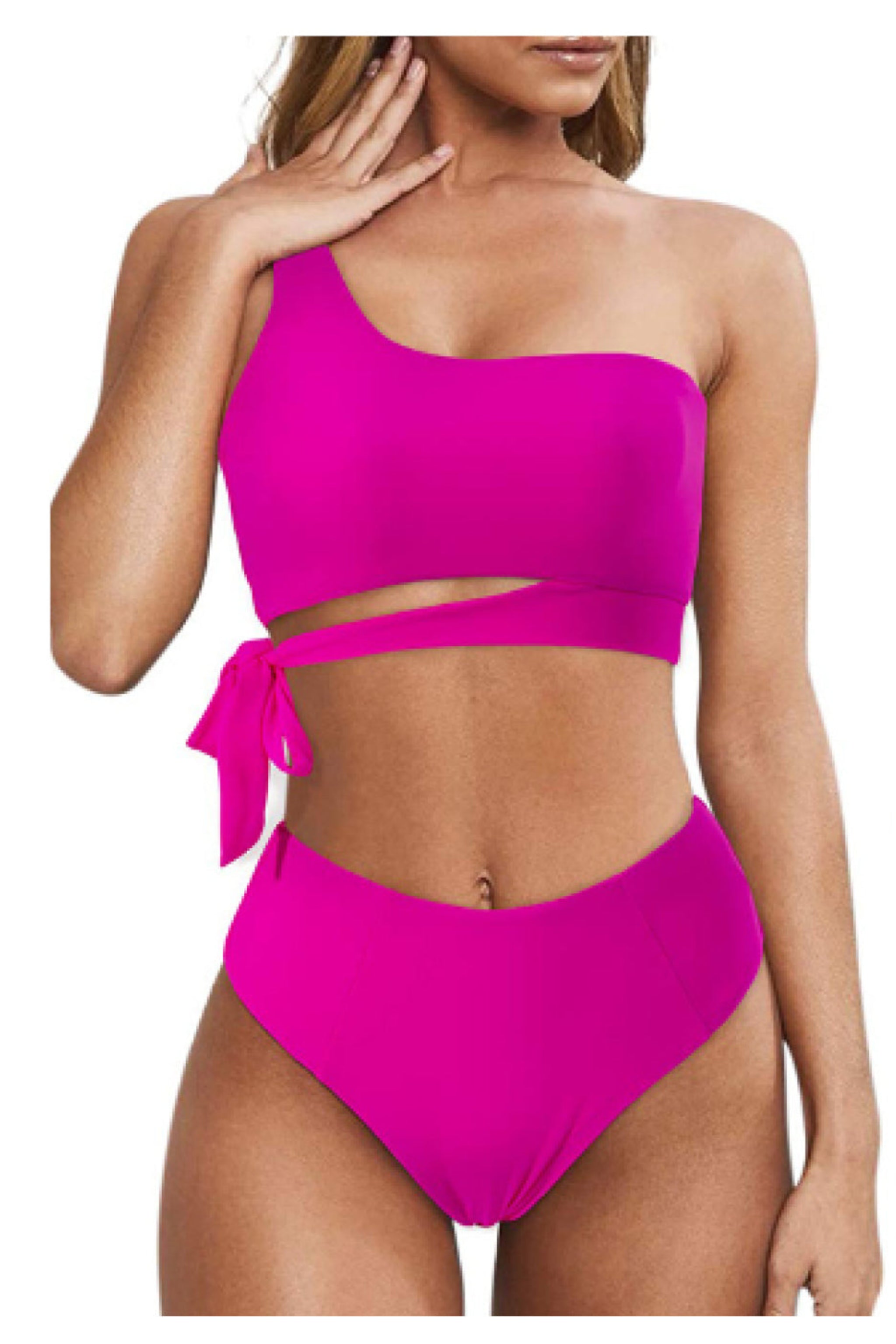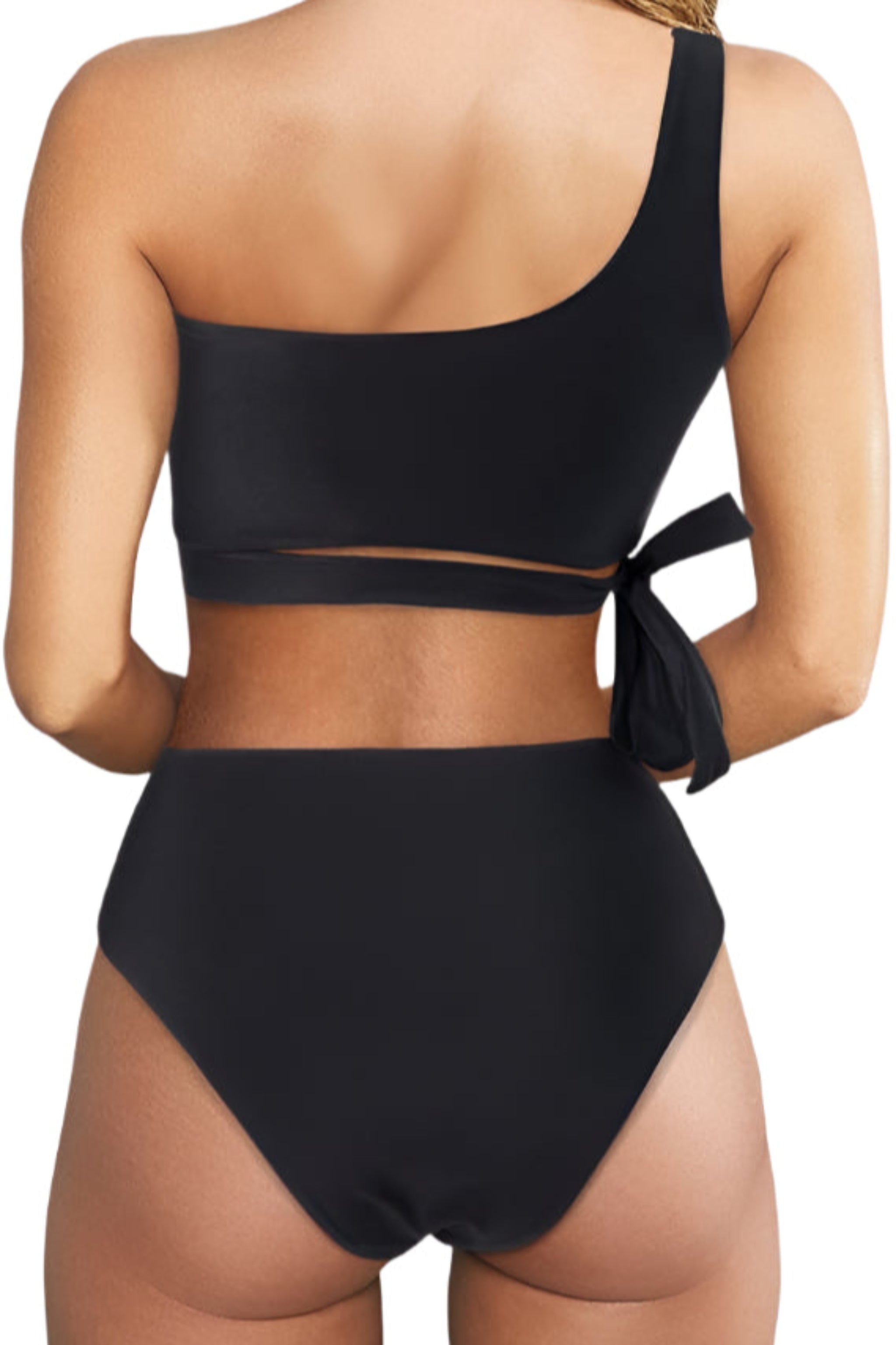 Maillot de bain deux pièces à une épaule et ceinture nouée