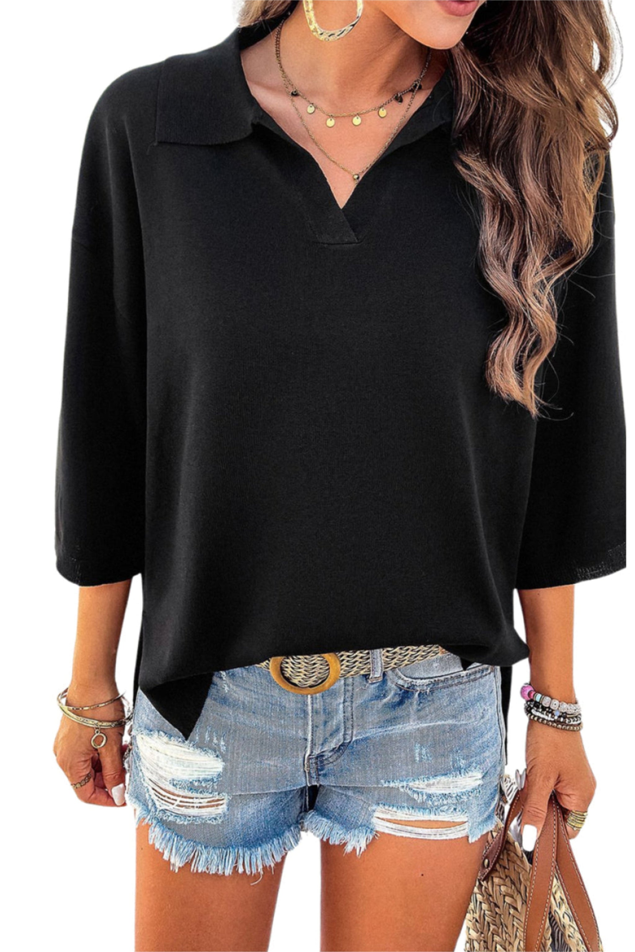 Wide Lapel V-Neck 3/4 Sleeve Top