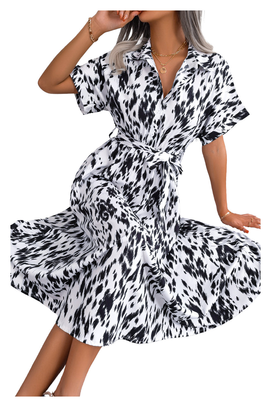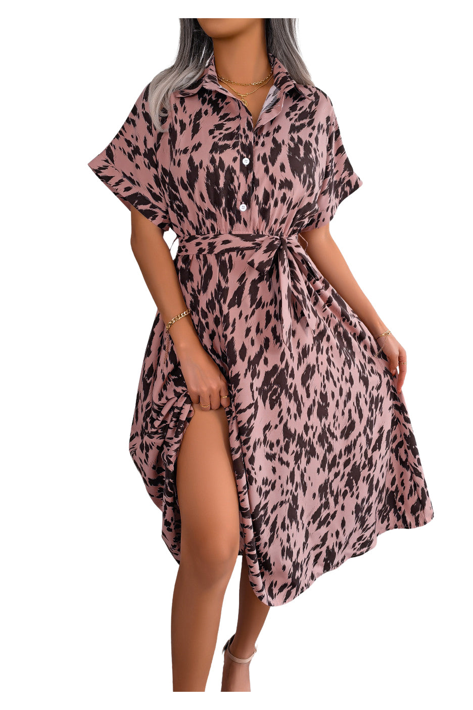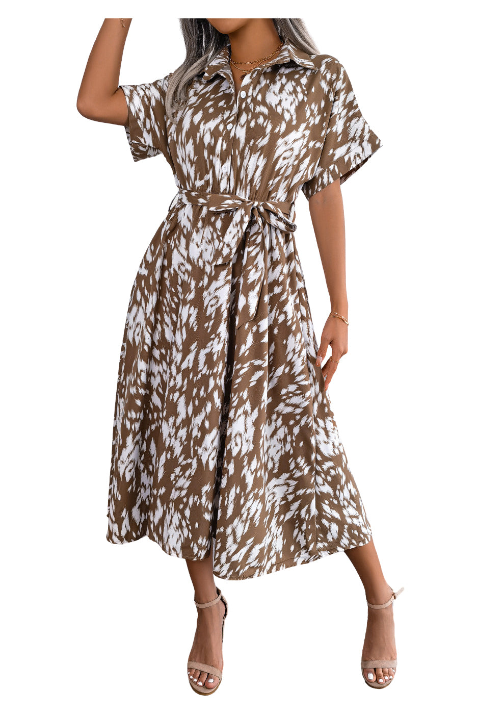 Robe chemise longue imprimée à taille nouée
