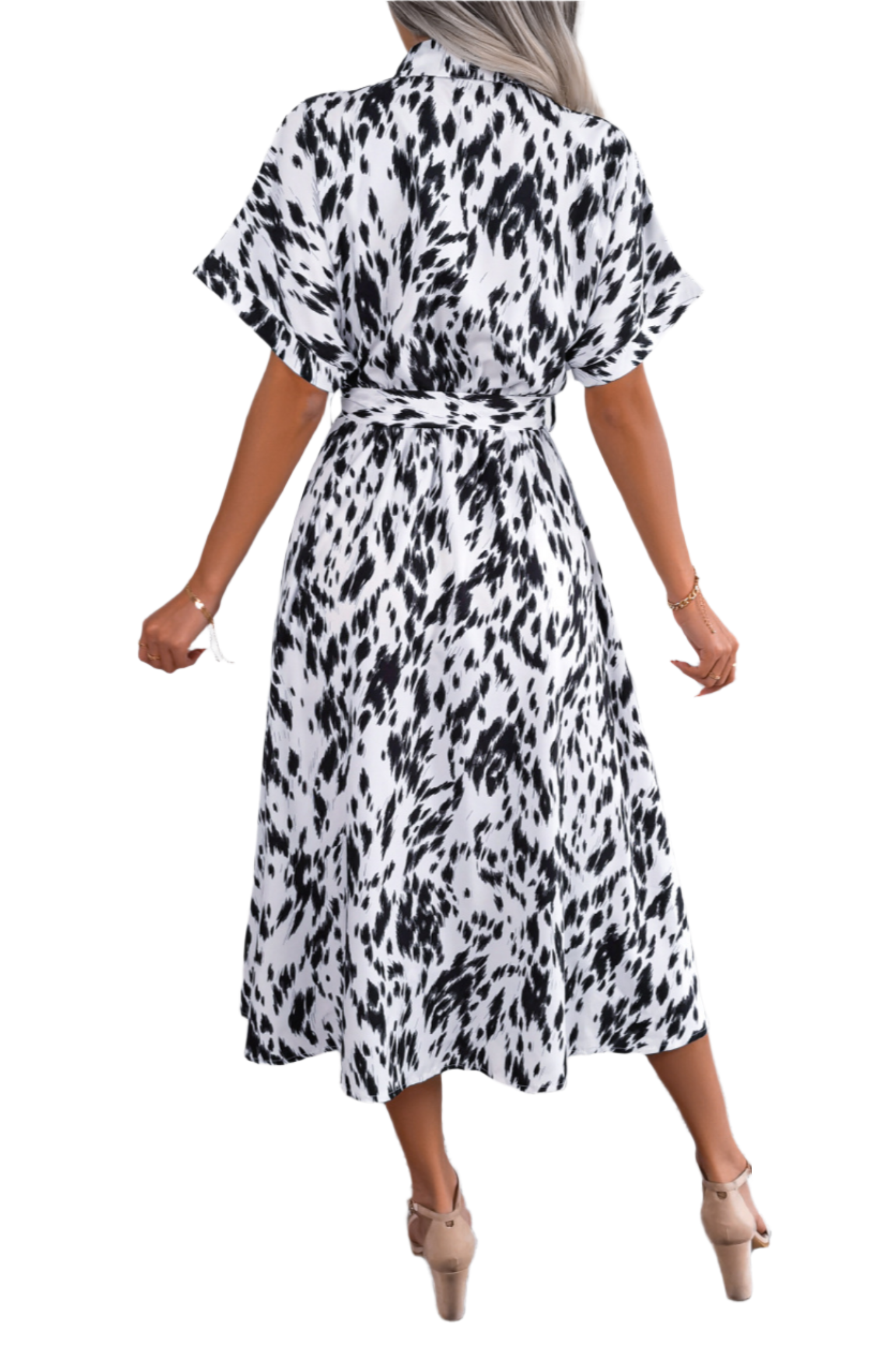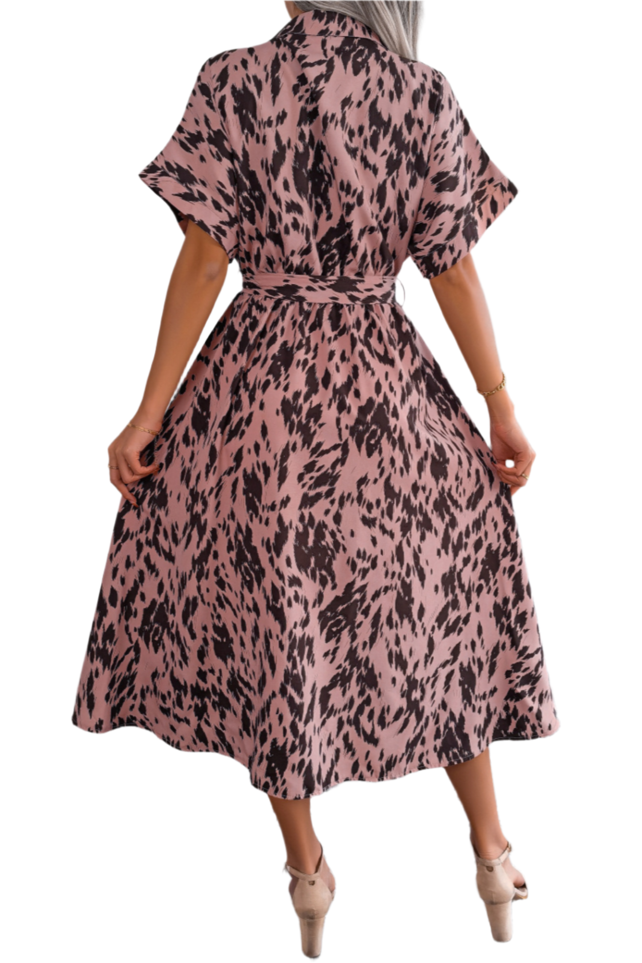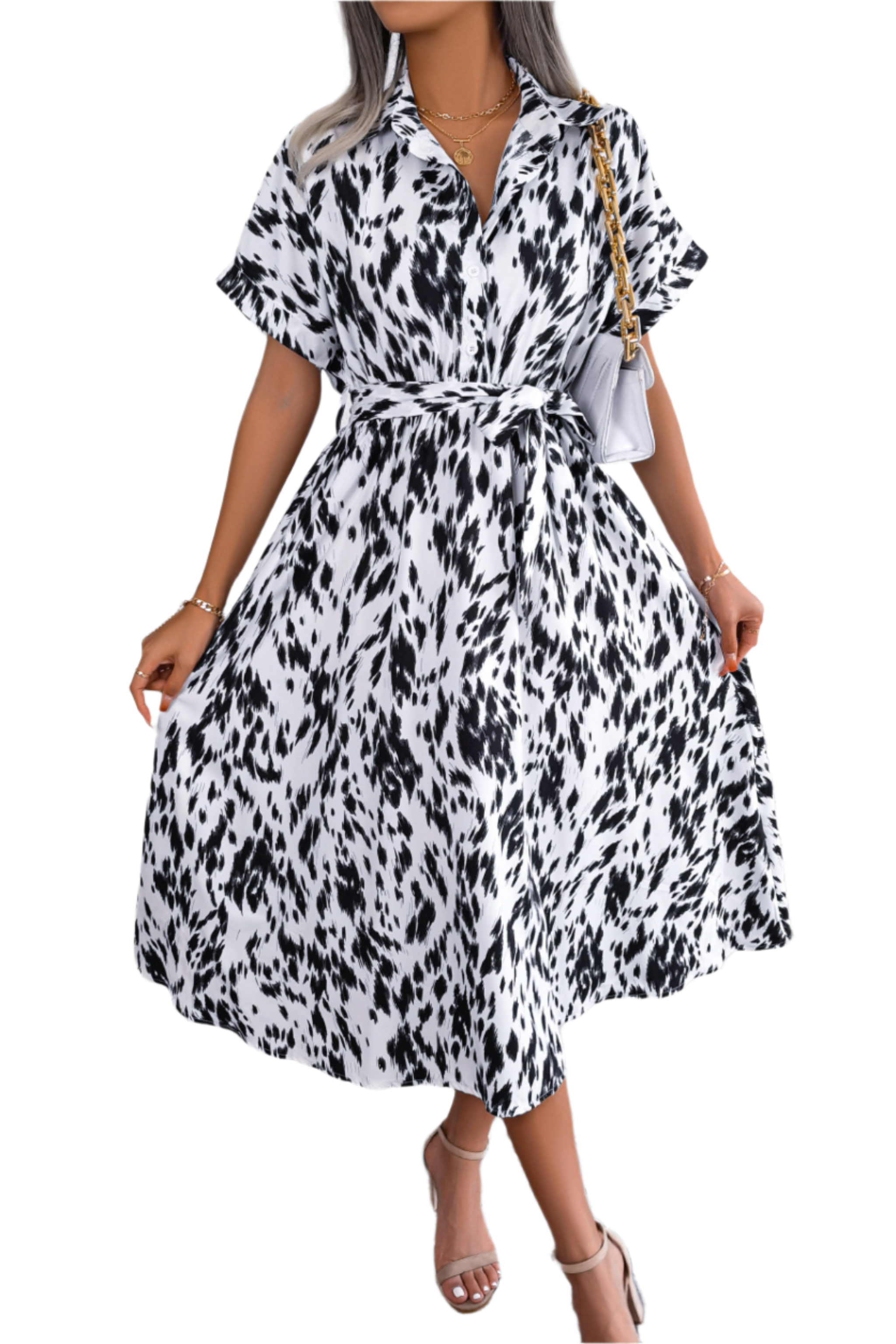 Robe chemise longue imprimée à taille nouée
