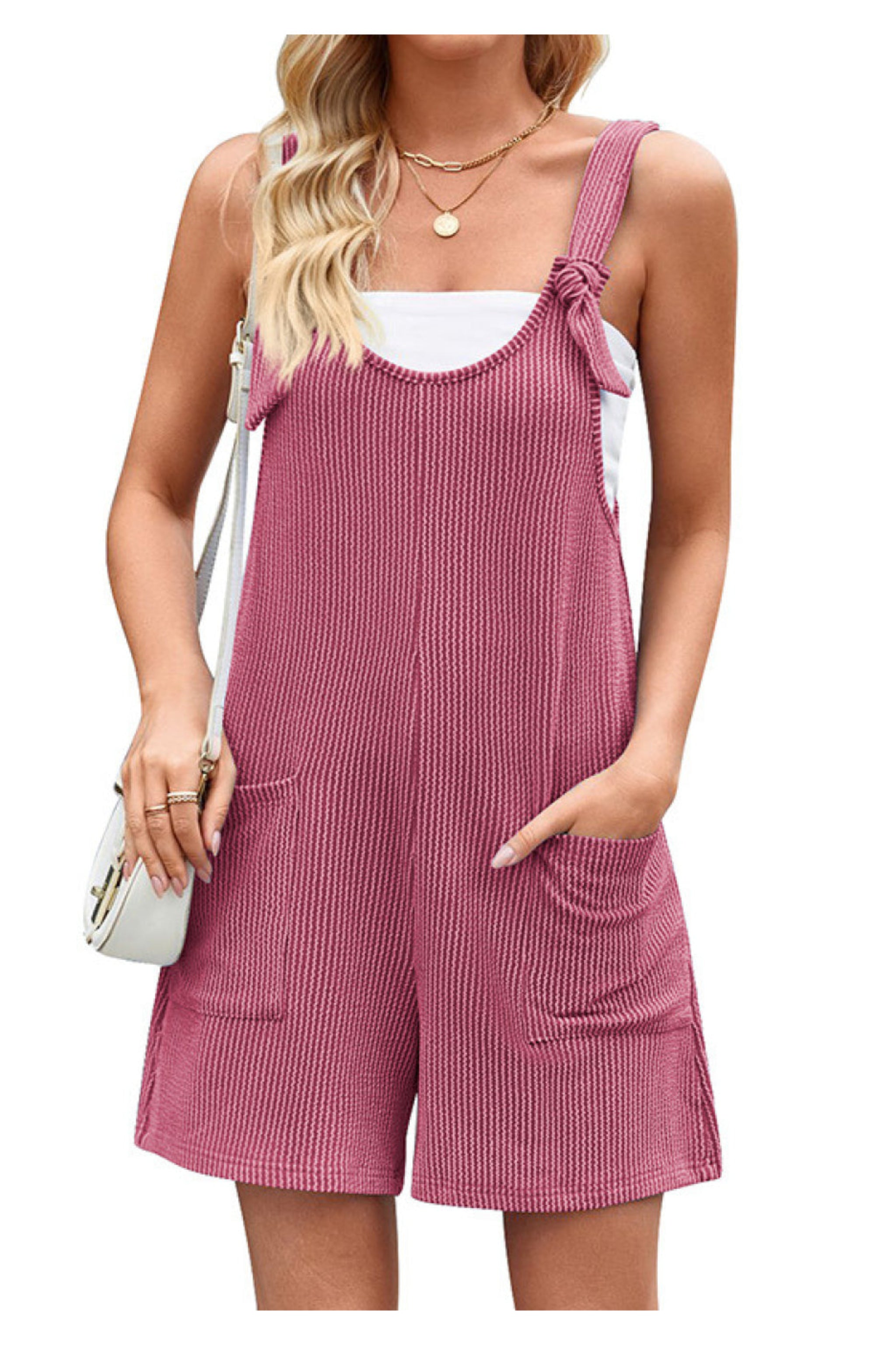 Combinaison à bretelles côtelées et élastique avec poches avant