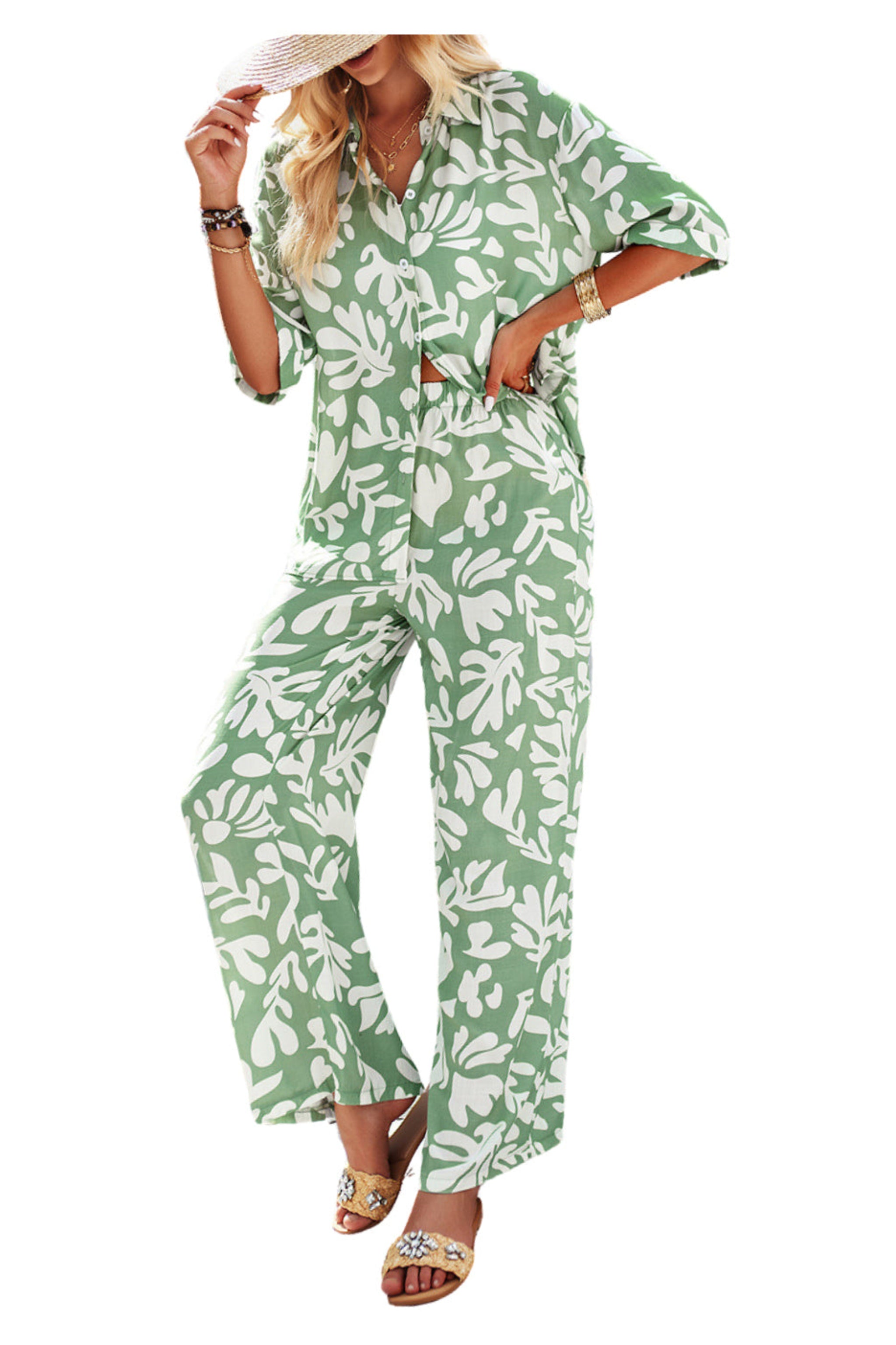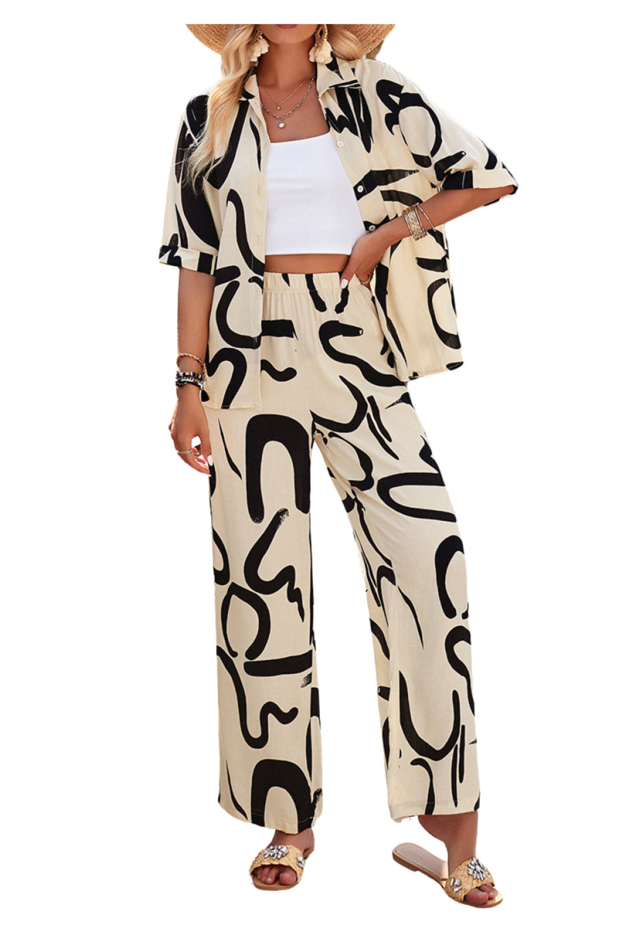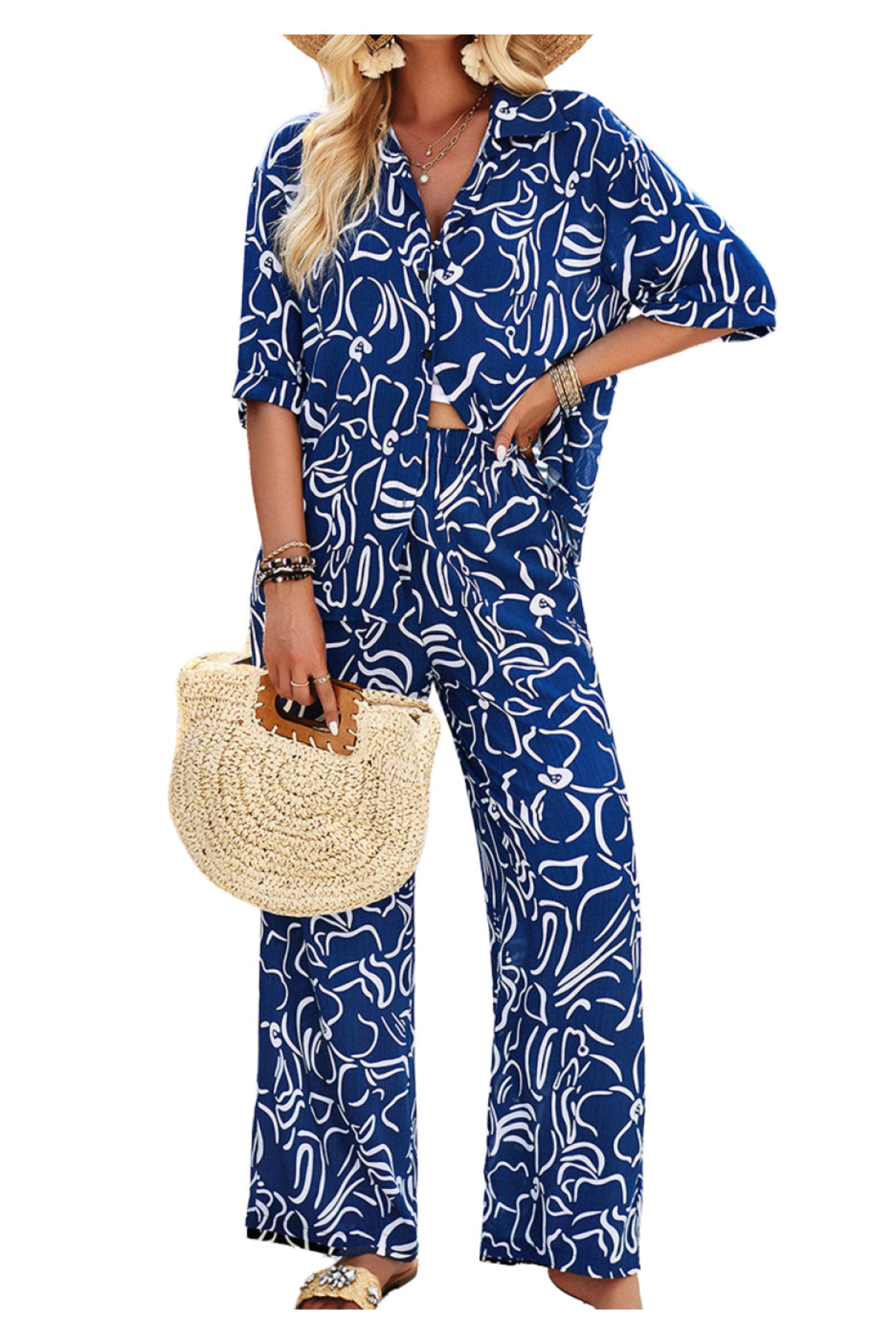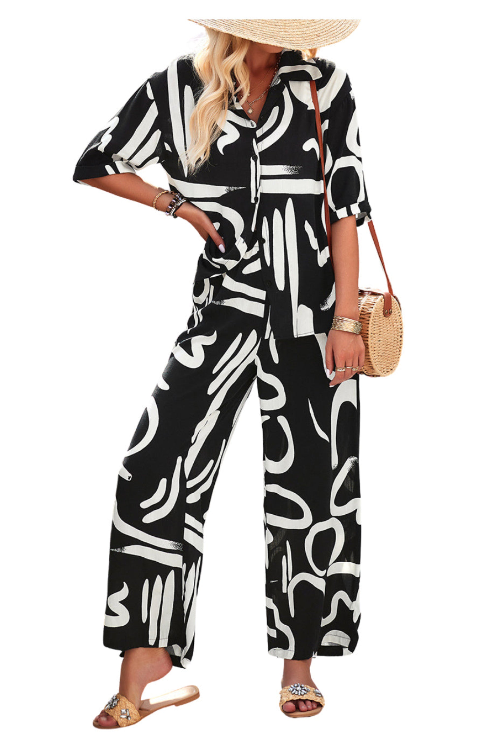 Ensemble haut à manches courtes et pantalon palazzo imprimé boutonné