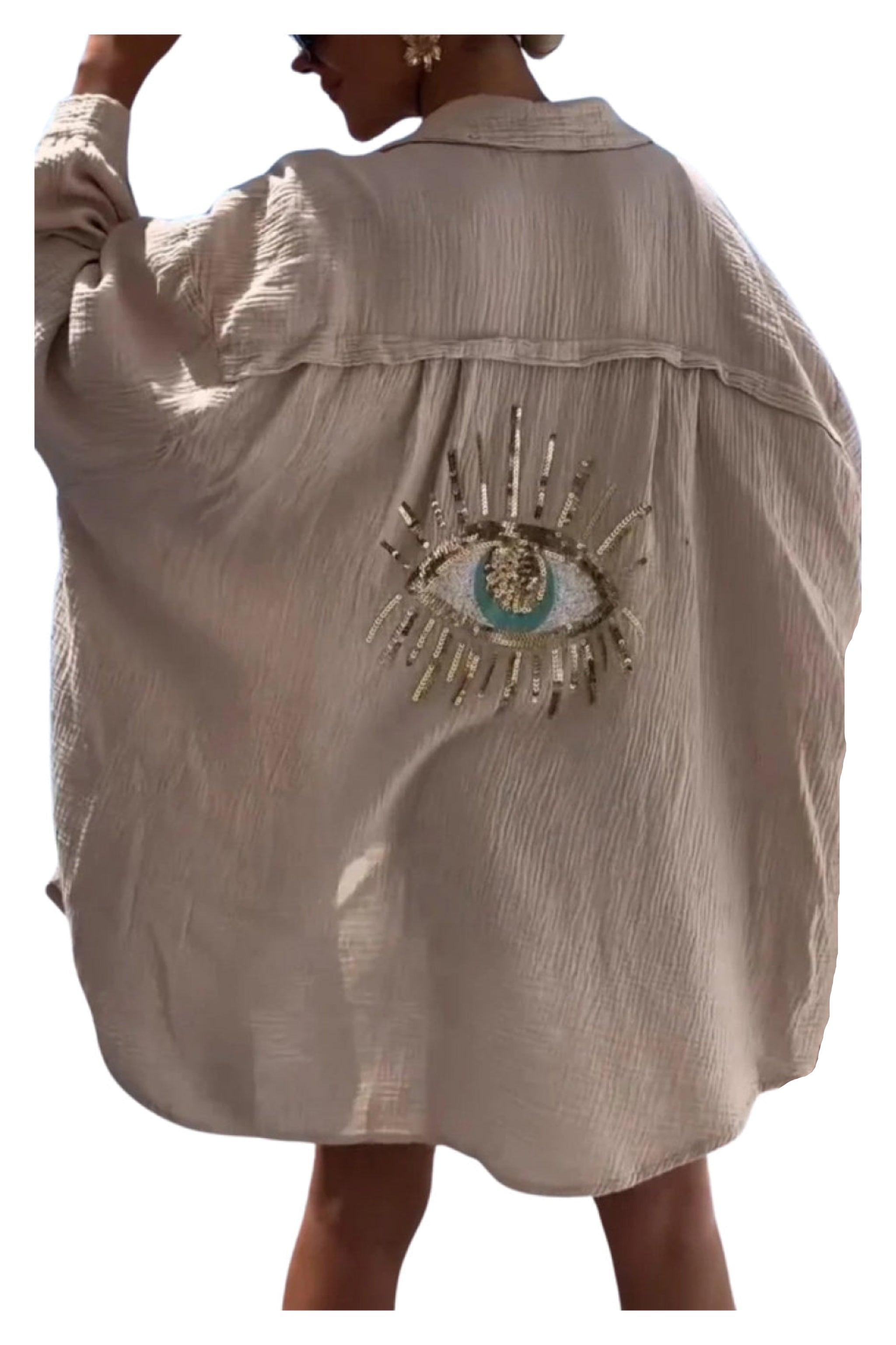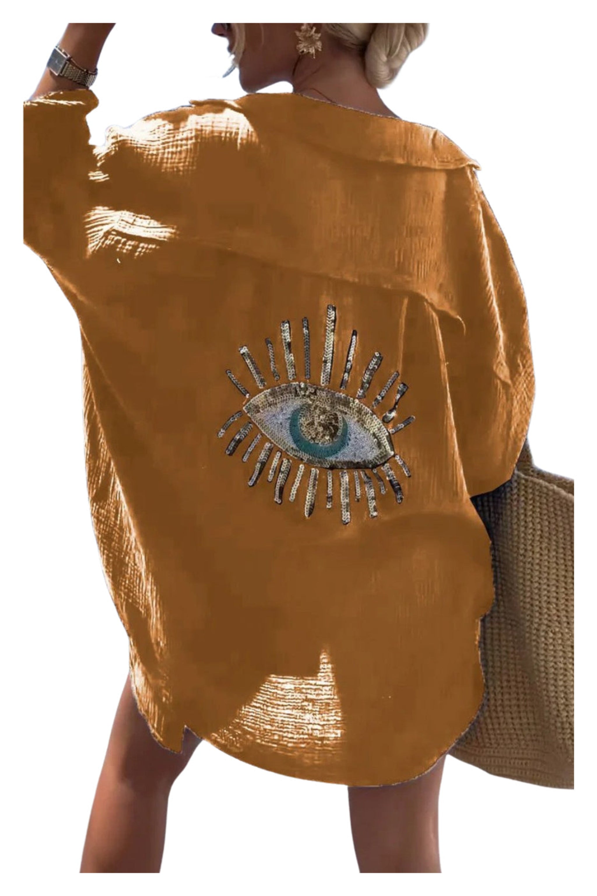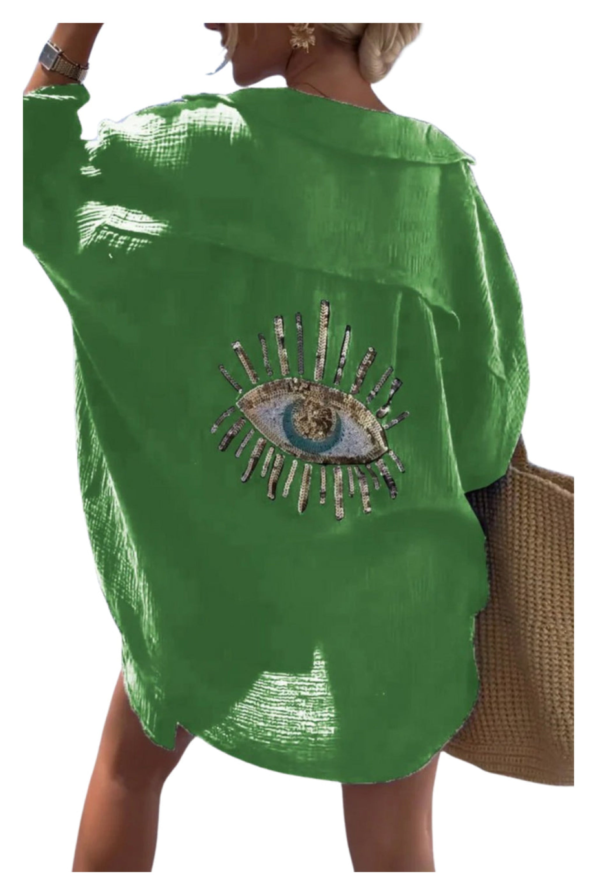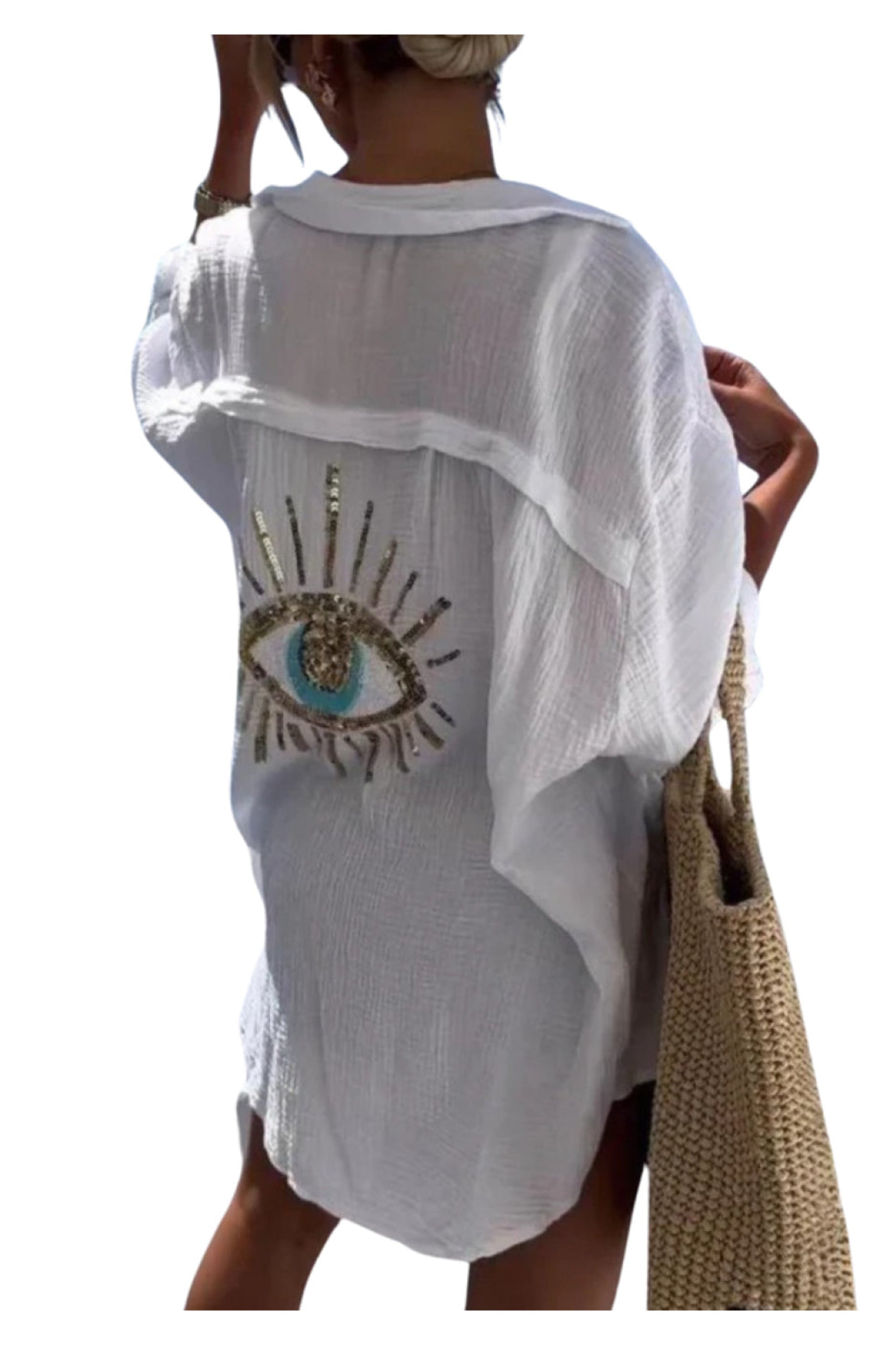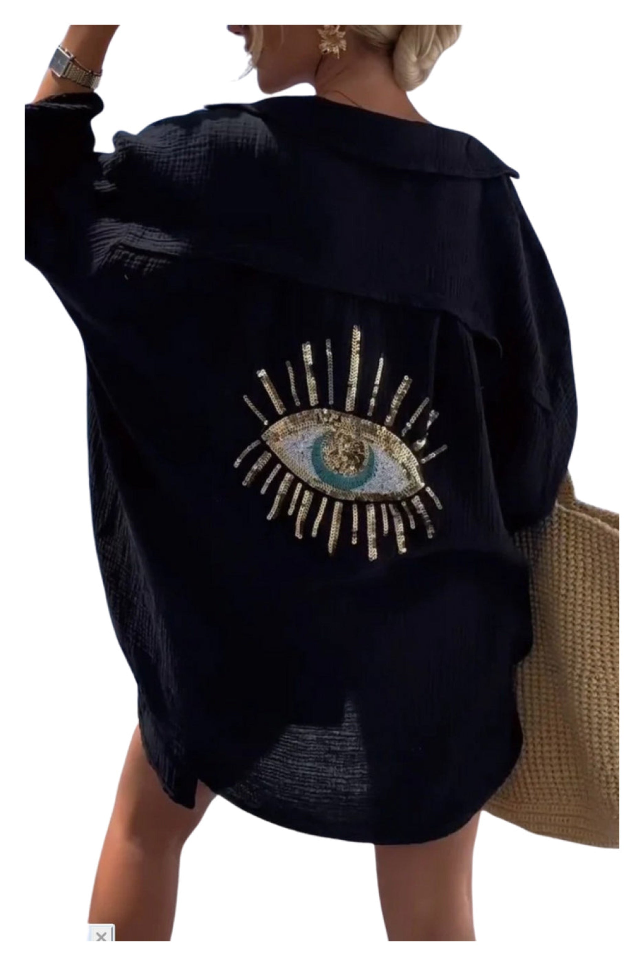 Evil Eye Sequins Detail Back Long Sleeve Cover Up
