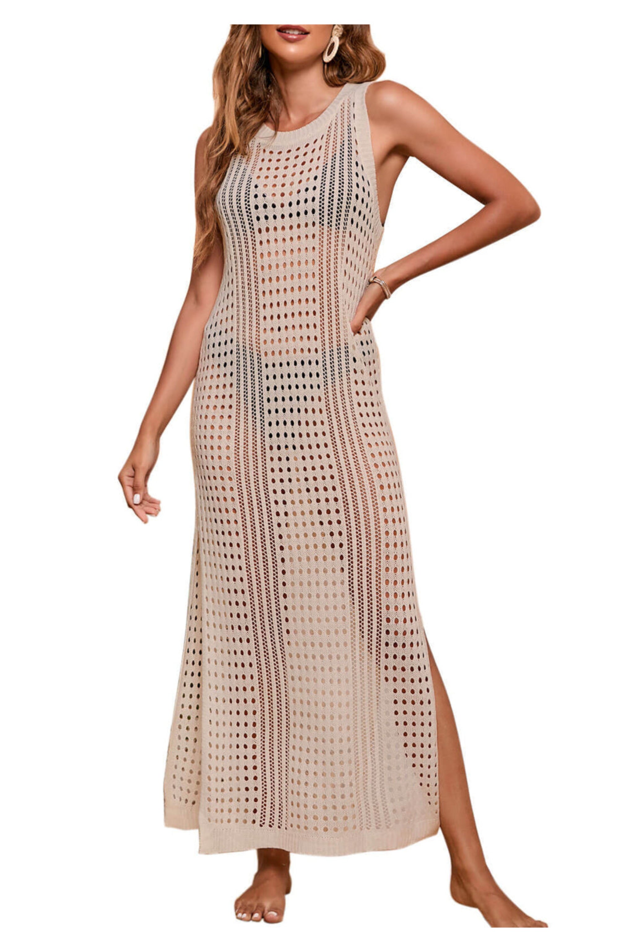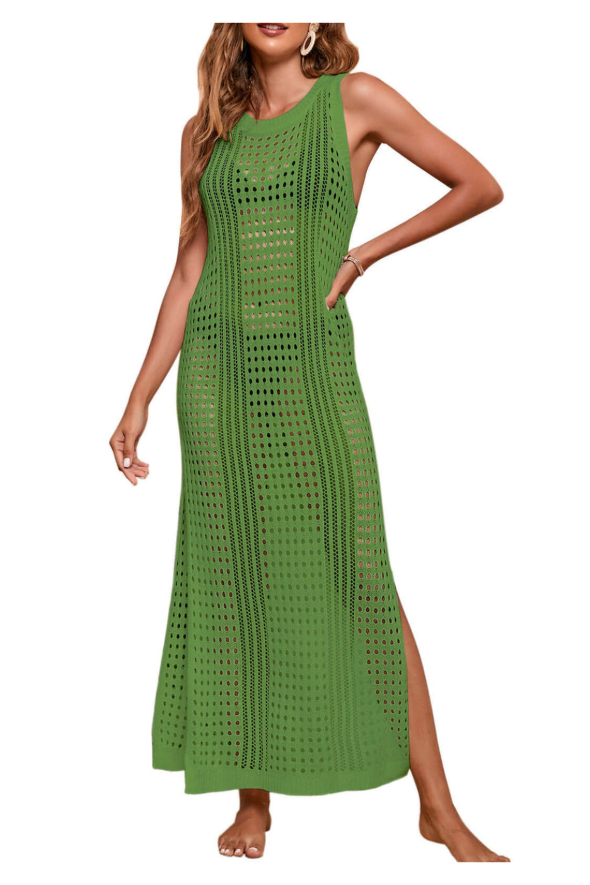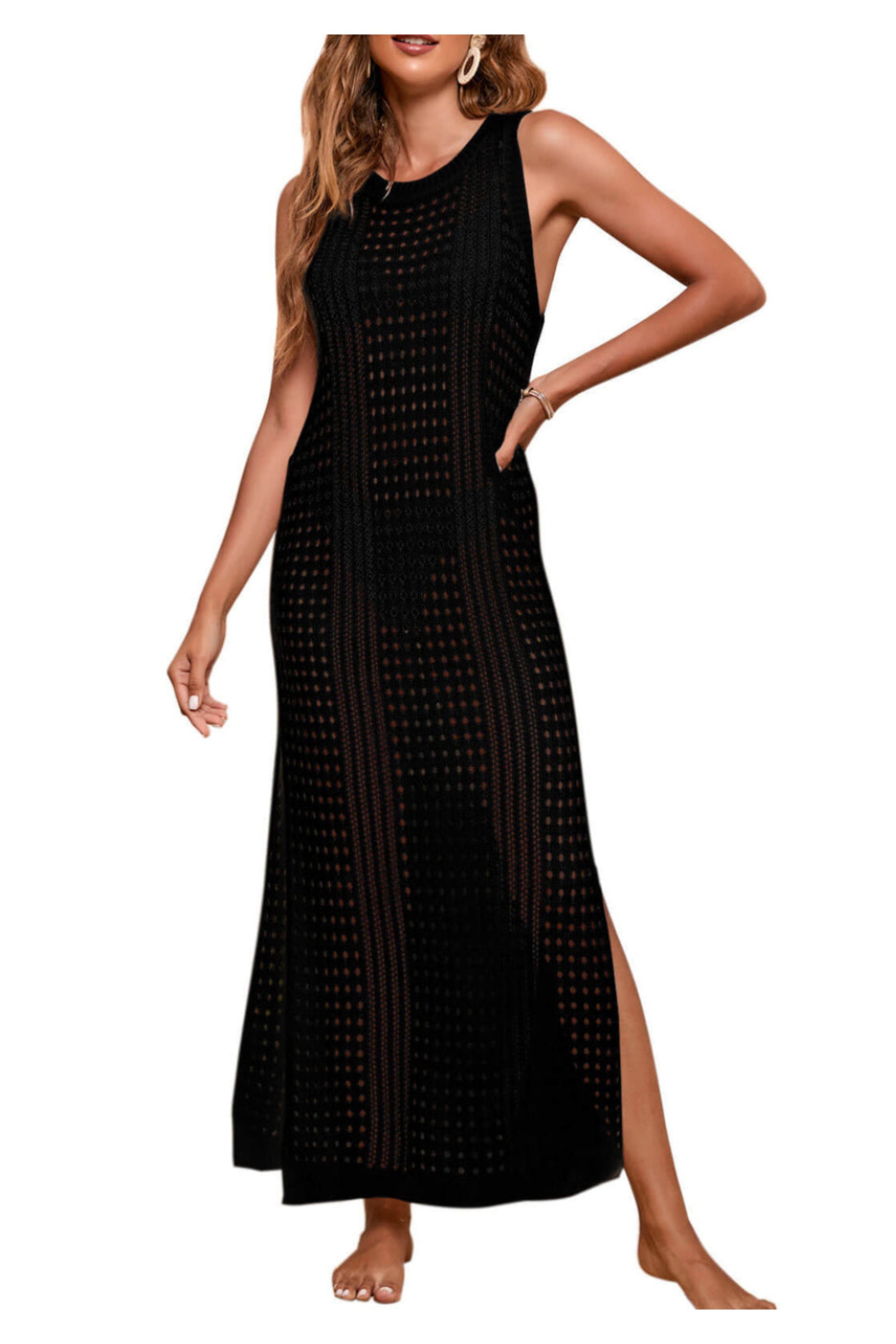 Robe cache-cœur sans manches en maille à détails verticaux