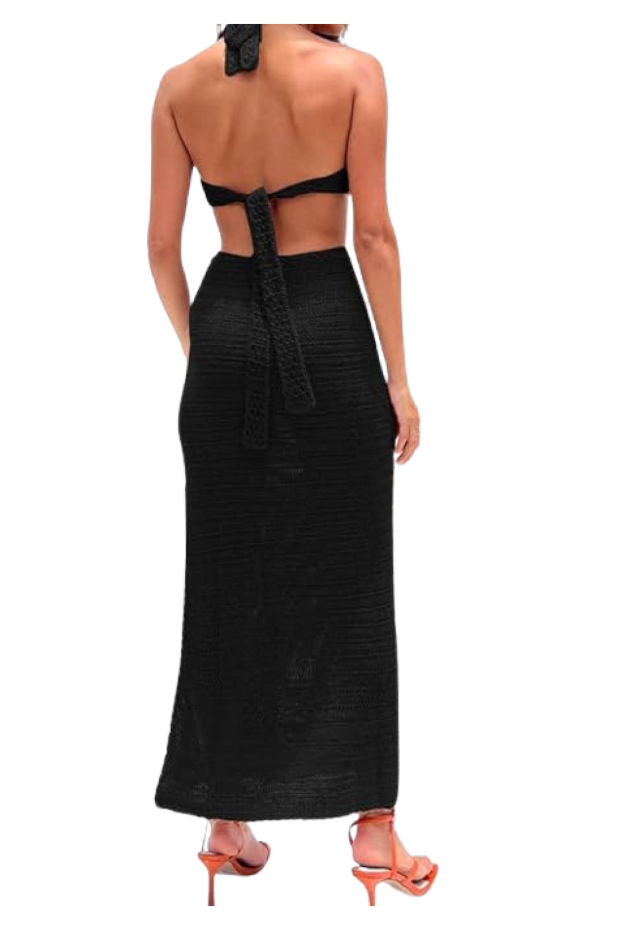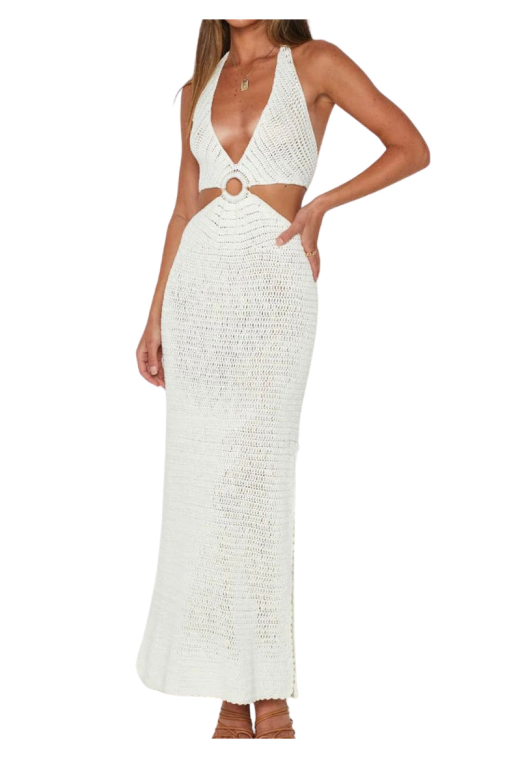 Knit Cutout Tie Back Ring Front Sleeveless Cover Up Dress