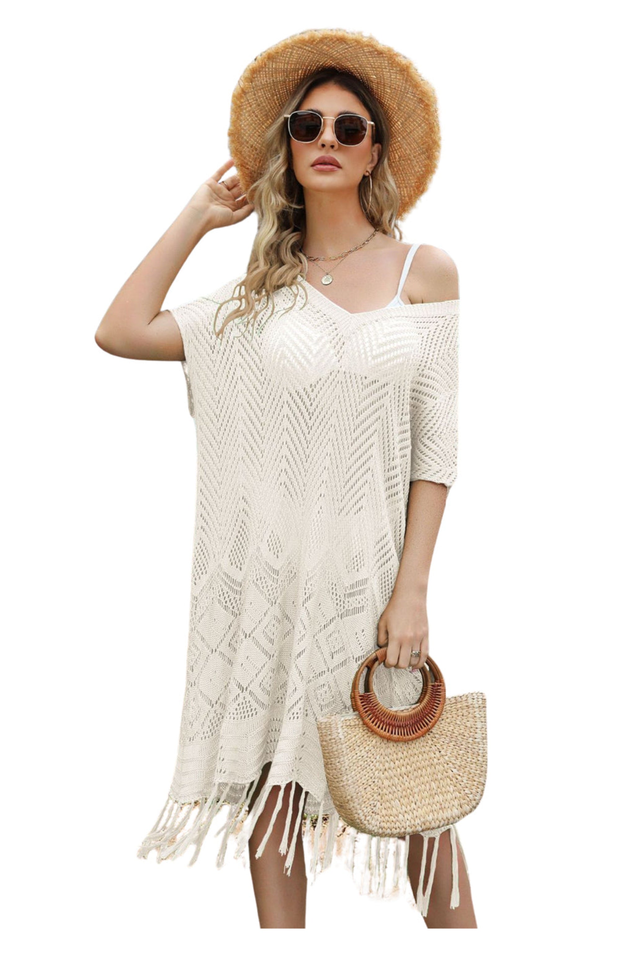 Tunique cache-cœur à manches courtes et col en V avec franges en tricot