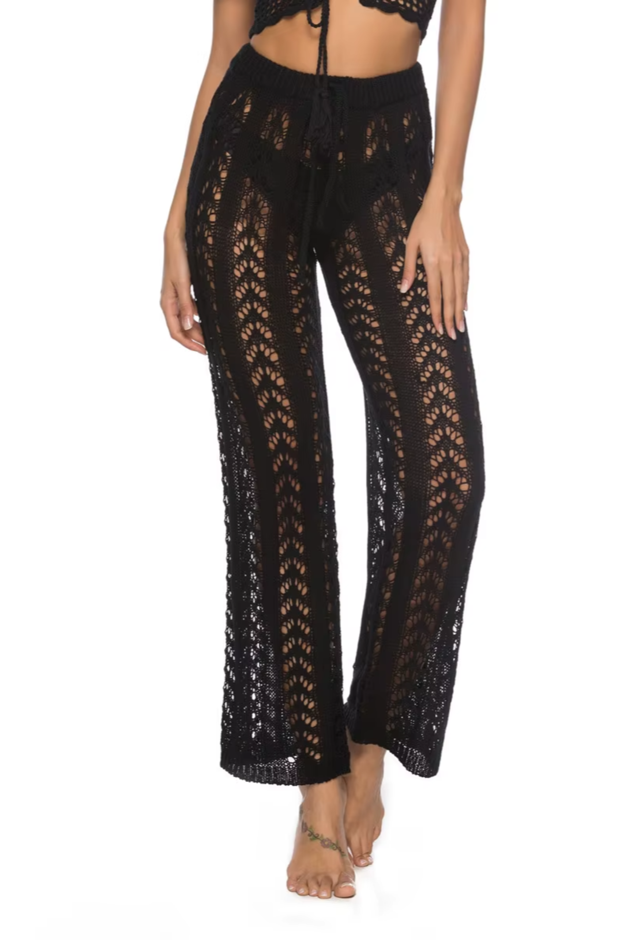 Pantalon cache-cœur en tricot crocheté avec cordon de serrage