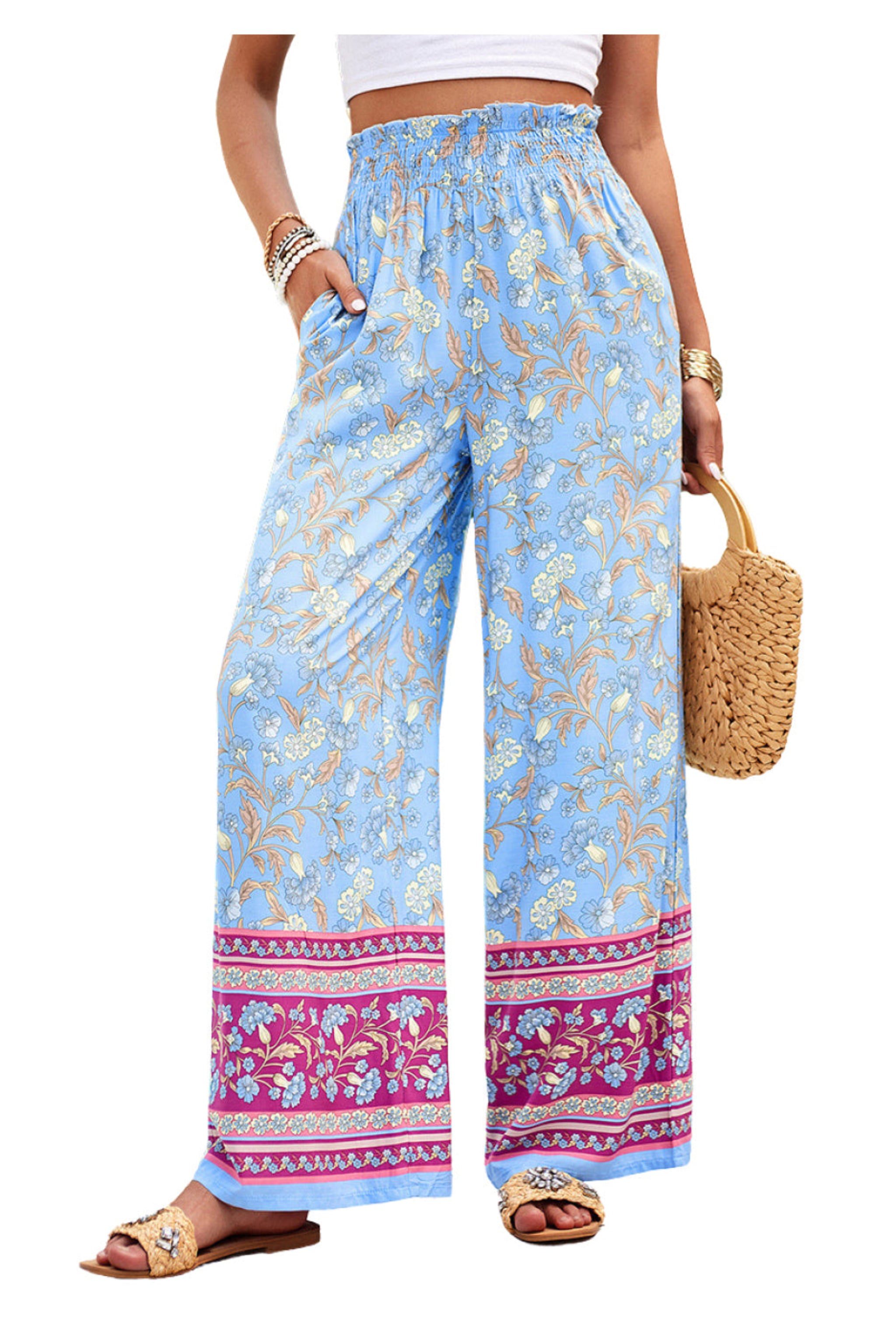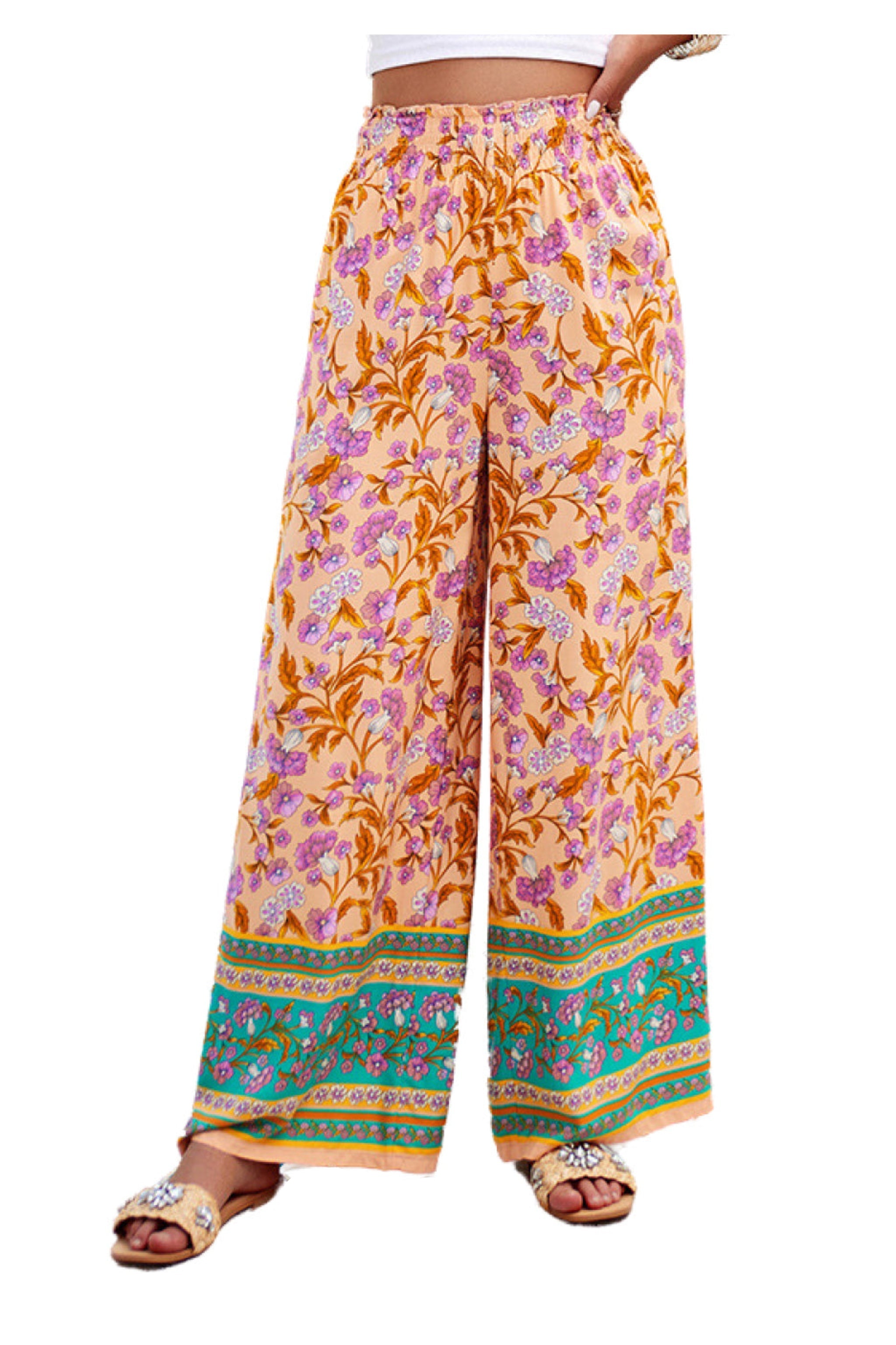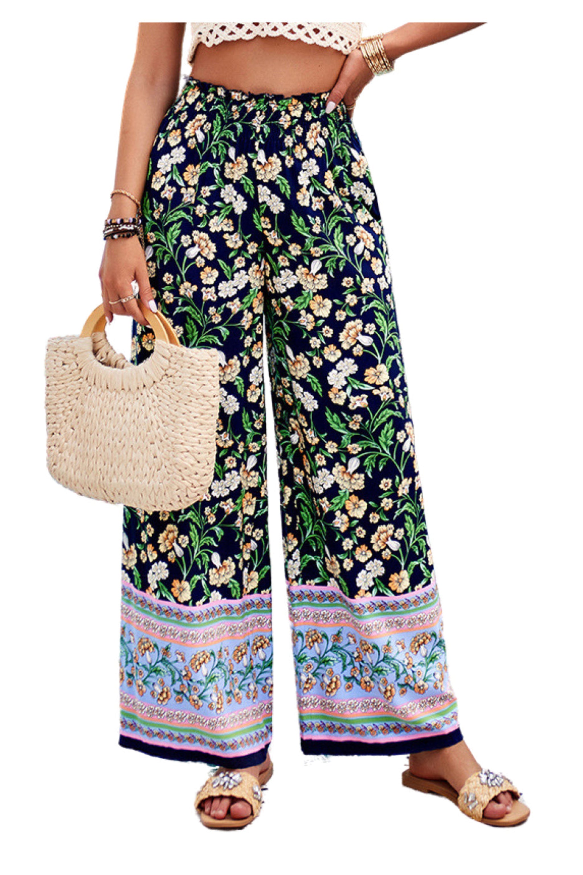 Pantalon large palazzo à taille élastique et imprimé floral avec poches latérales