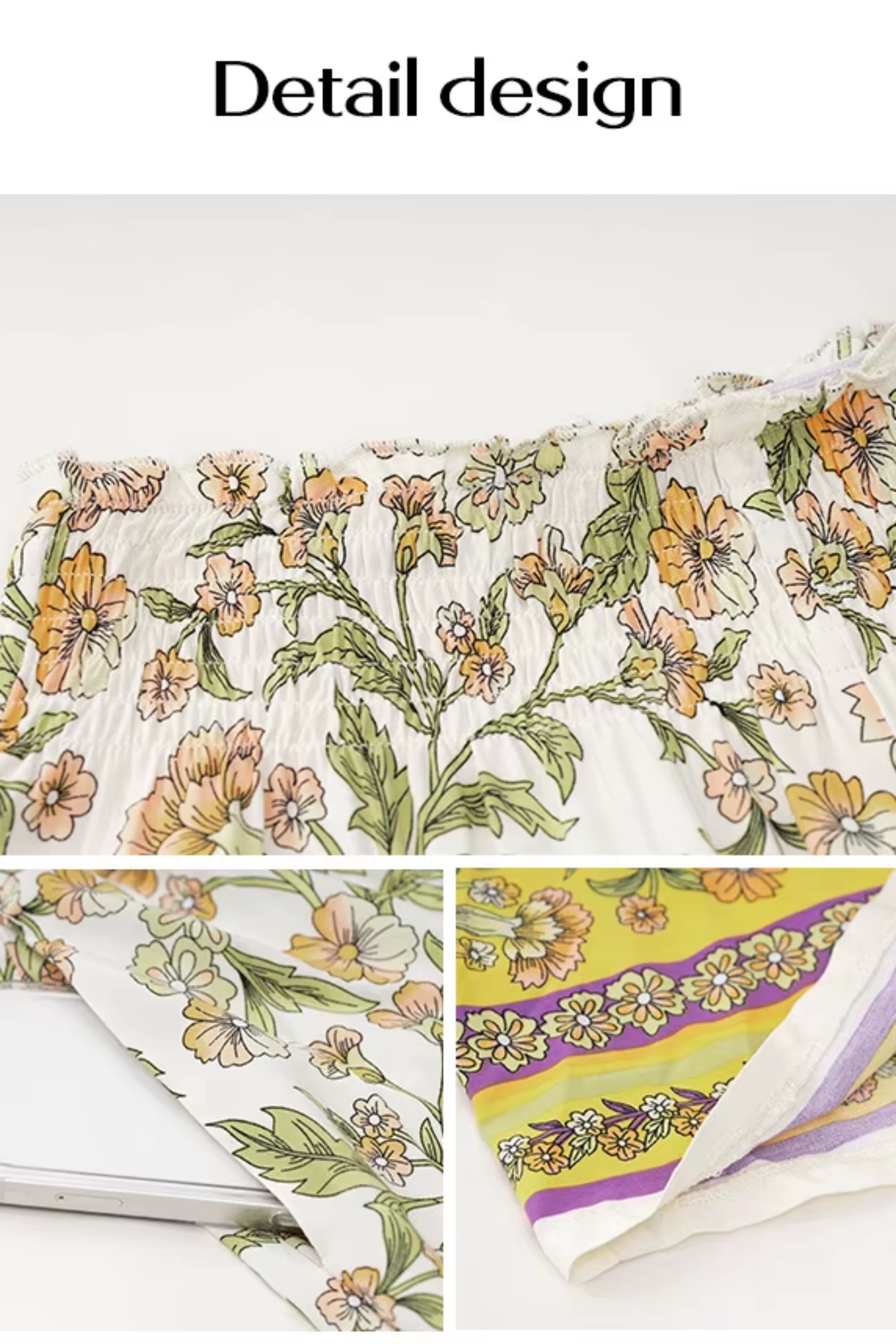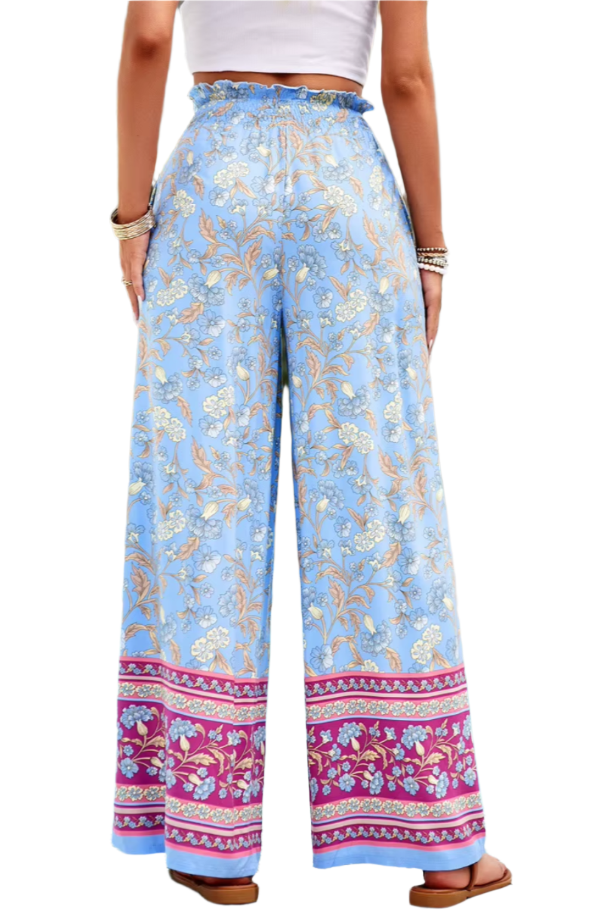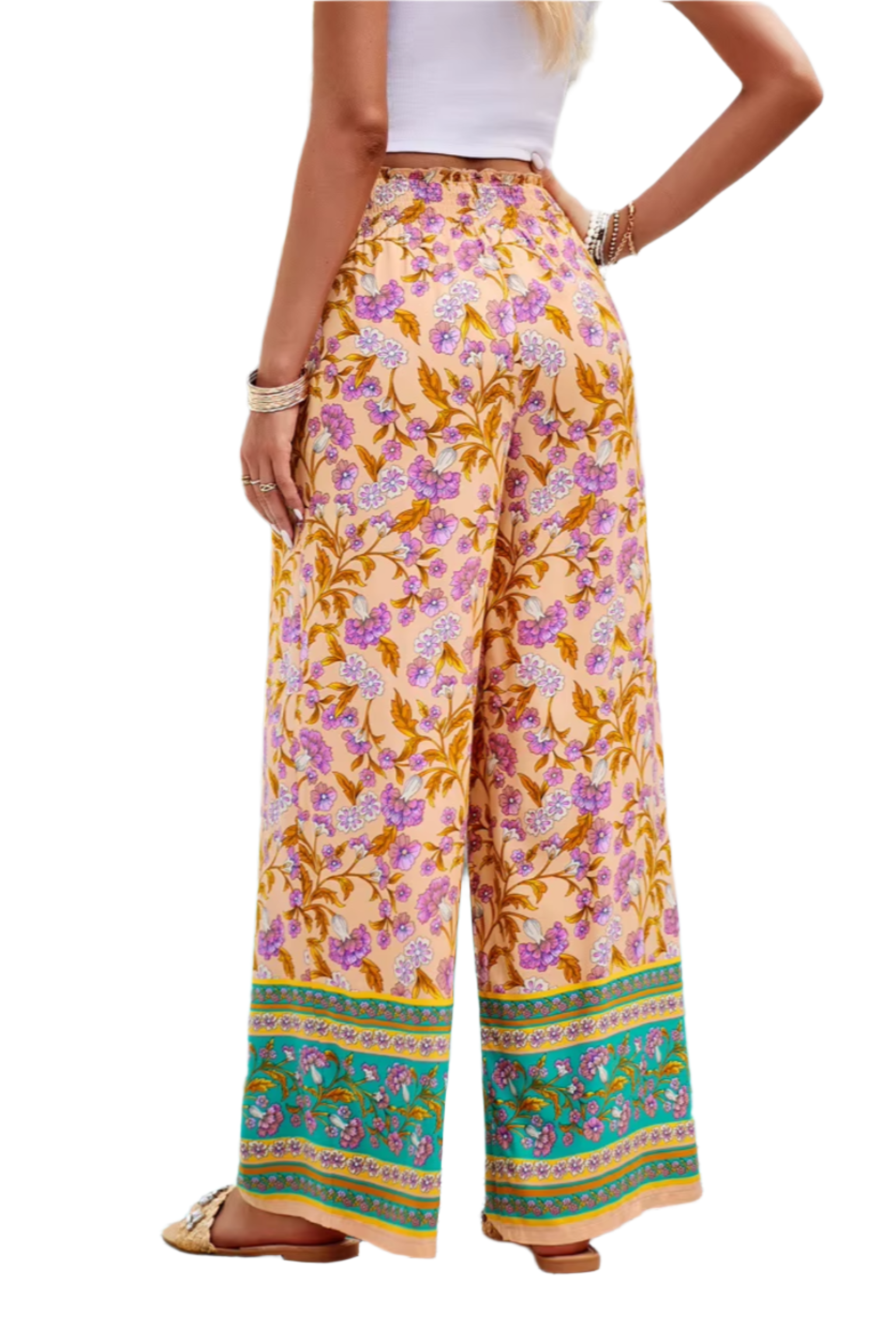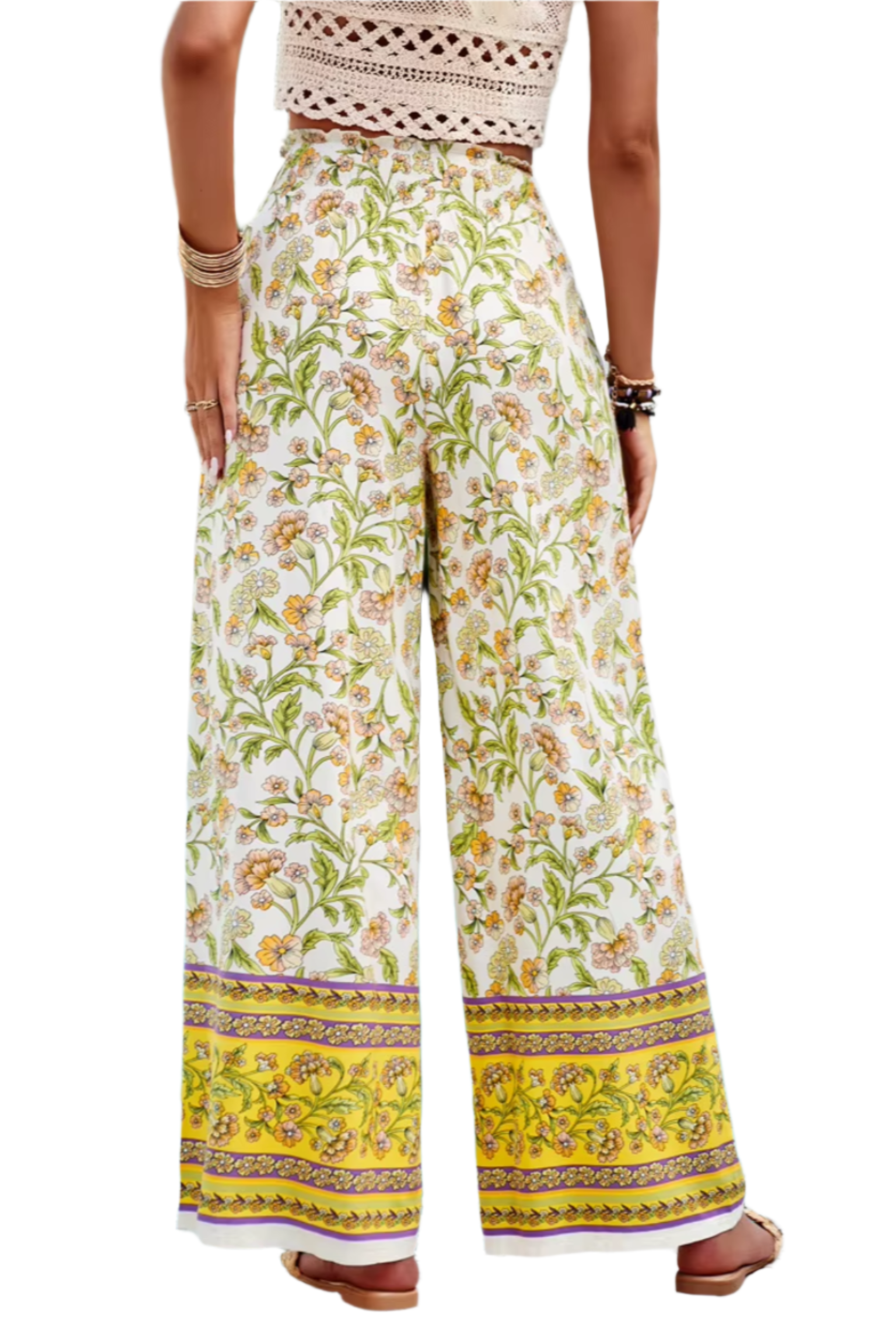 Pantalon large palazzo à taille élastique et imprimé floral avec poches latérales